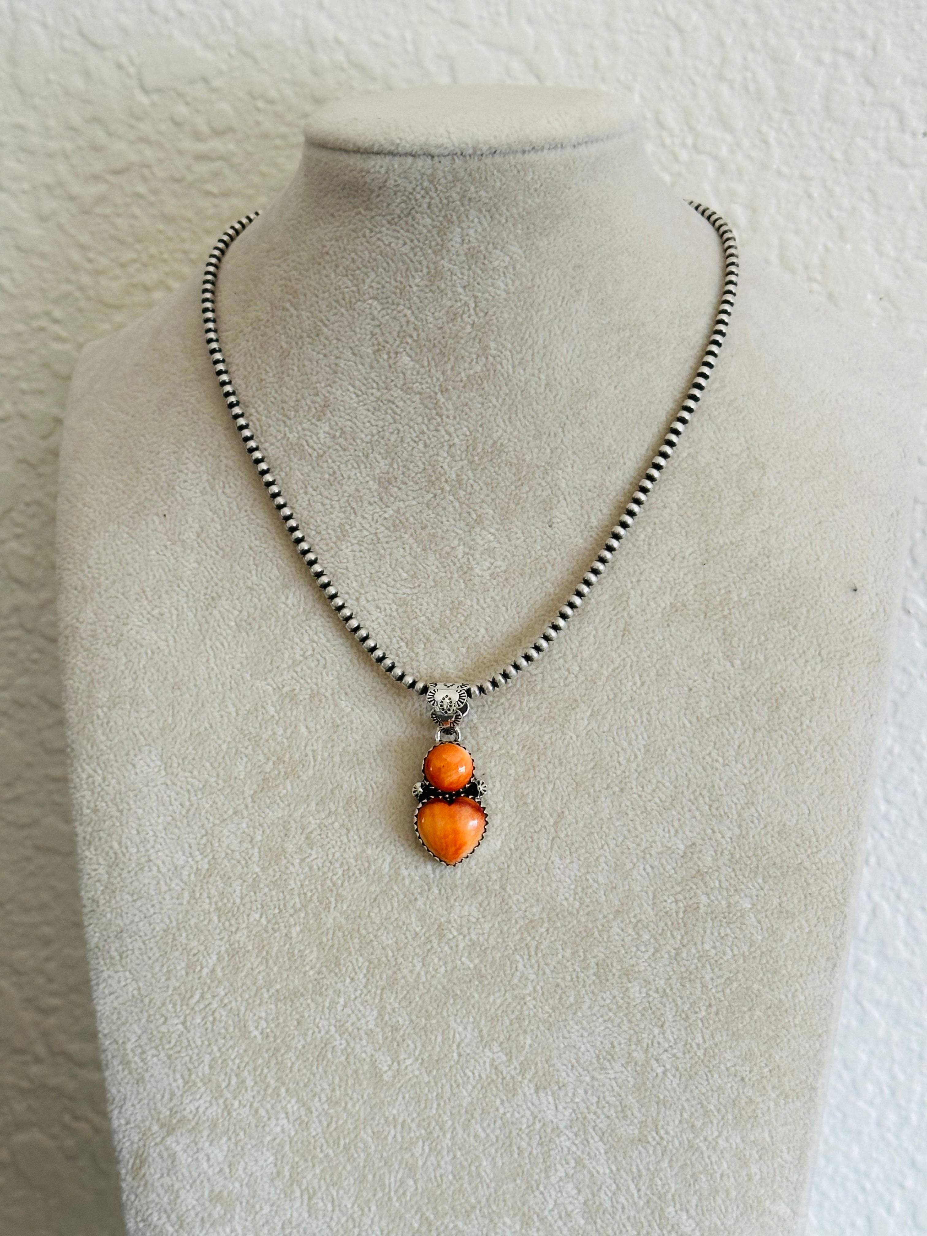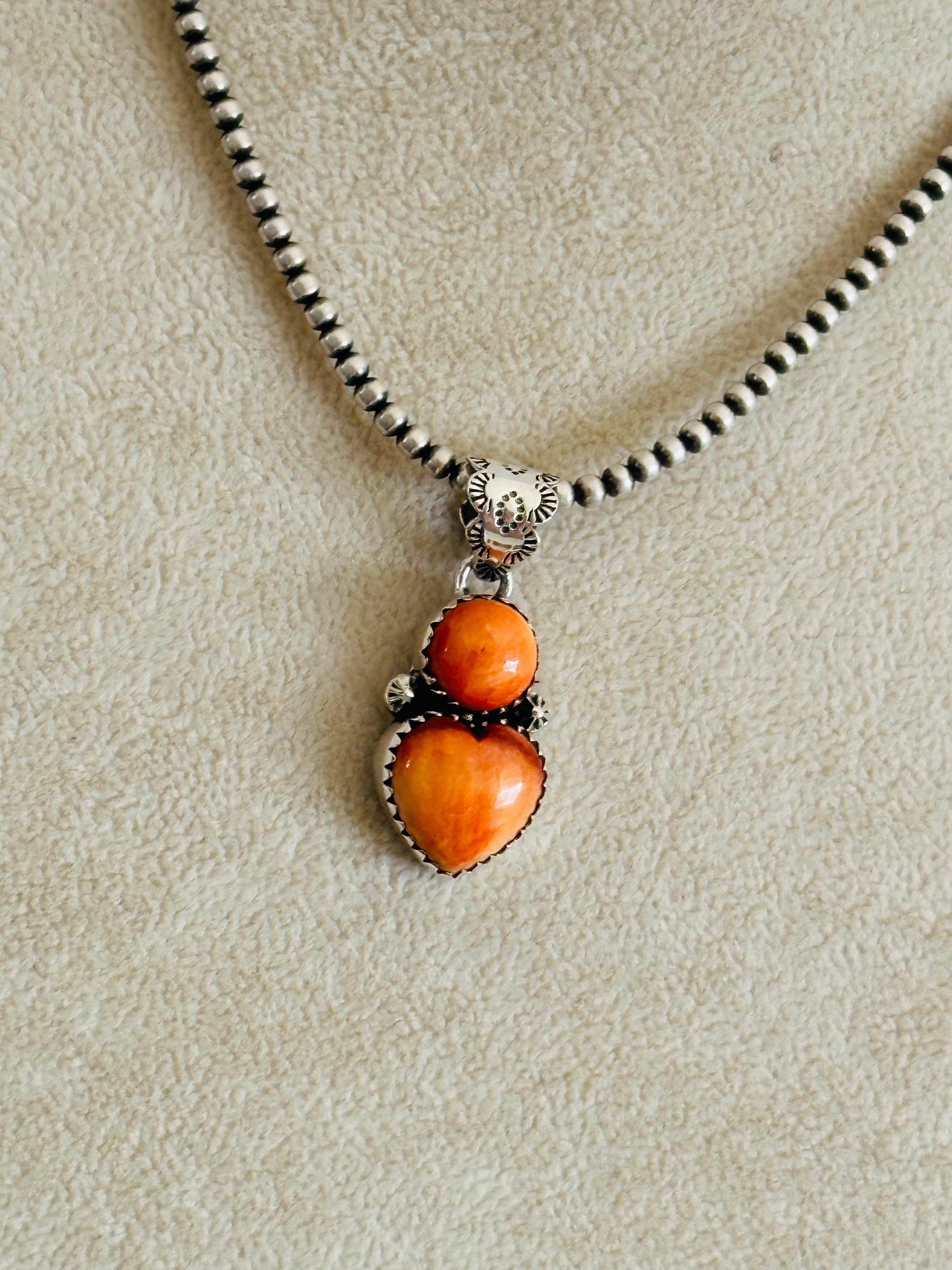 Tony Yazzie Spiny Oyster & Sterling Silver Heart Pendant
