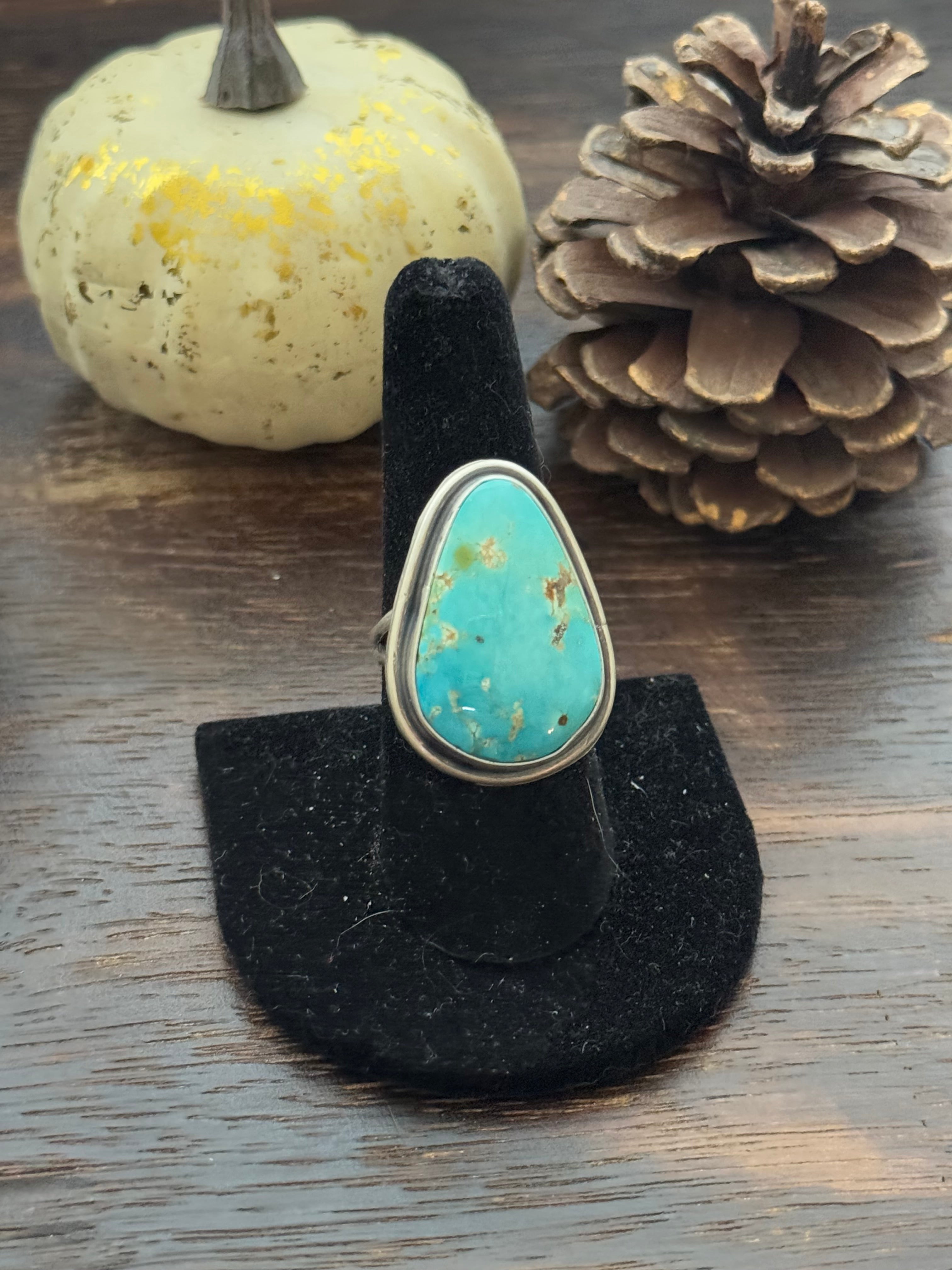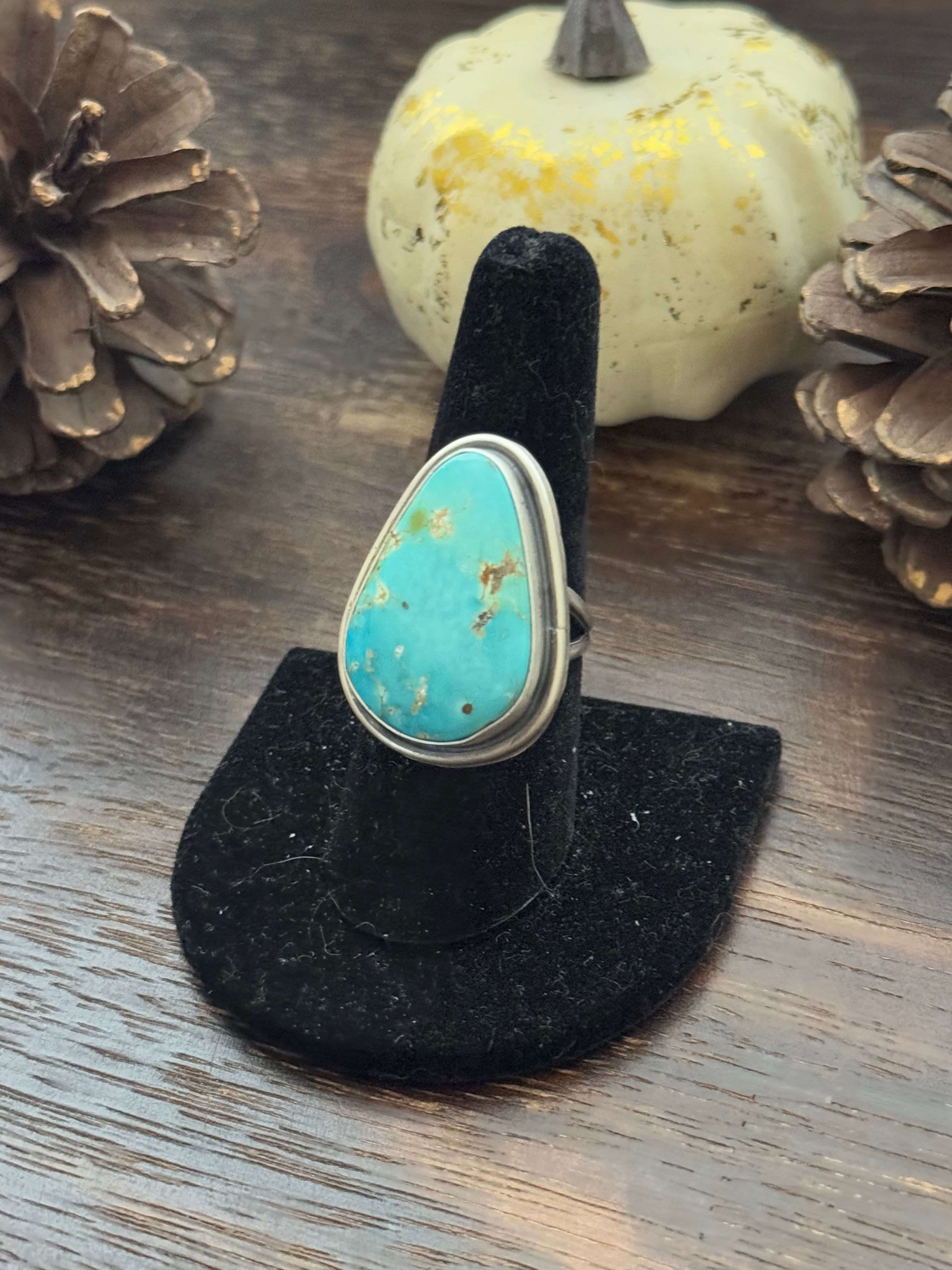Antonnette Yazzie Sonoran Mountain Turquoise & Sterling Silver Ring Size 8.25