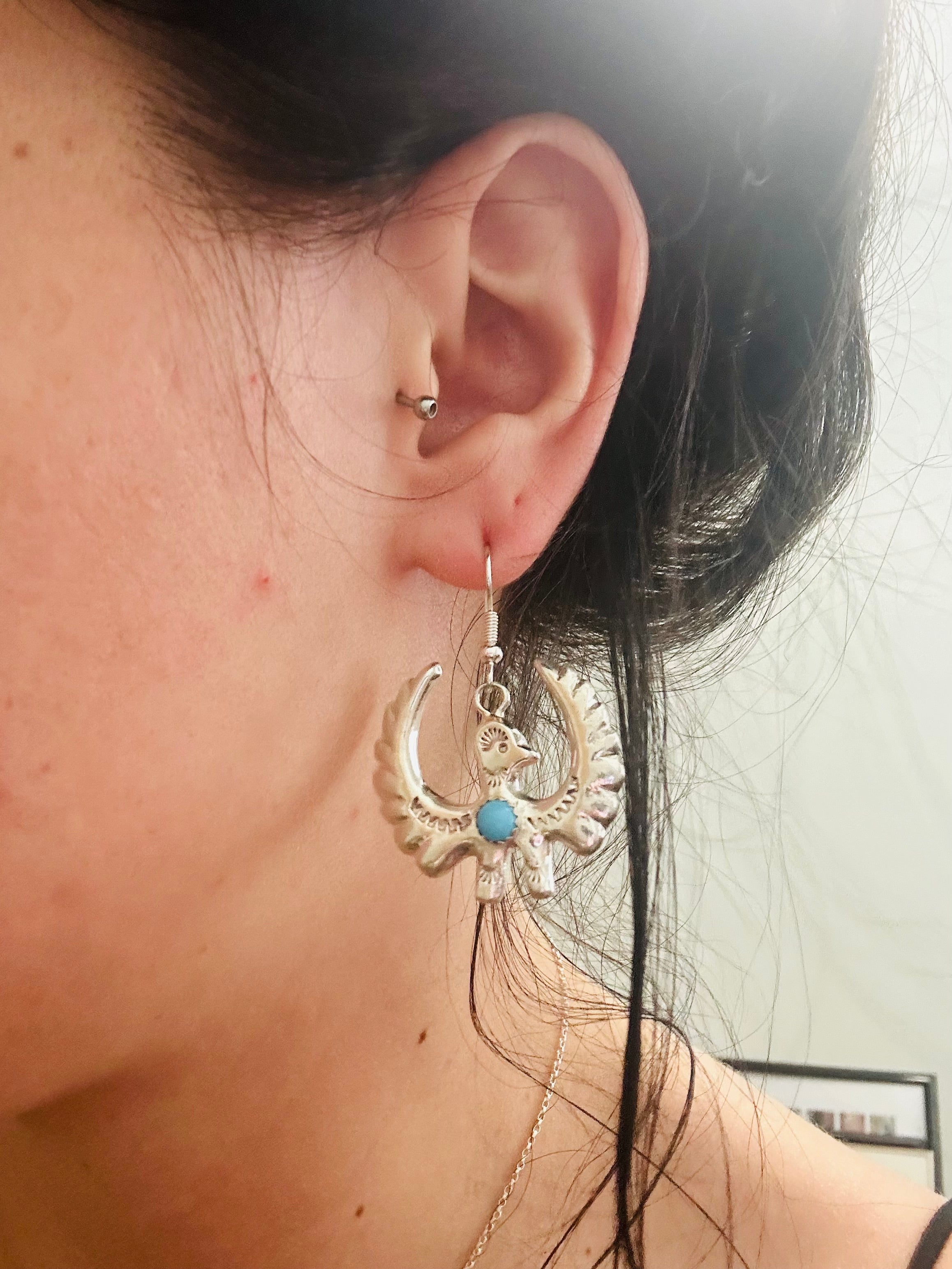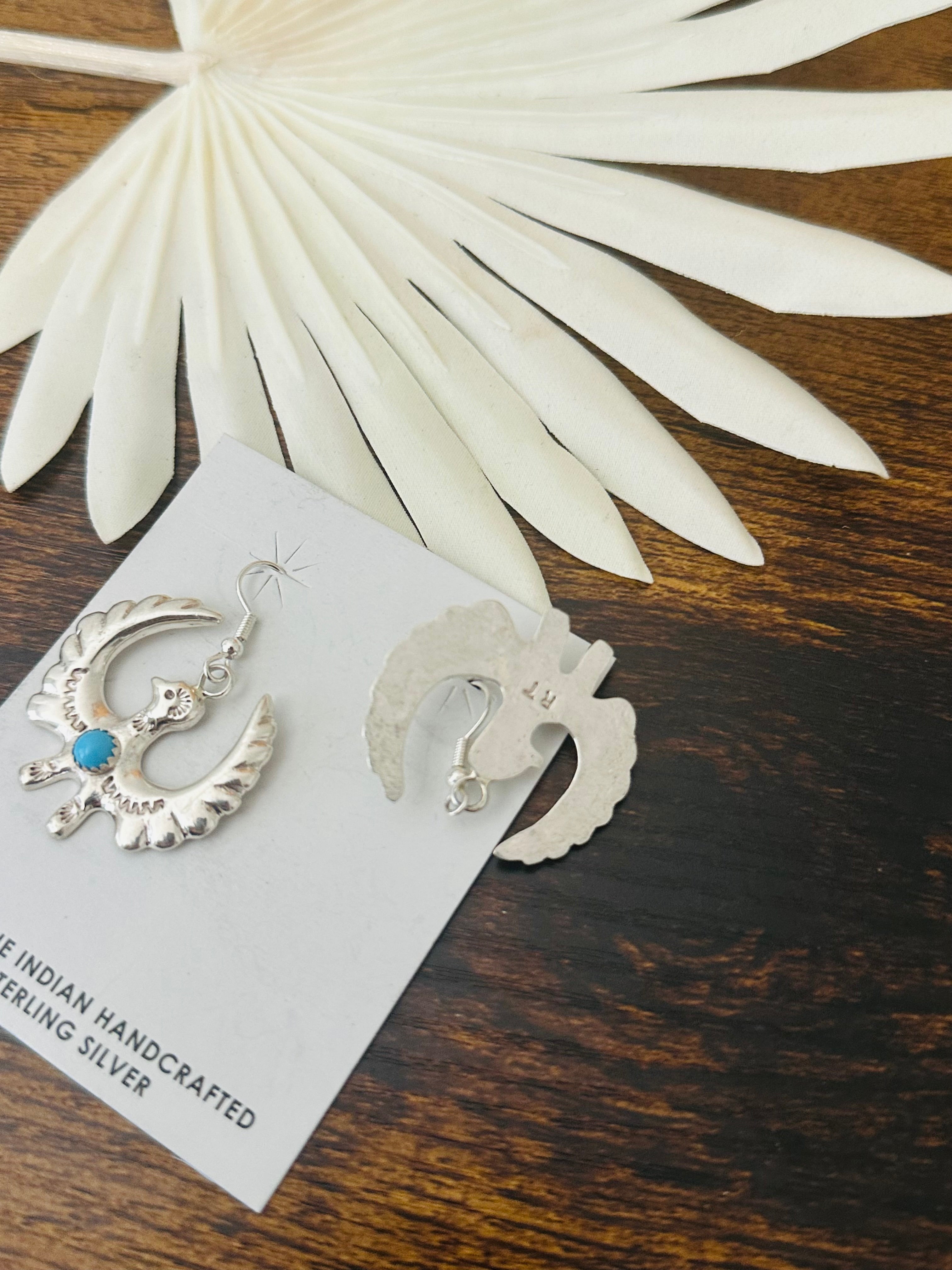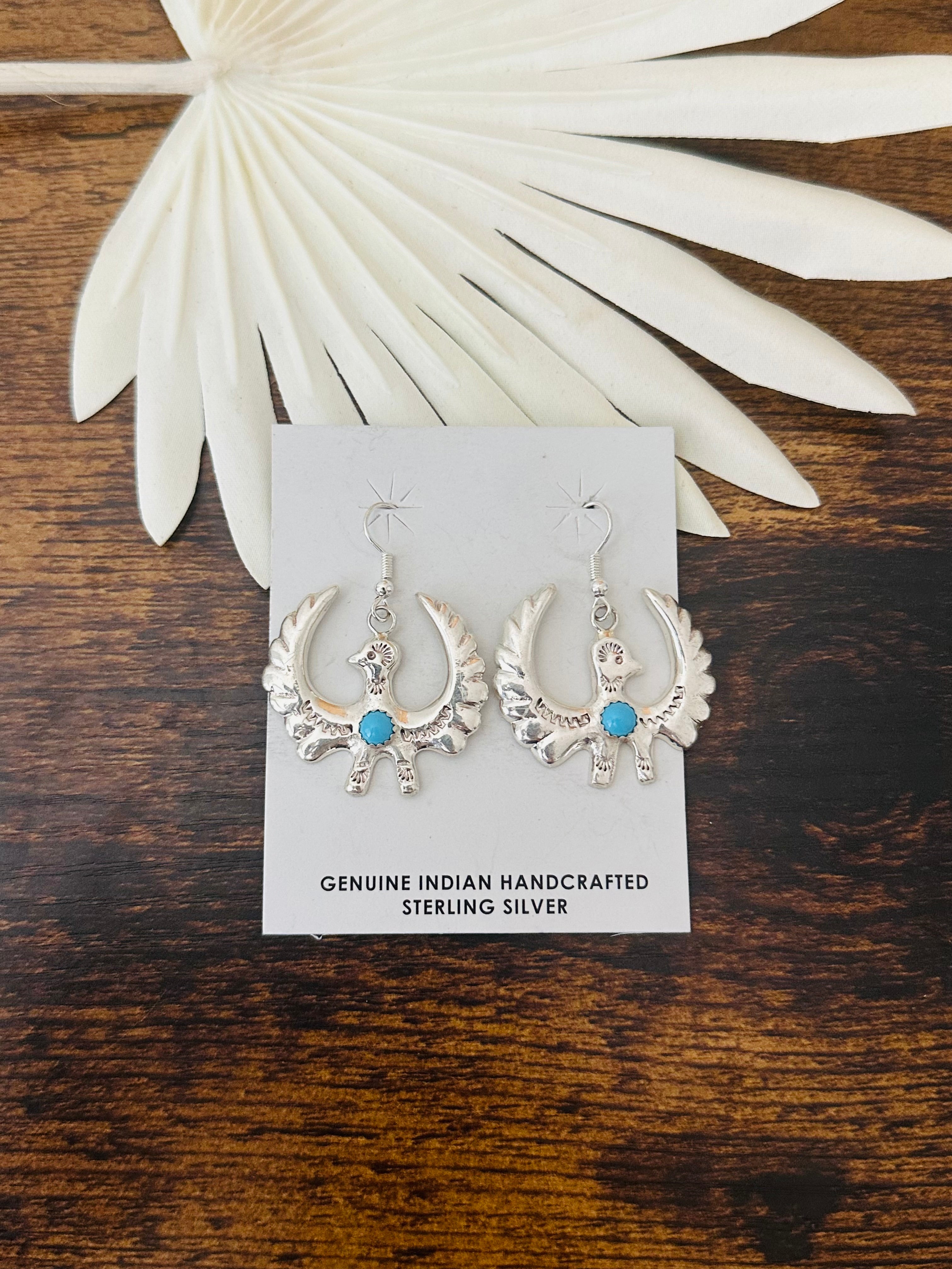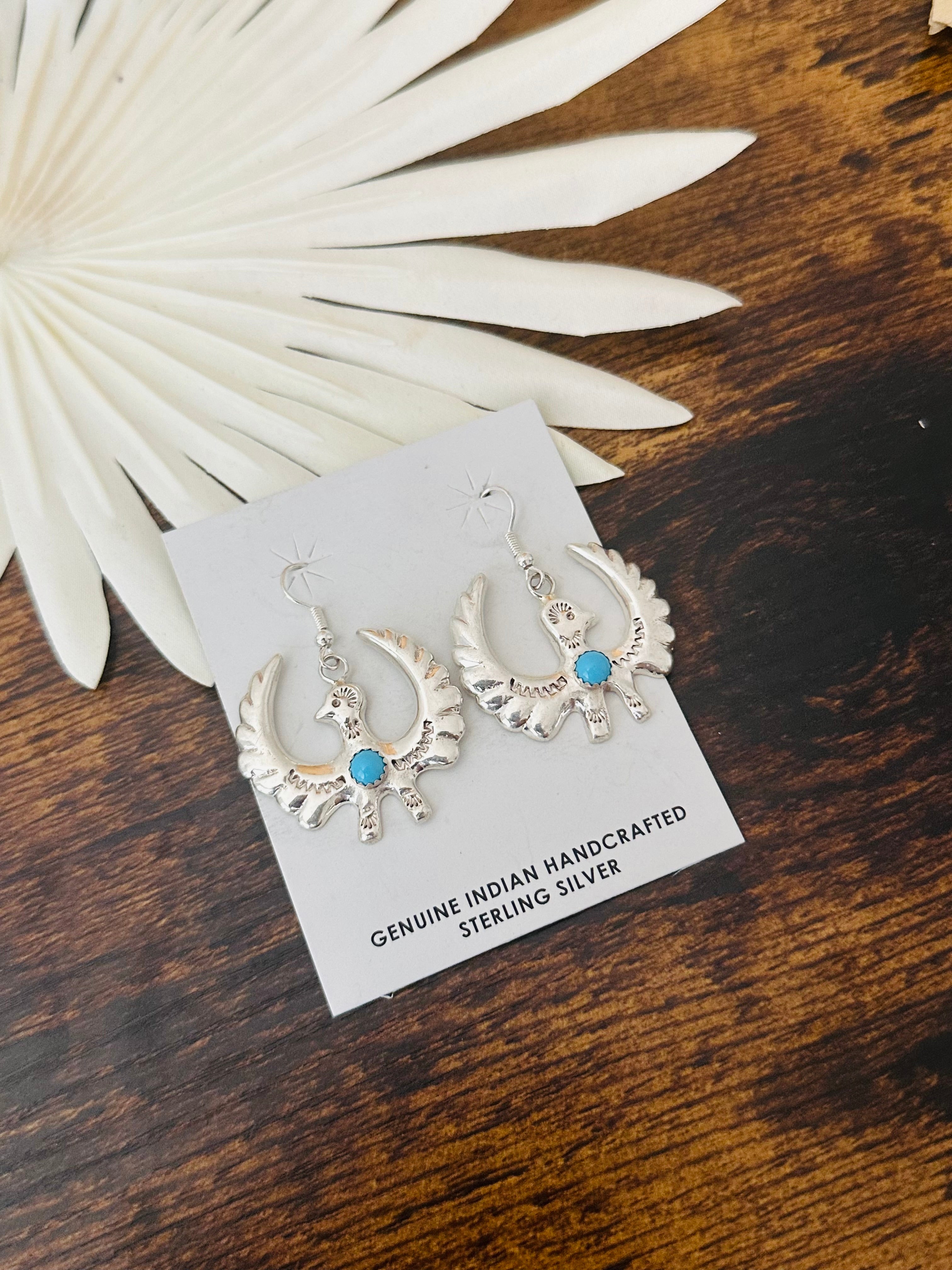 Tonya Yazzie Kingman Turquoise & Sterling Silver Bird Dangle Earrings