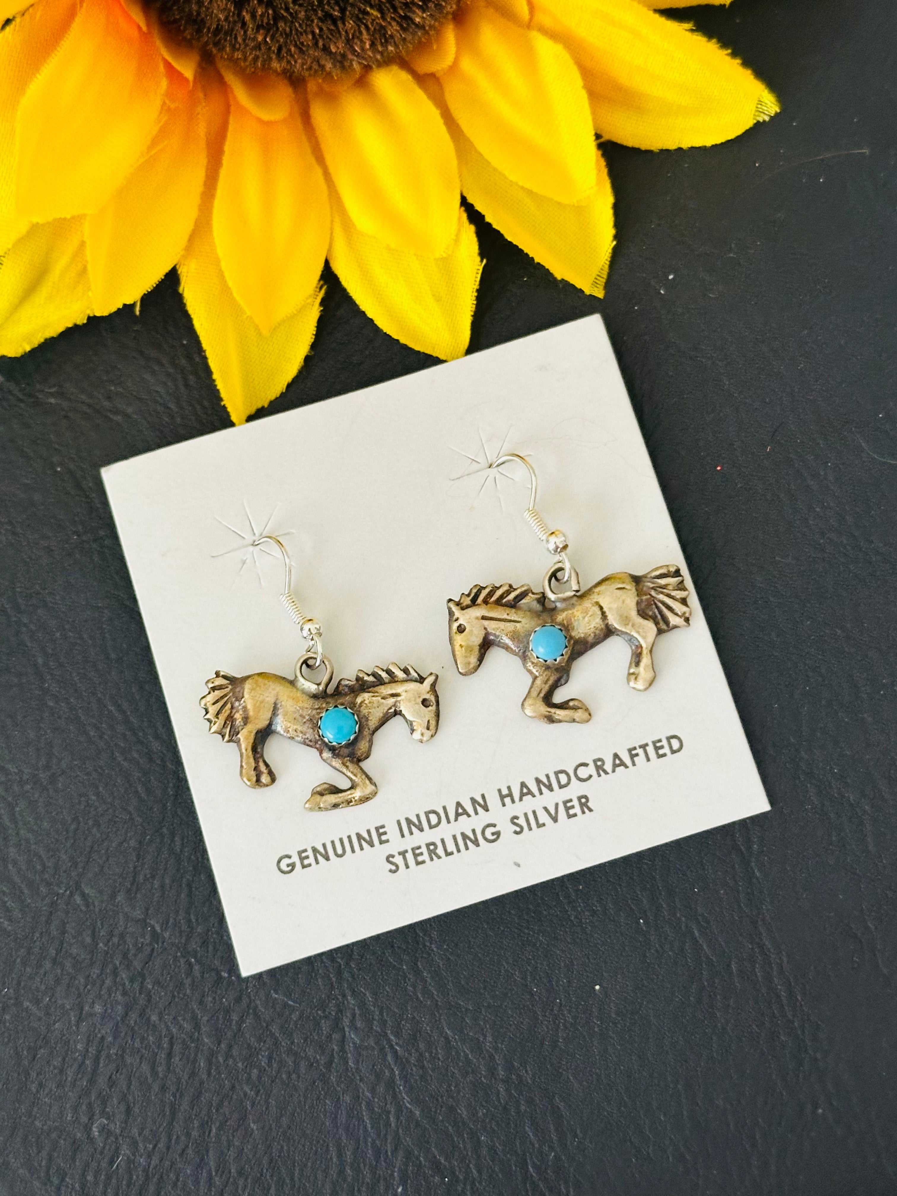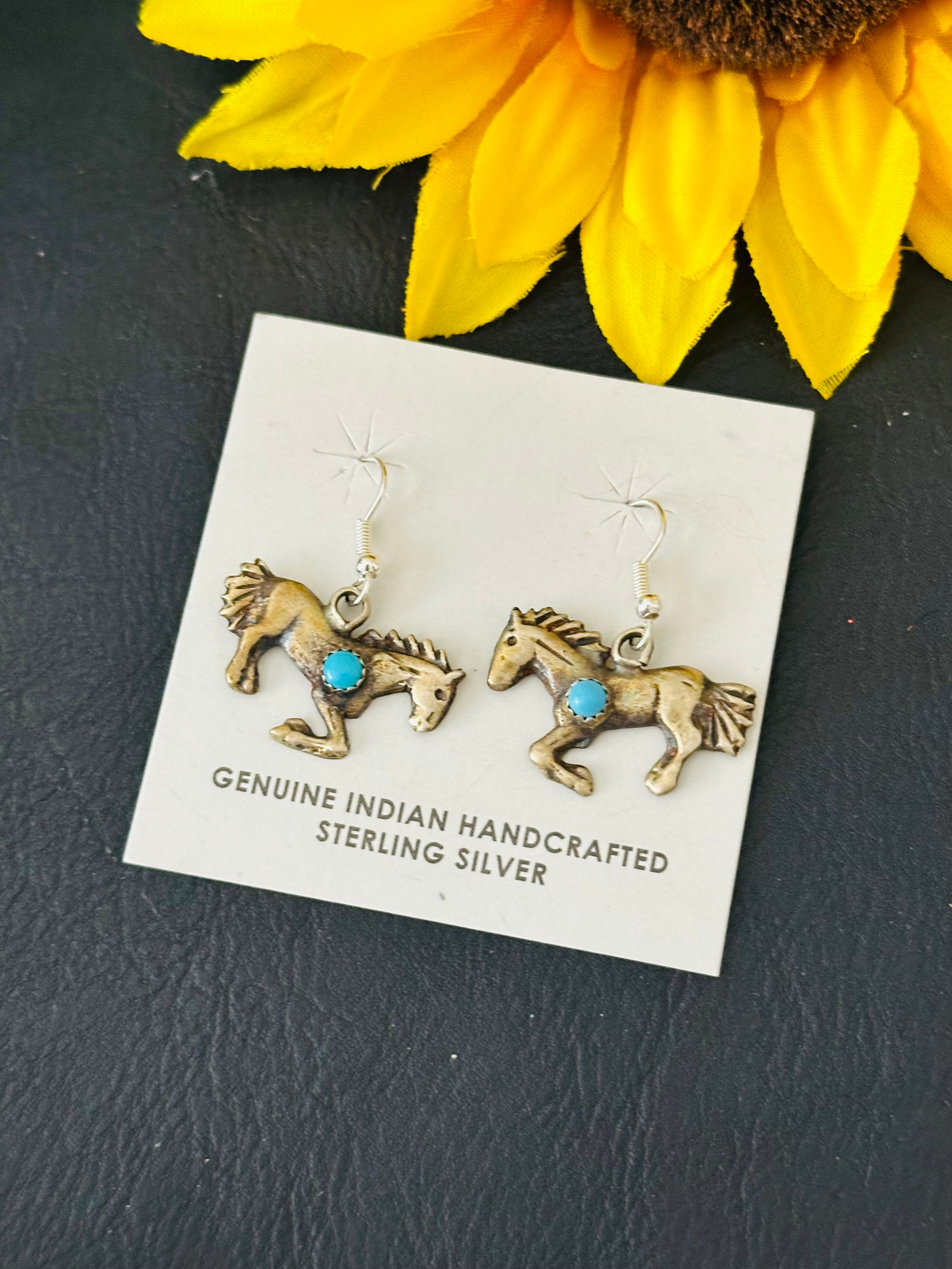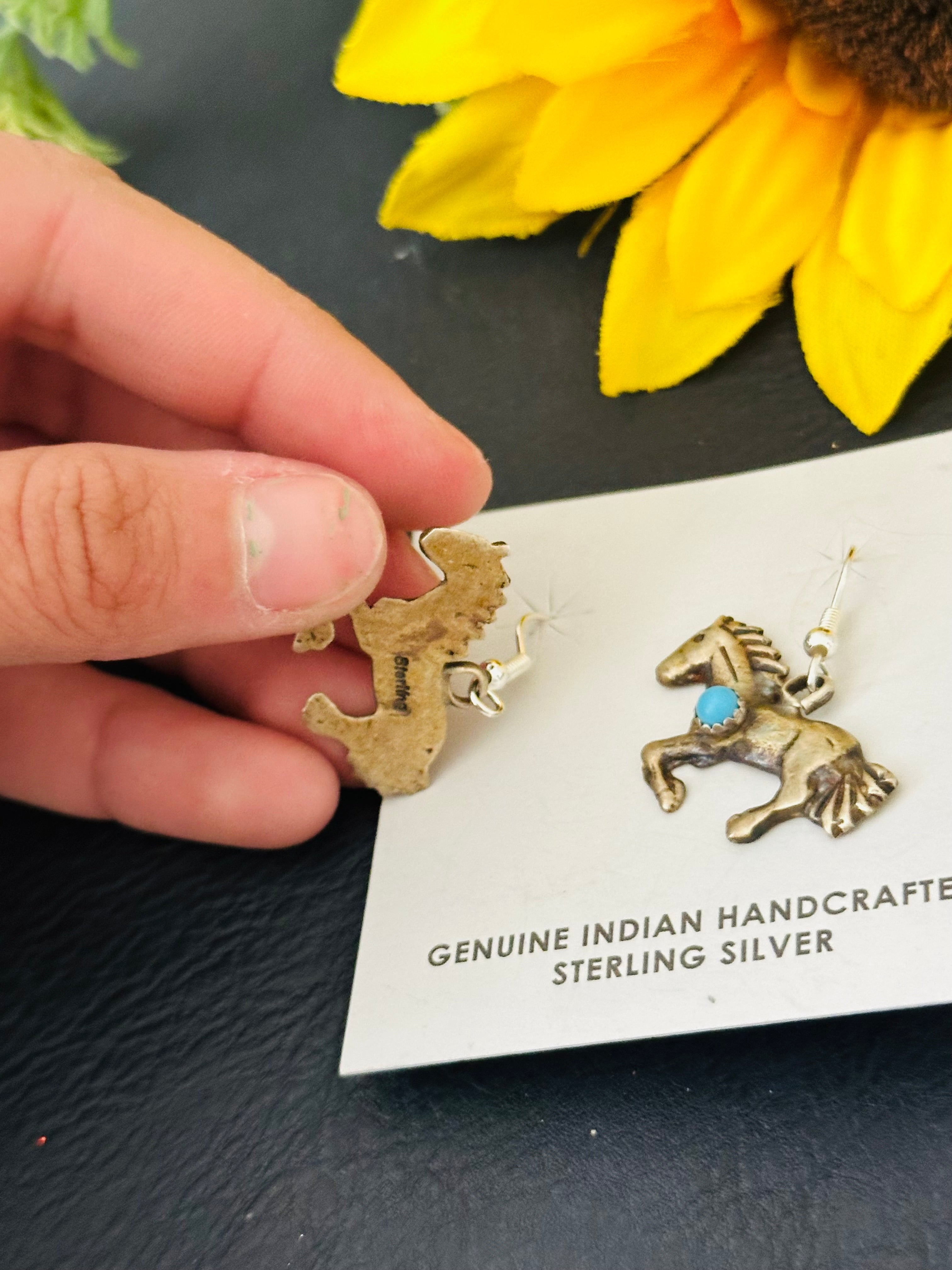 Tonya Yazzie Kingman Turquoise & Sterling Silver Horse Dangle Earrings