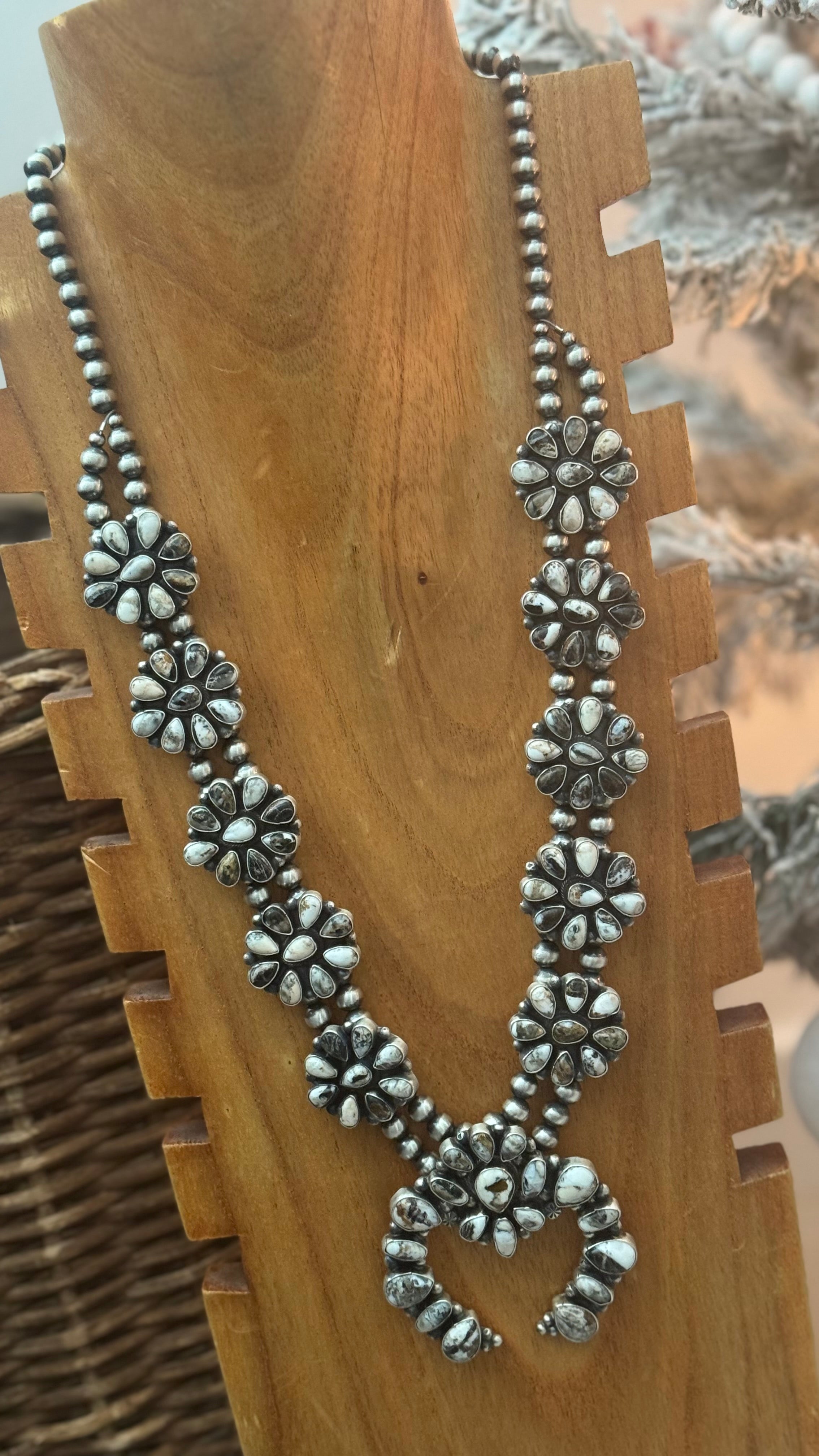 Travis J. White Buffalo & Sterling Silver Cluster Squash Necklace Set