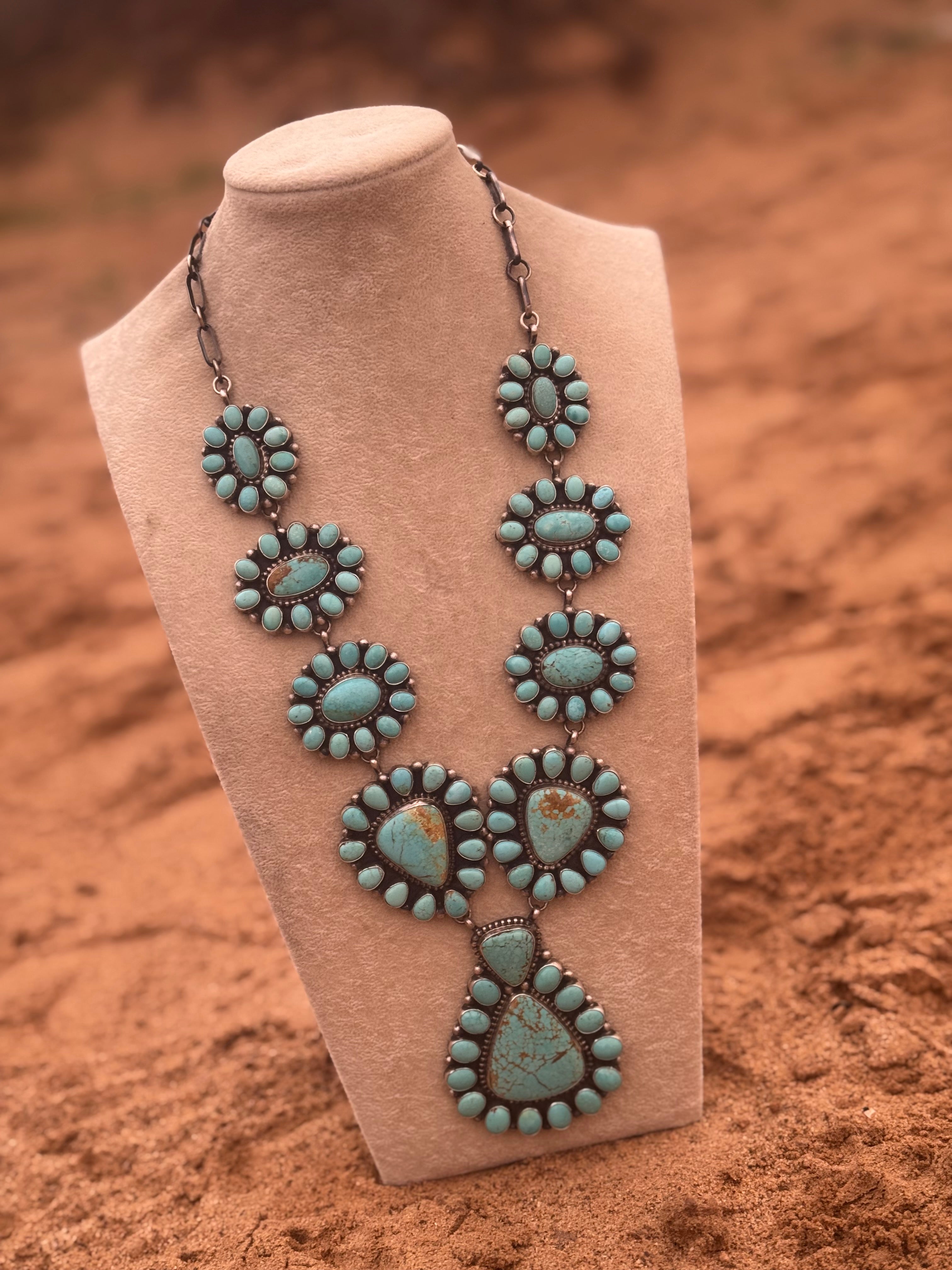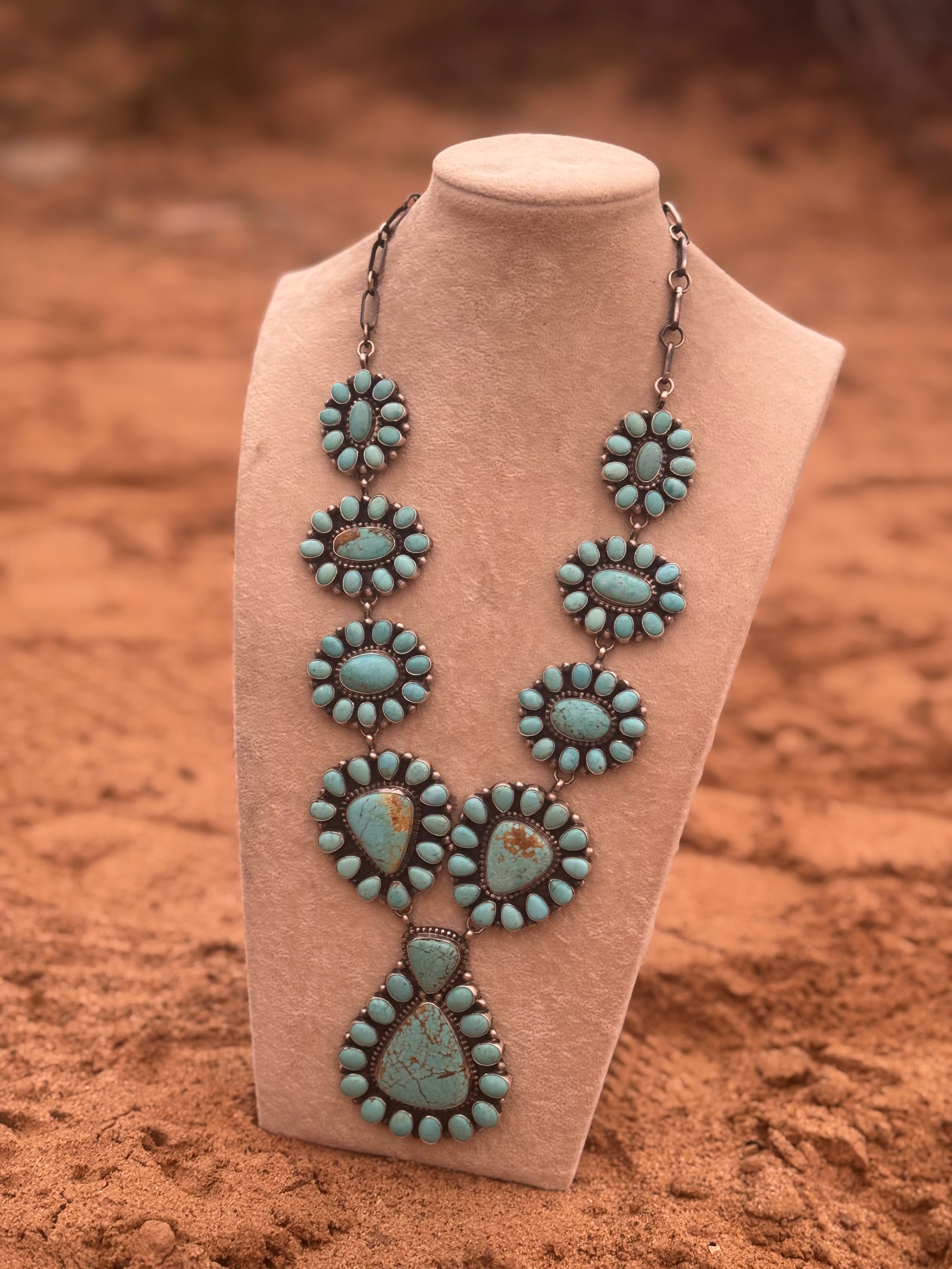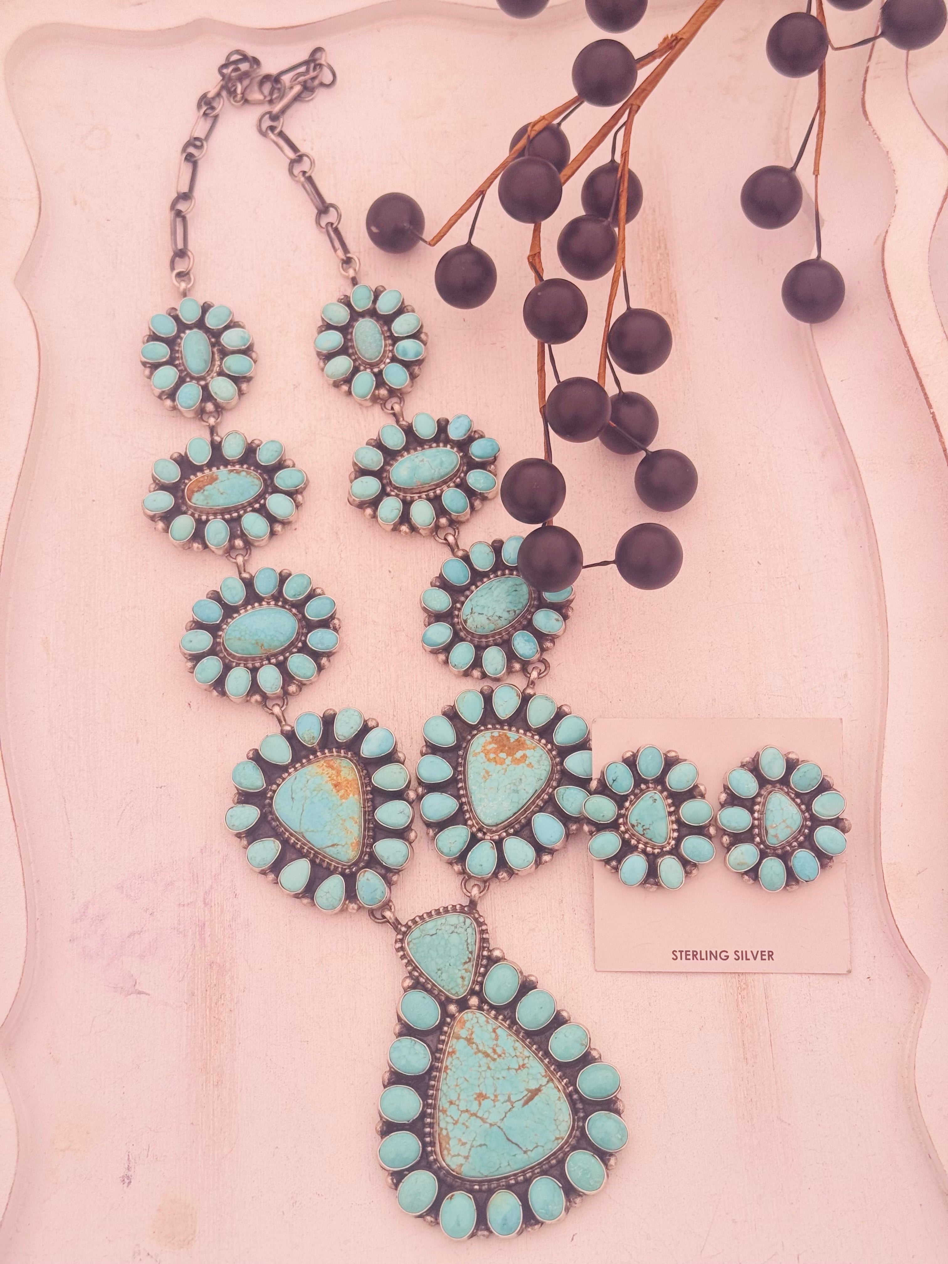 Travis Jim #8 Turquoise & Sterling Silver Cluster Necklace Set