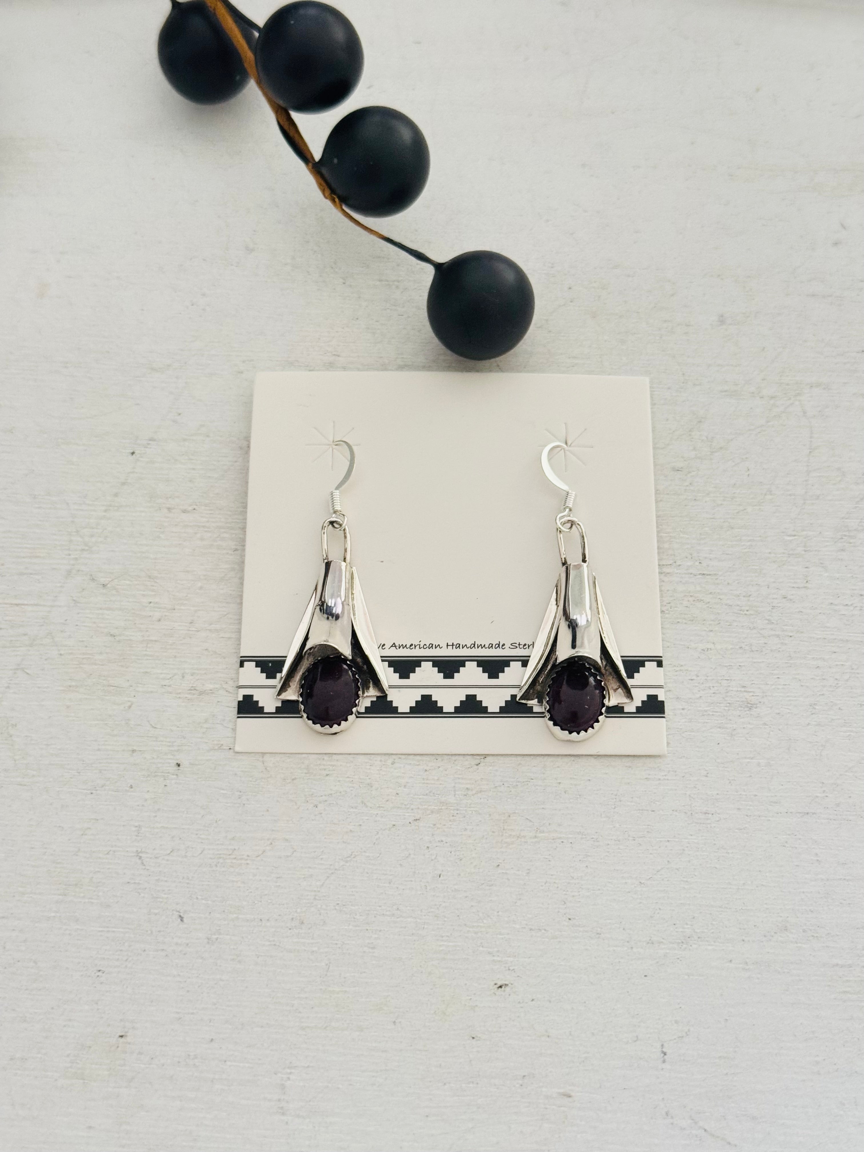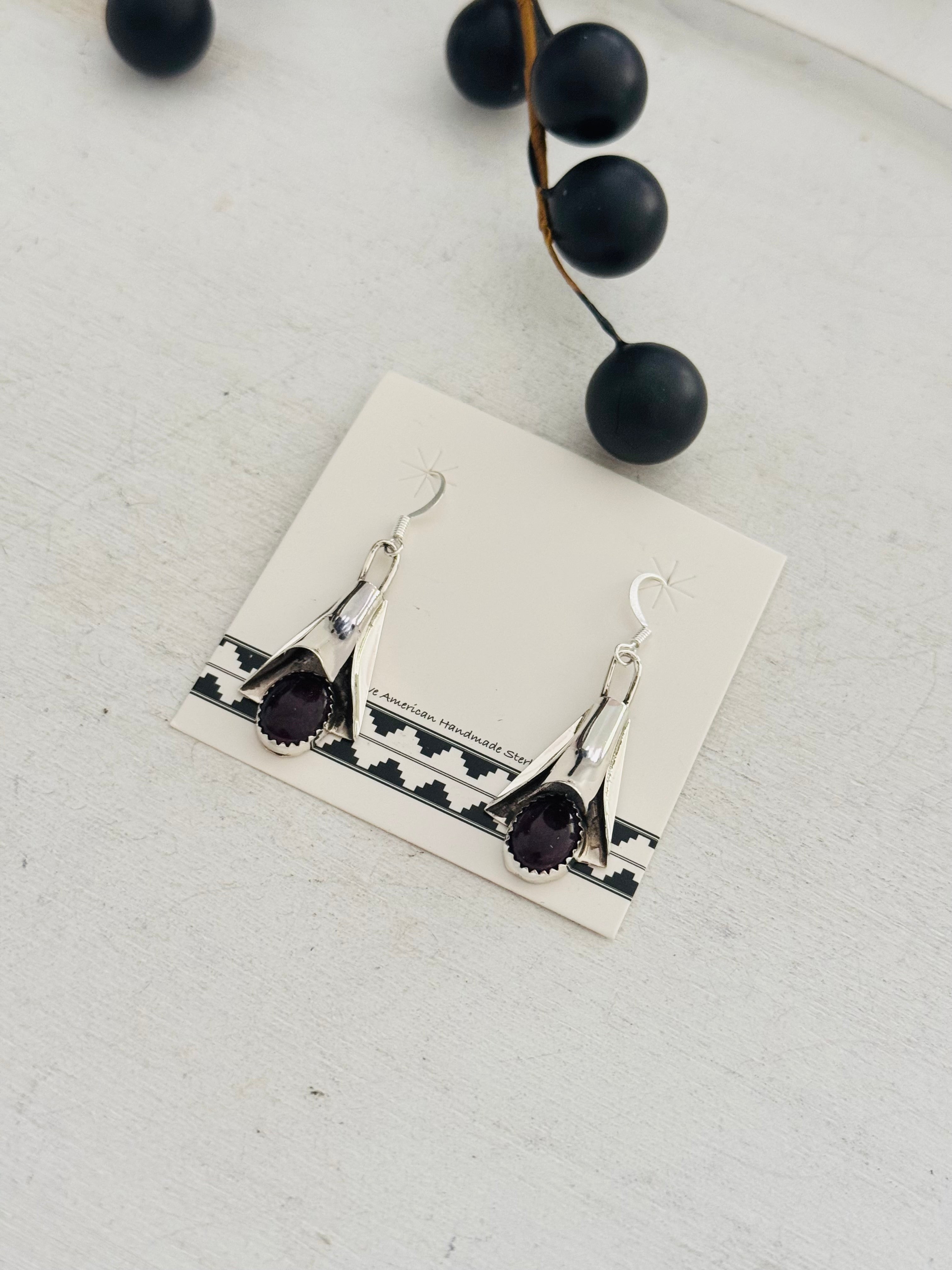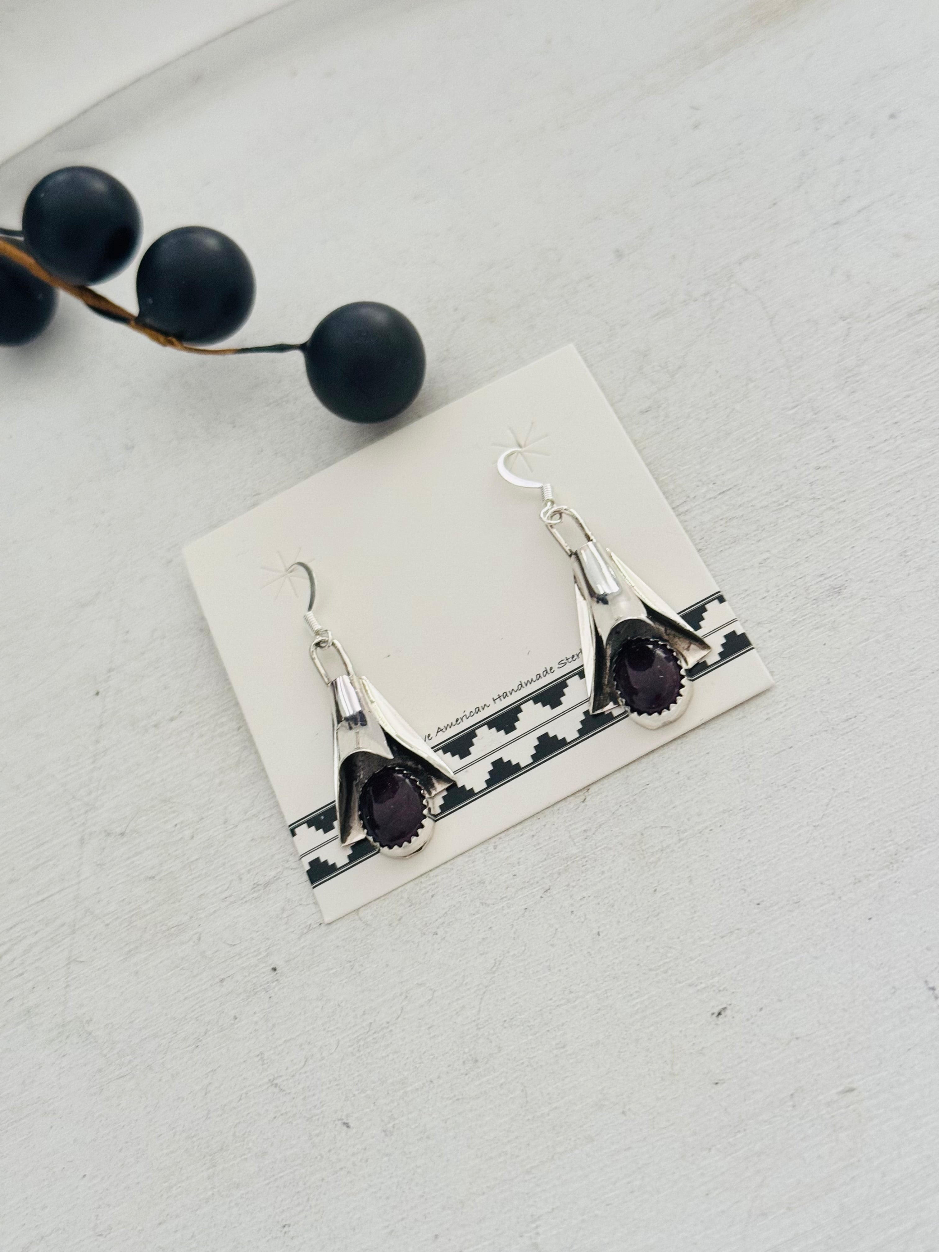 Louise Yazzie Purple Spiny Oyster & Sterling Silver Blossom Dangle Earrings