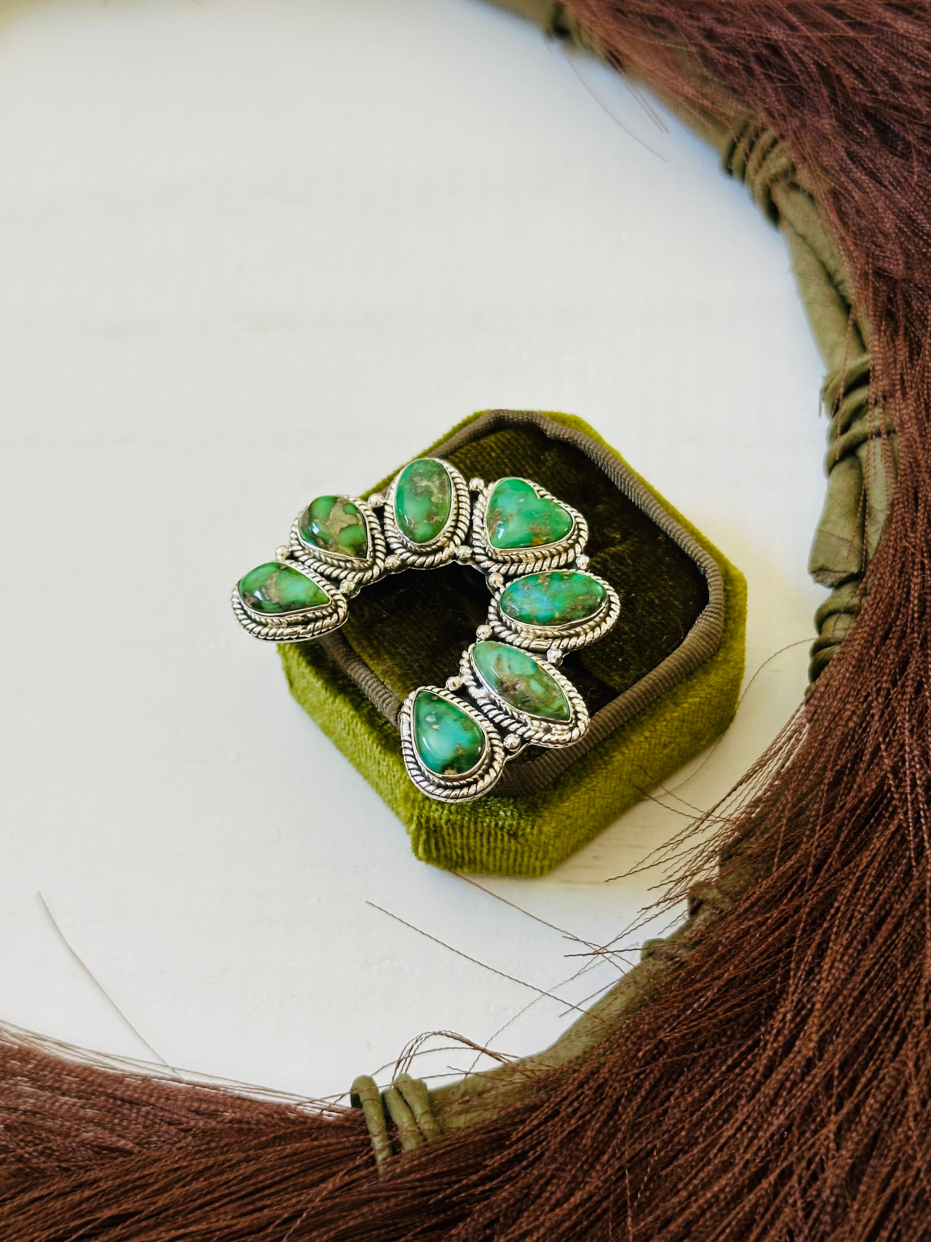 Beautiful naja ring. Southwest Handmade Sonoran Mountain Turquoise & Sterling Silver Adjustable Cluster Naja Ring. It measures 1 3/4 inches long and 1 5/8 inches wide. Signed by the artist and stamped sterling silver.