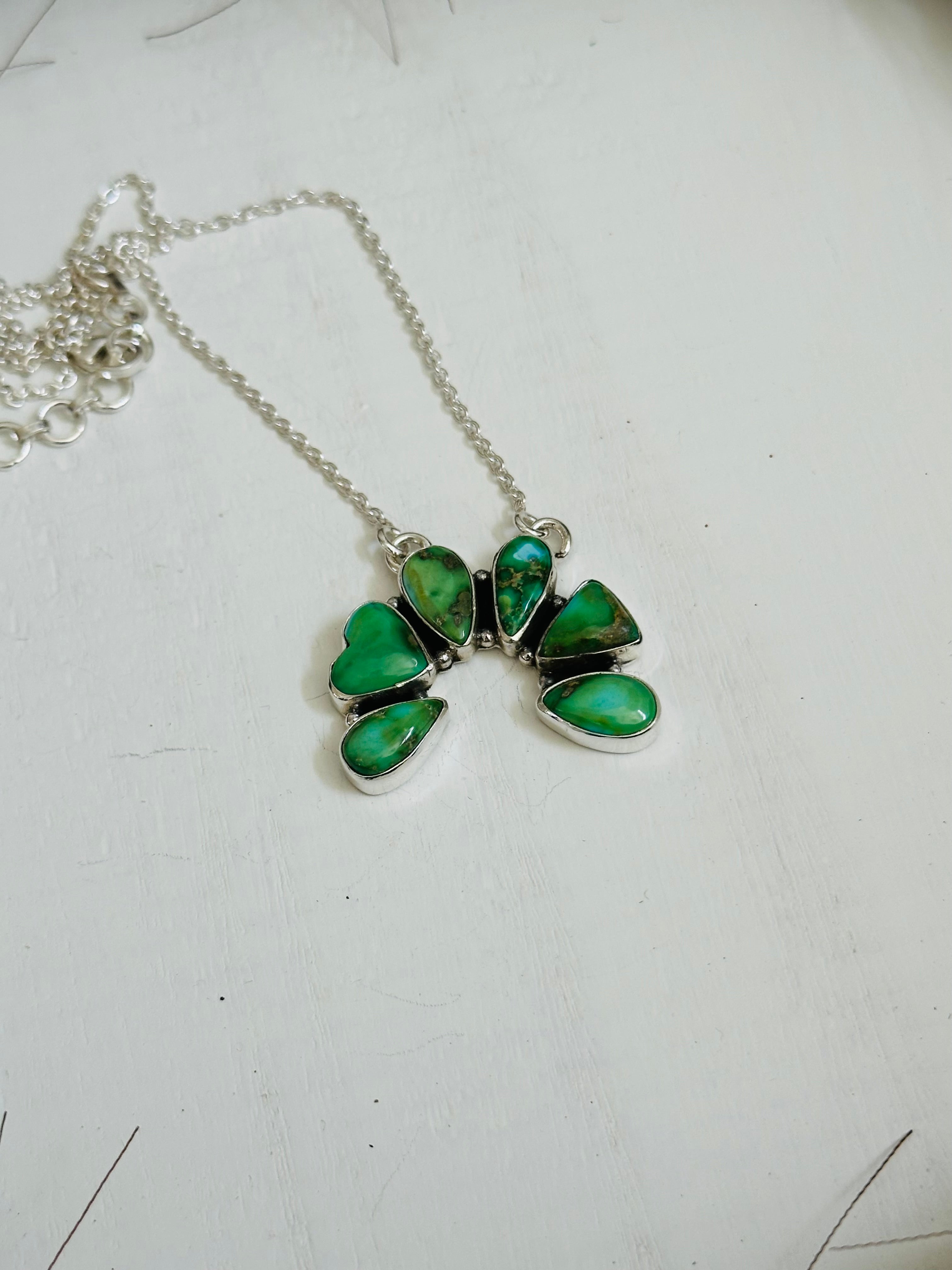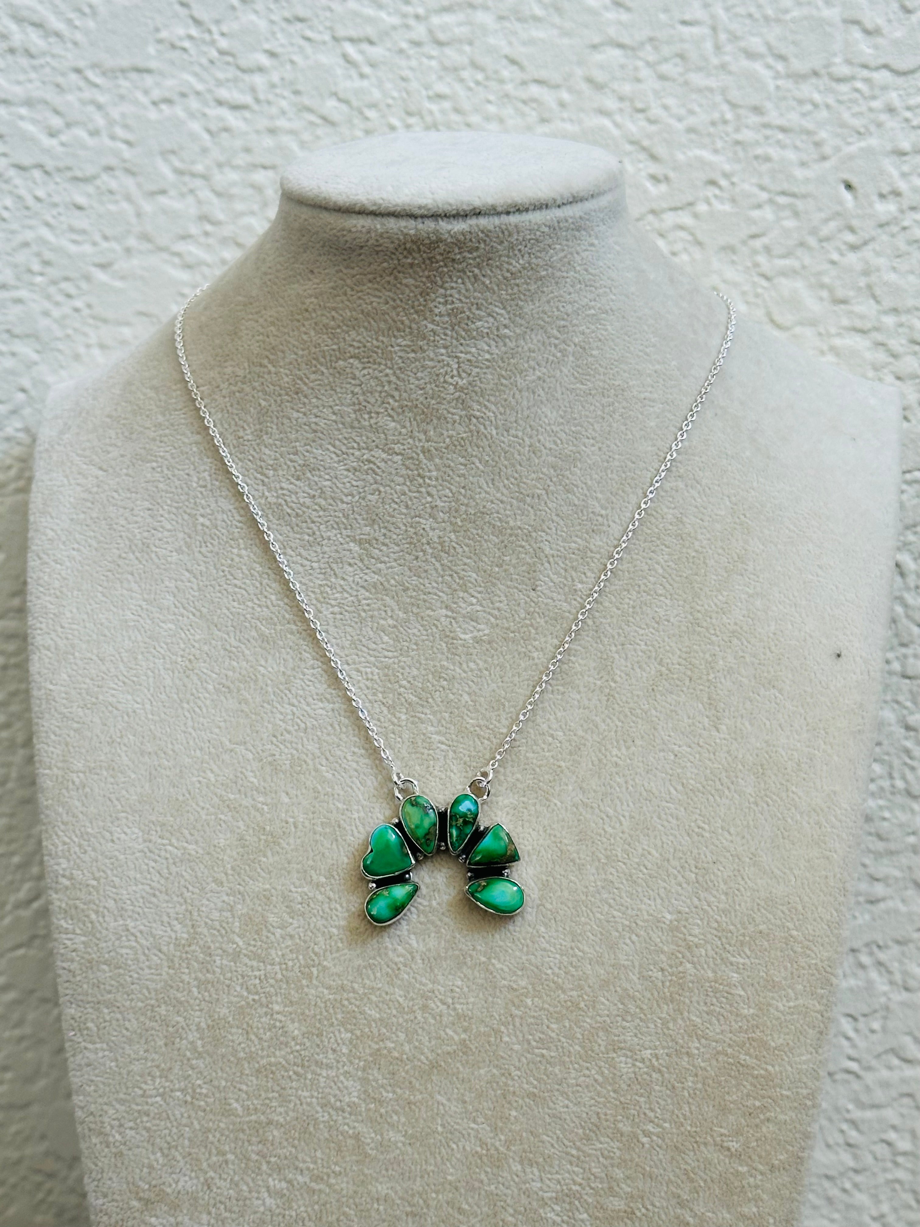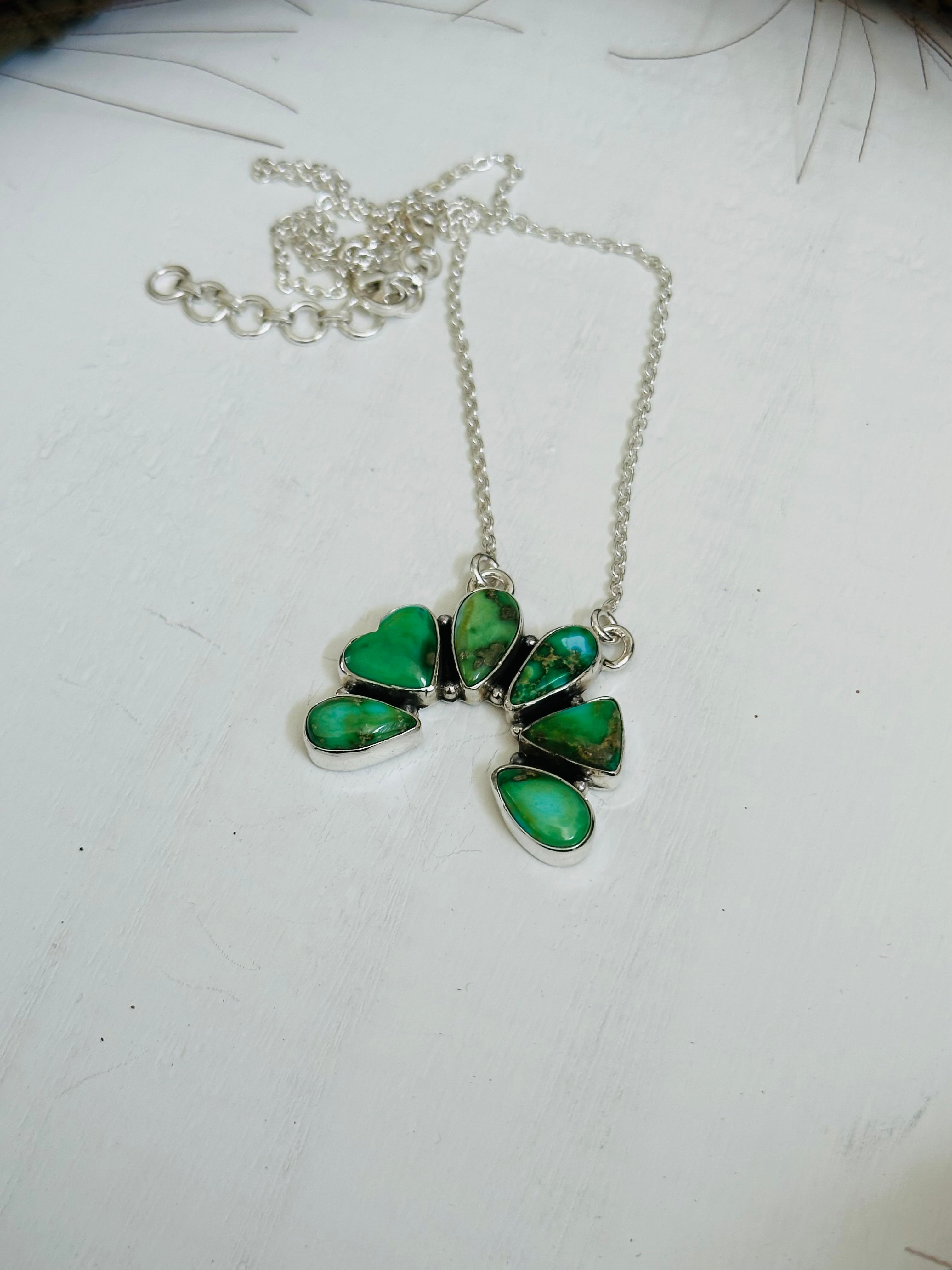 Beautiful necklace. Southwest Handmade Sonoran Mountain Turquoise & Sterling Silver Cluster Naja Necklace. It measures 19 inches long with hang while the chain by itself measures 17 inches long but can be adjusted down to 16 inches long. Signed by the artist and stamped sterling silver.