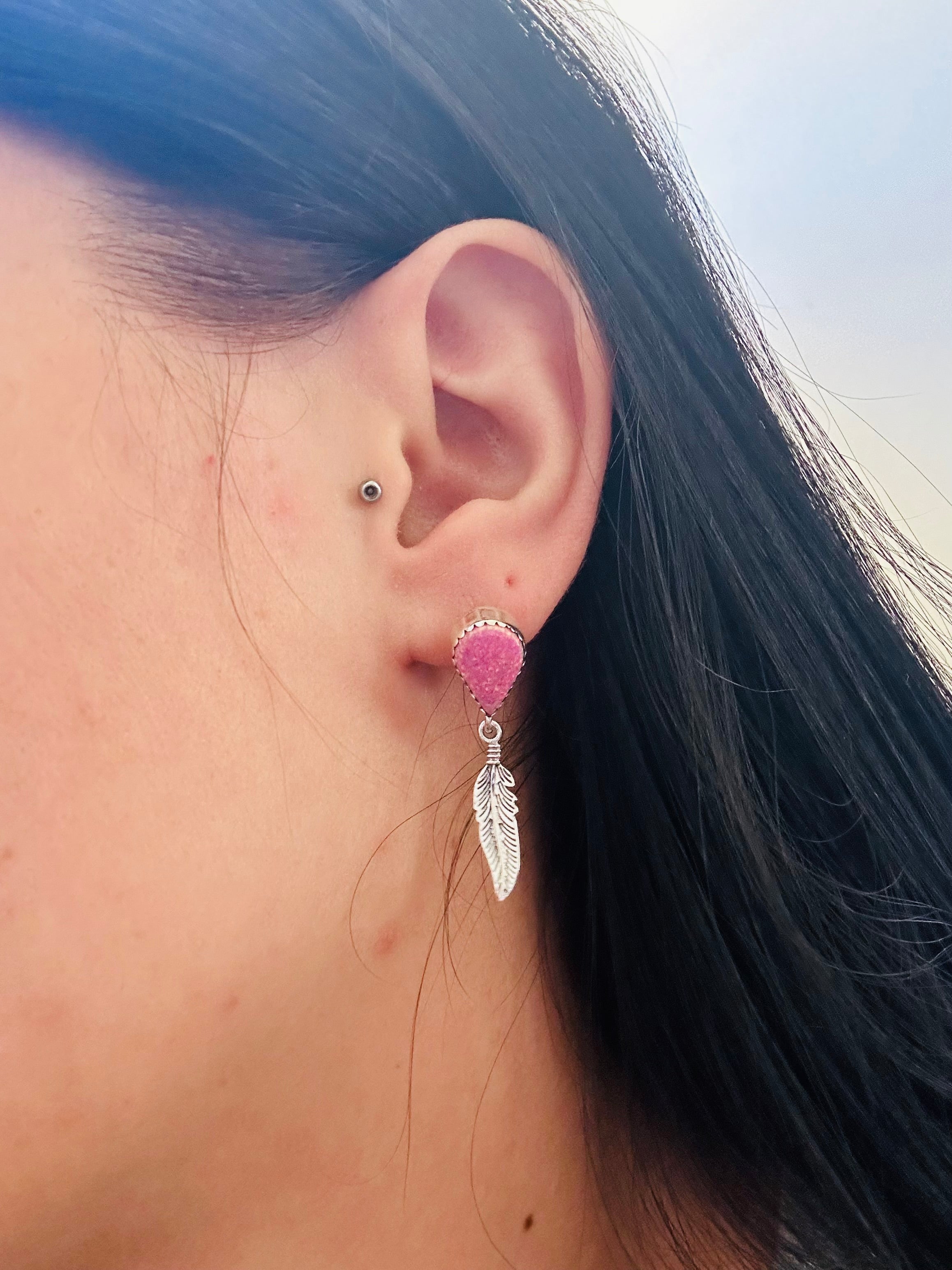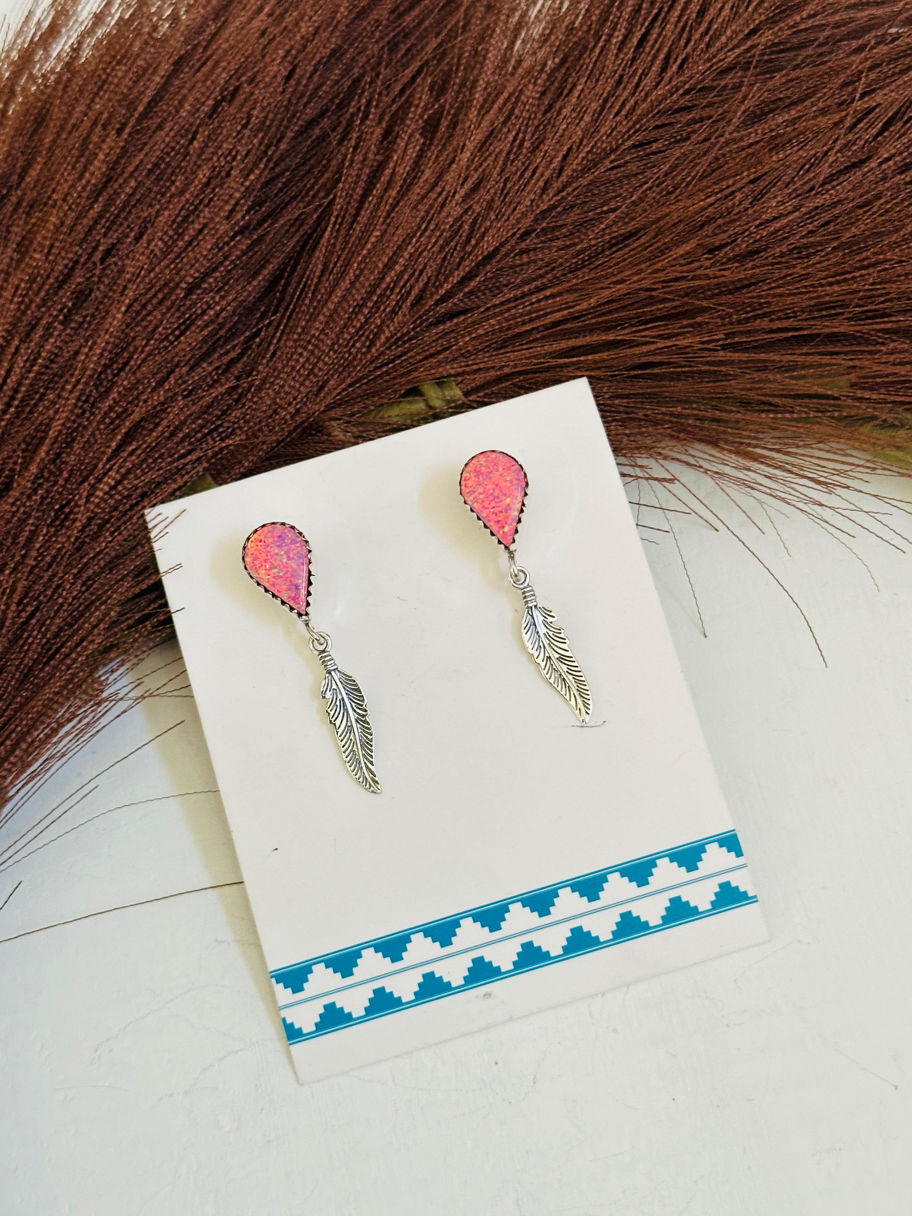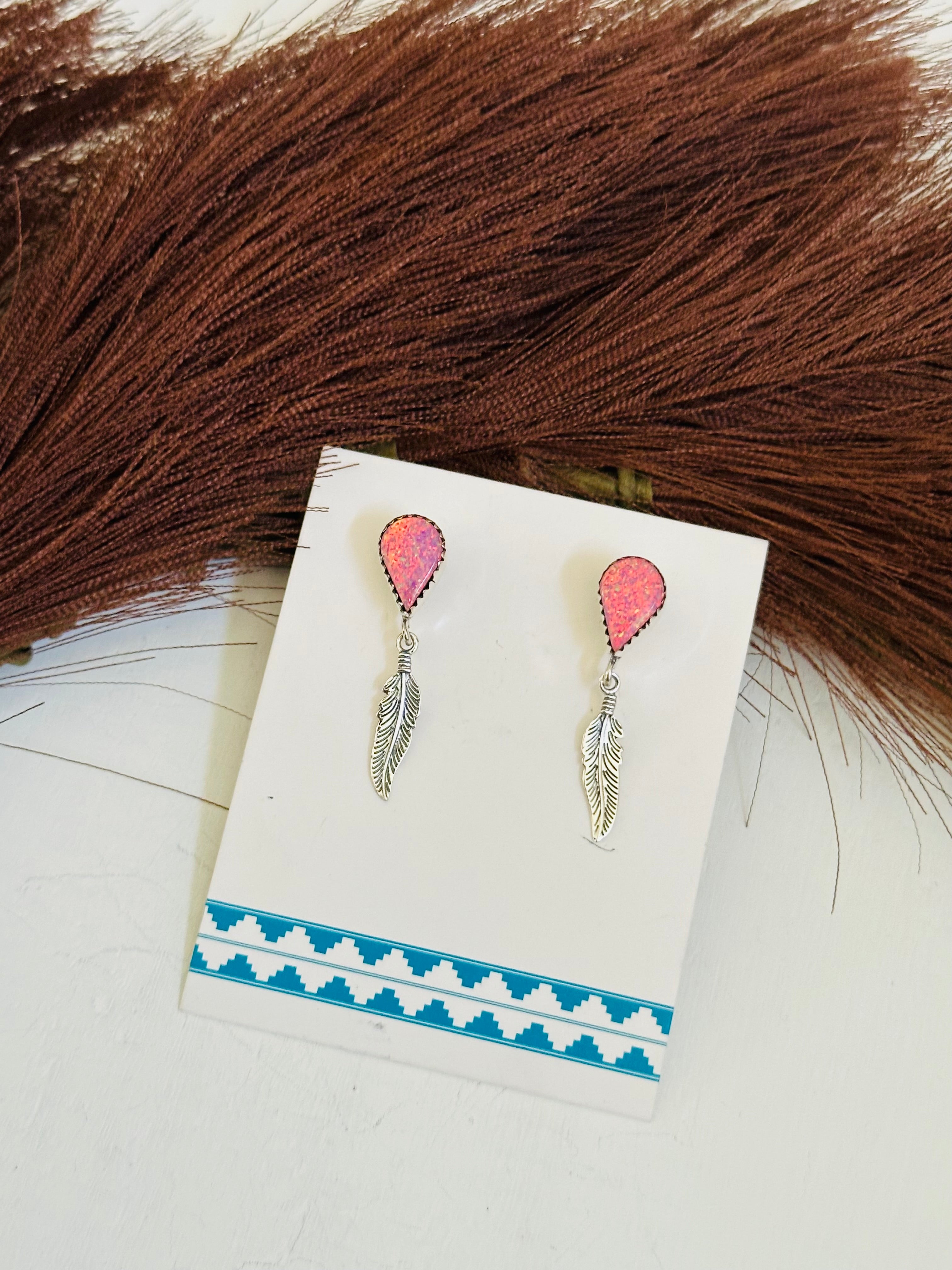TTD “Heather” Pink Opal & Sterling Silver Post Dangle Earrings