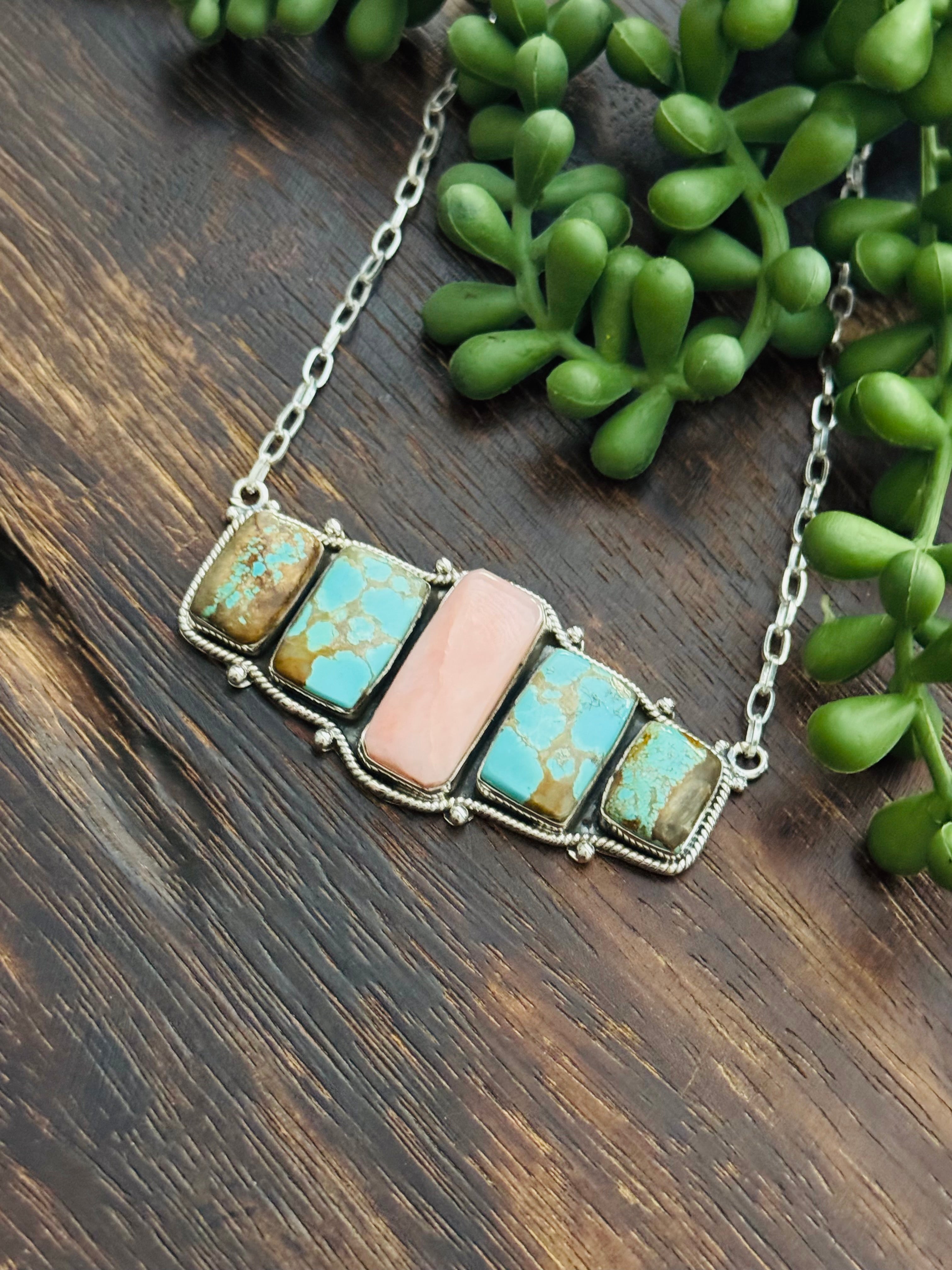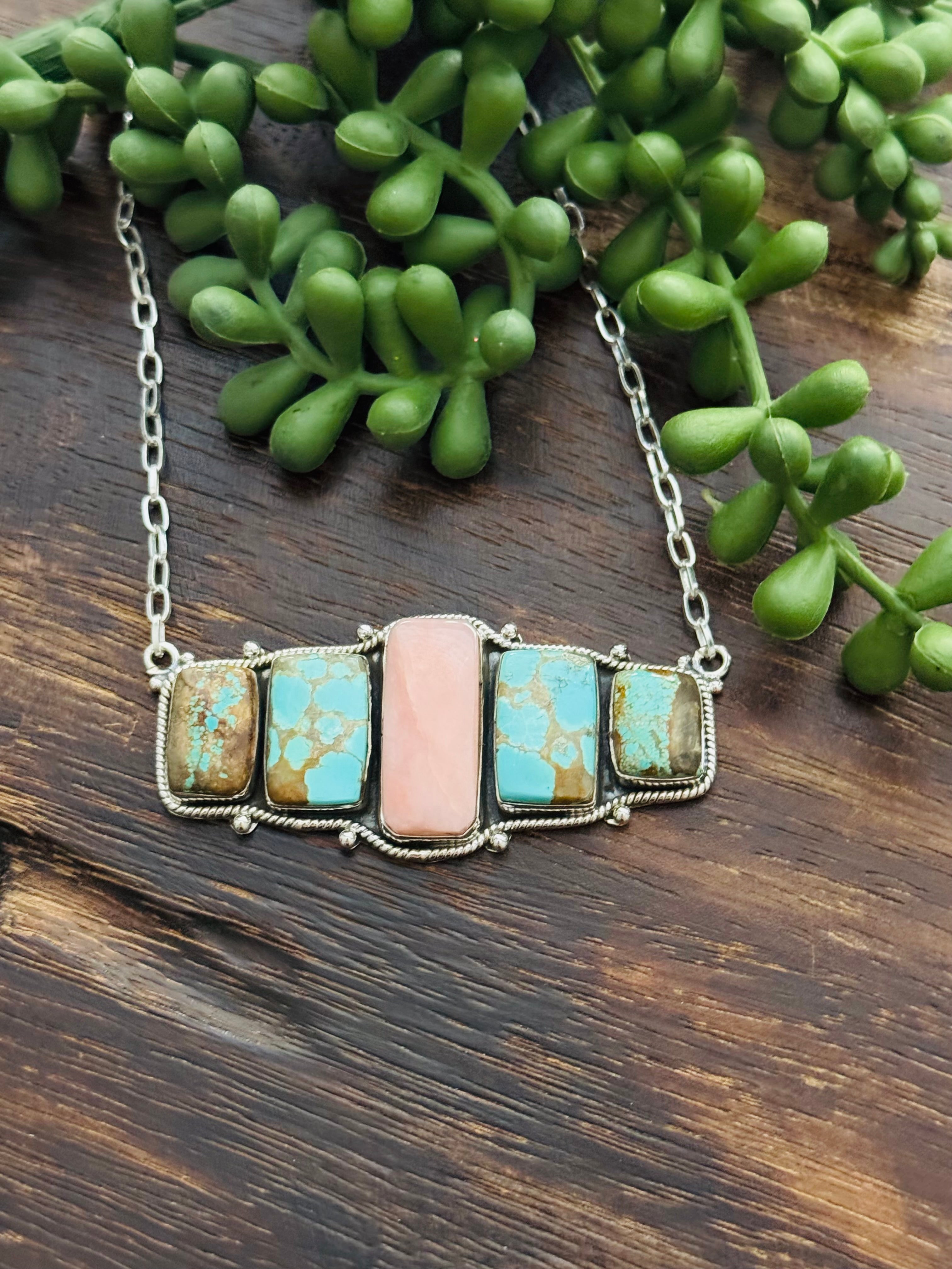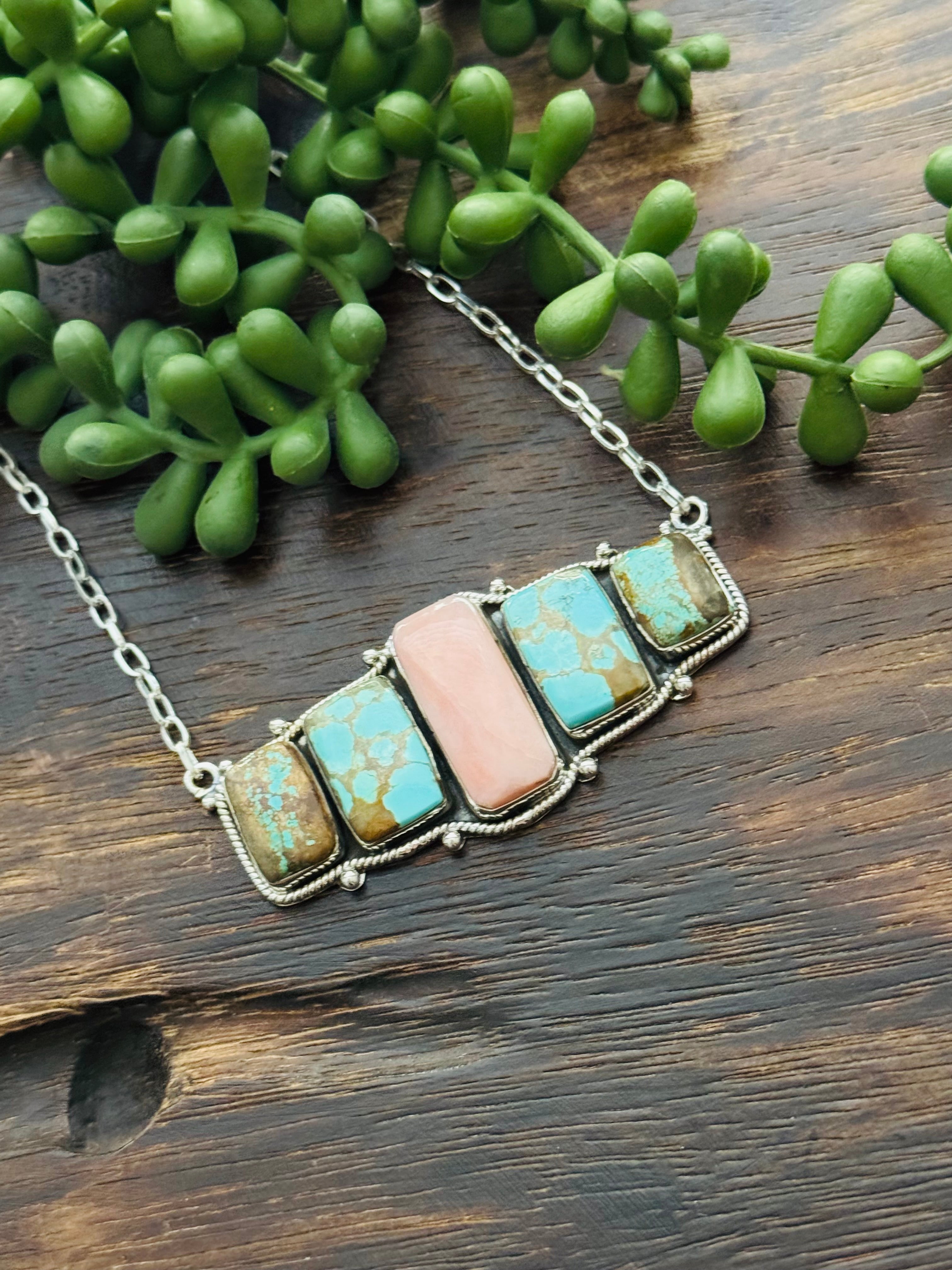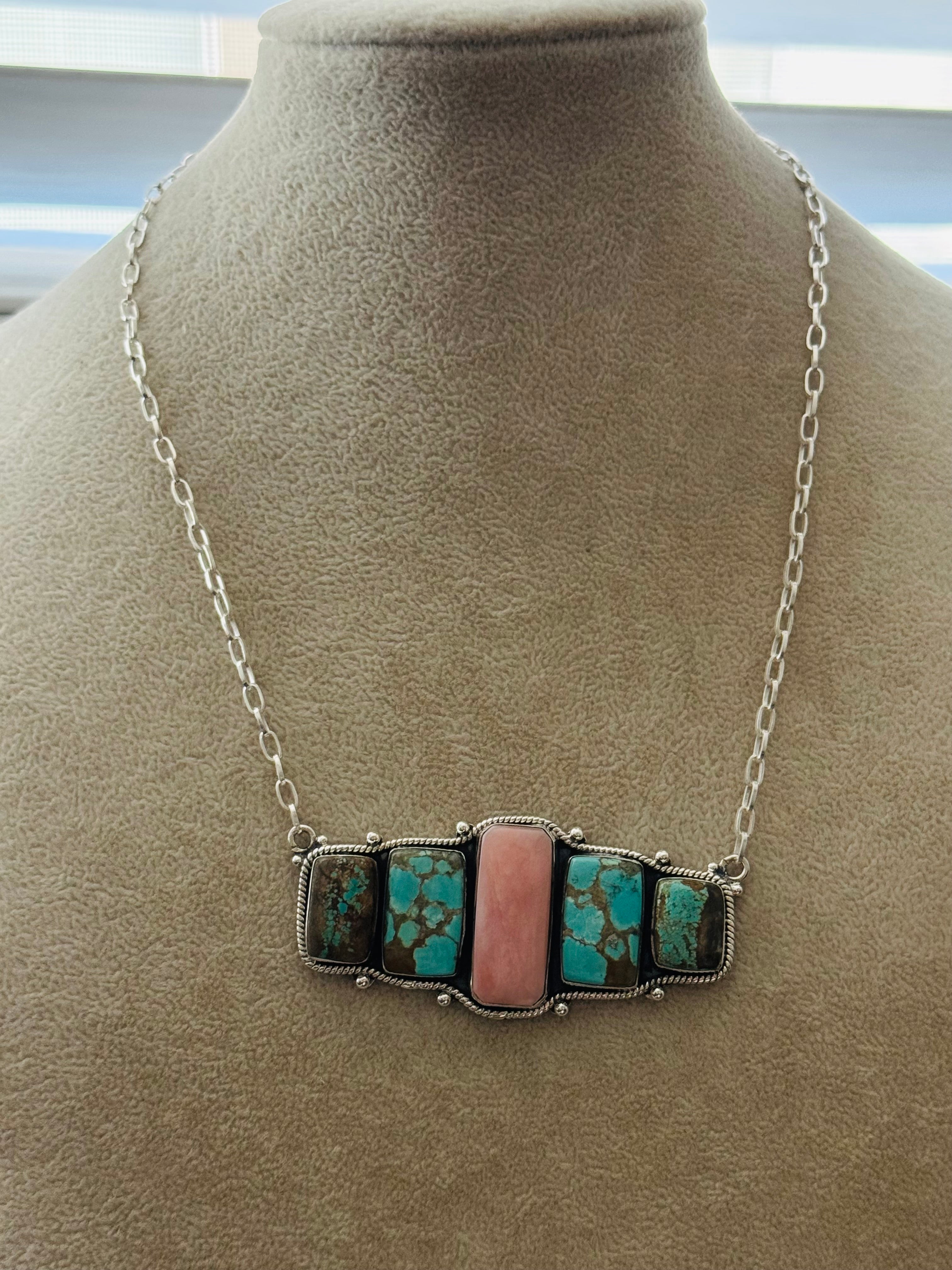 Beautiful Necklace. Southwest Made Multi Stone & Sterling Silver Necklace. It measures 17 inches long with hang while the chain measures 15 inches long. Signed by the artist and stamped sterling silver.