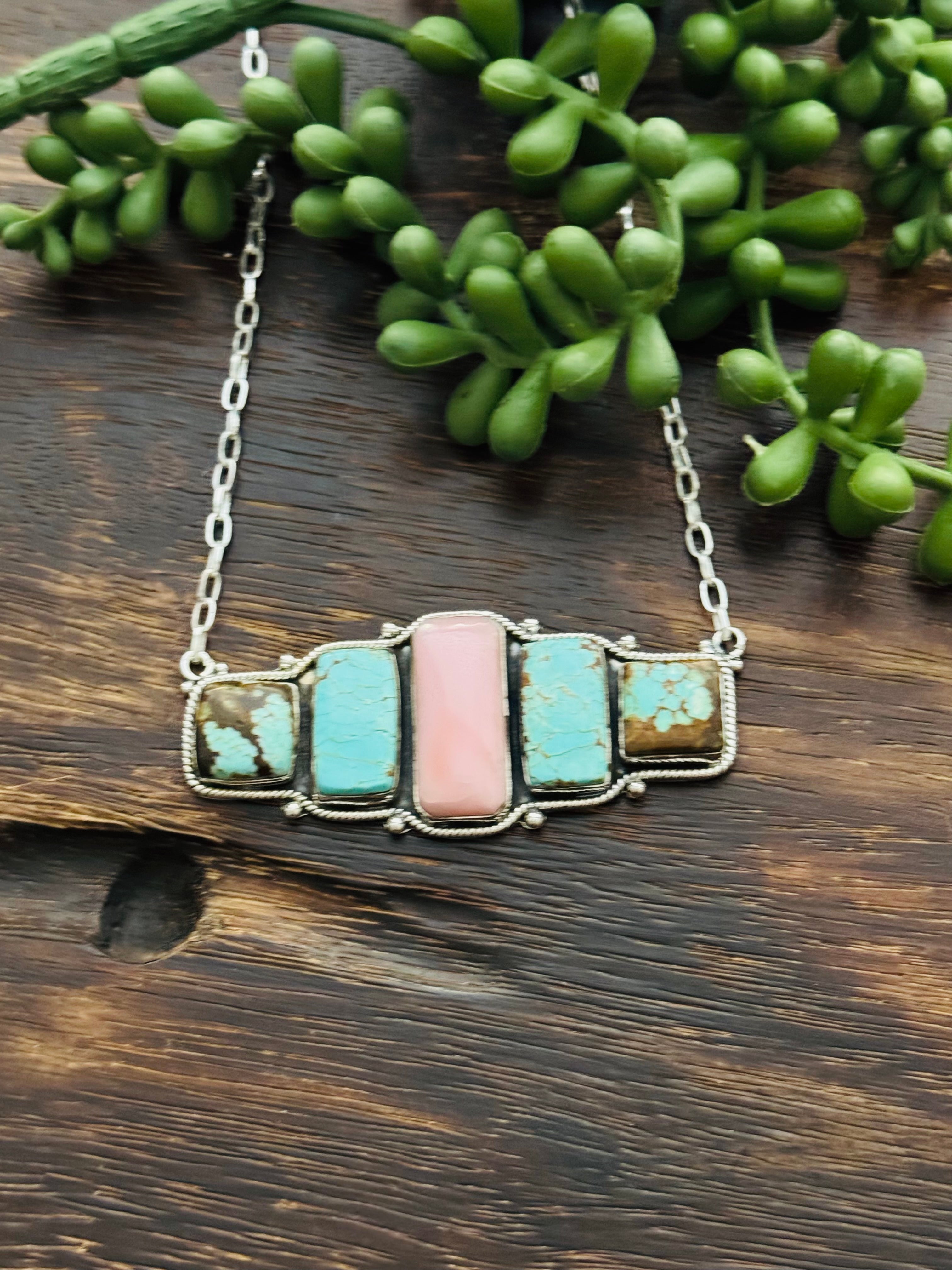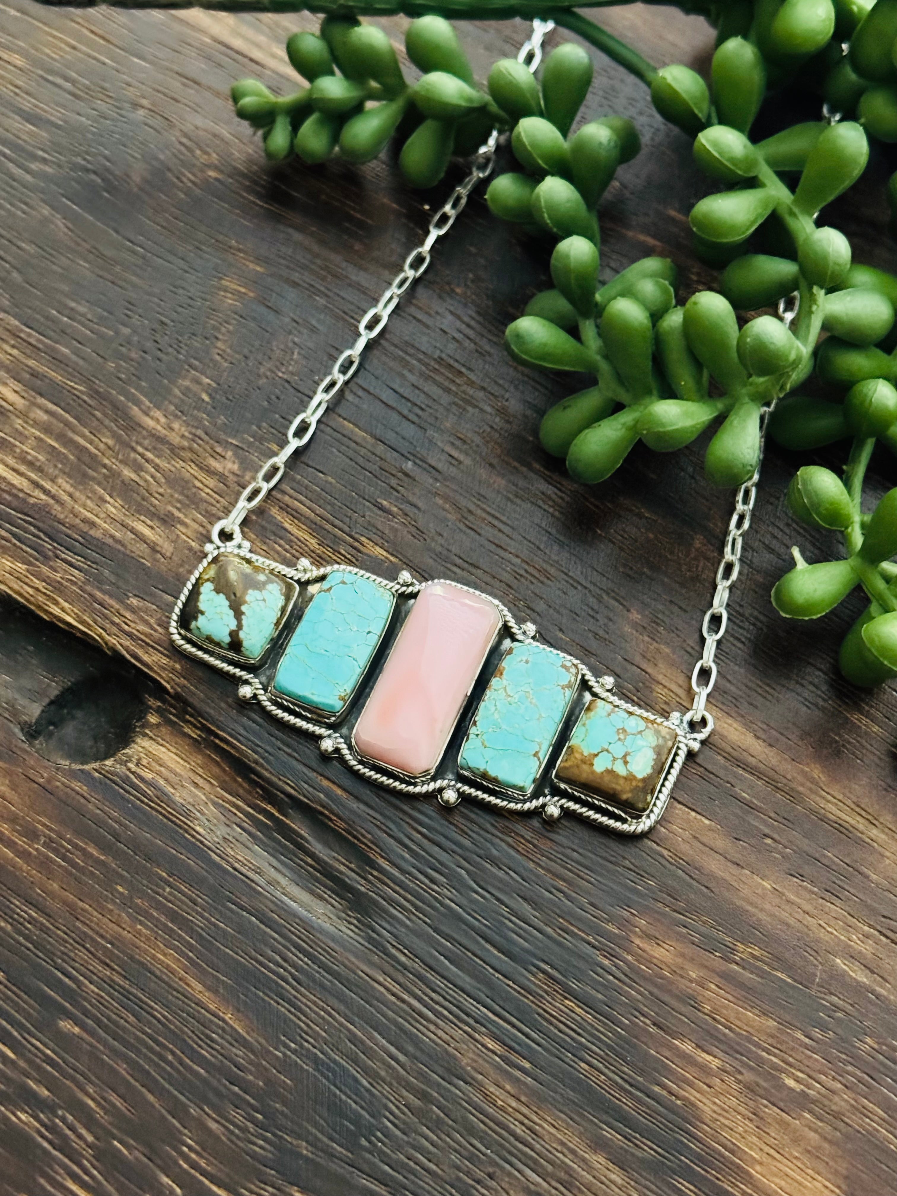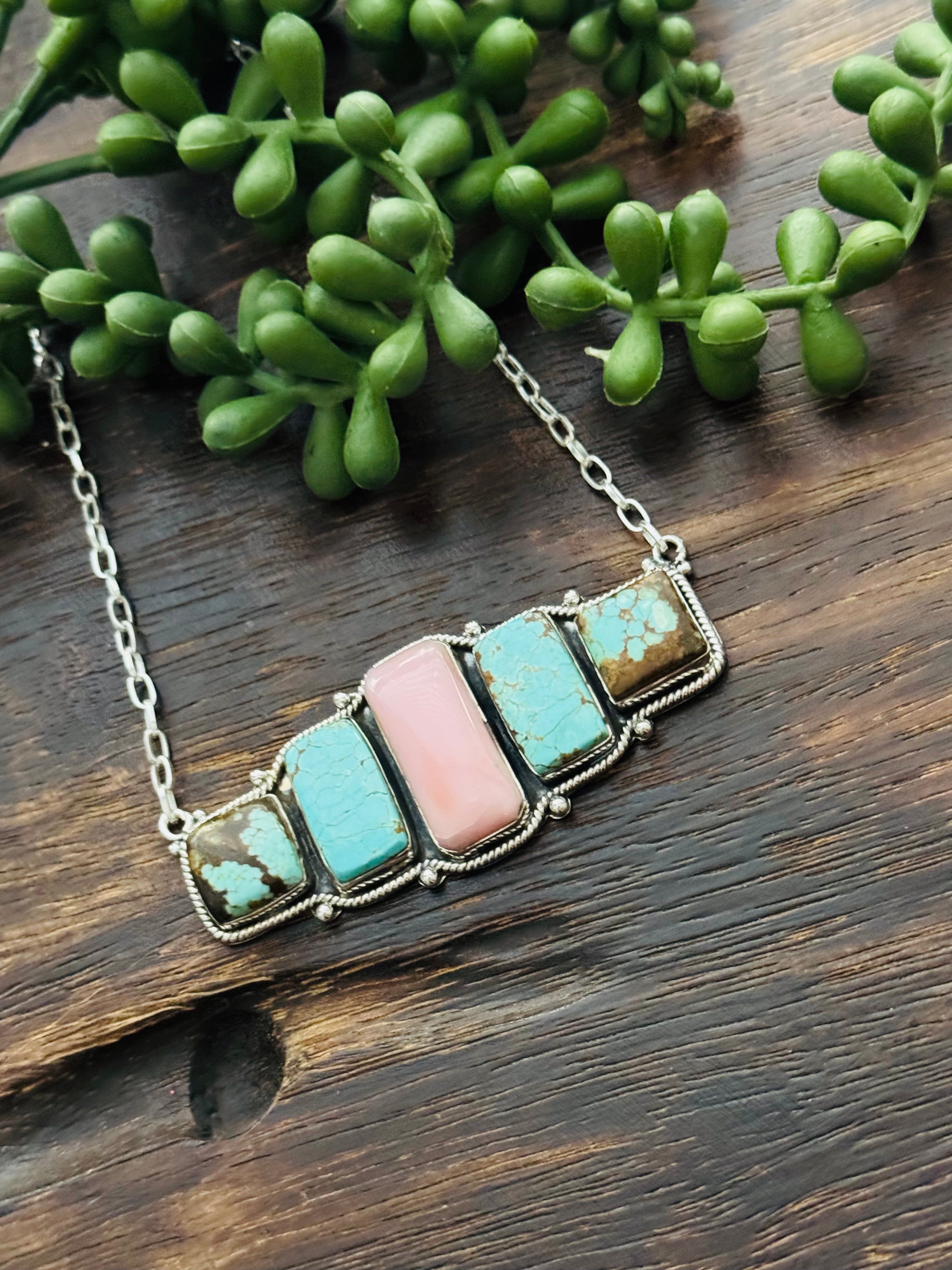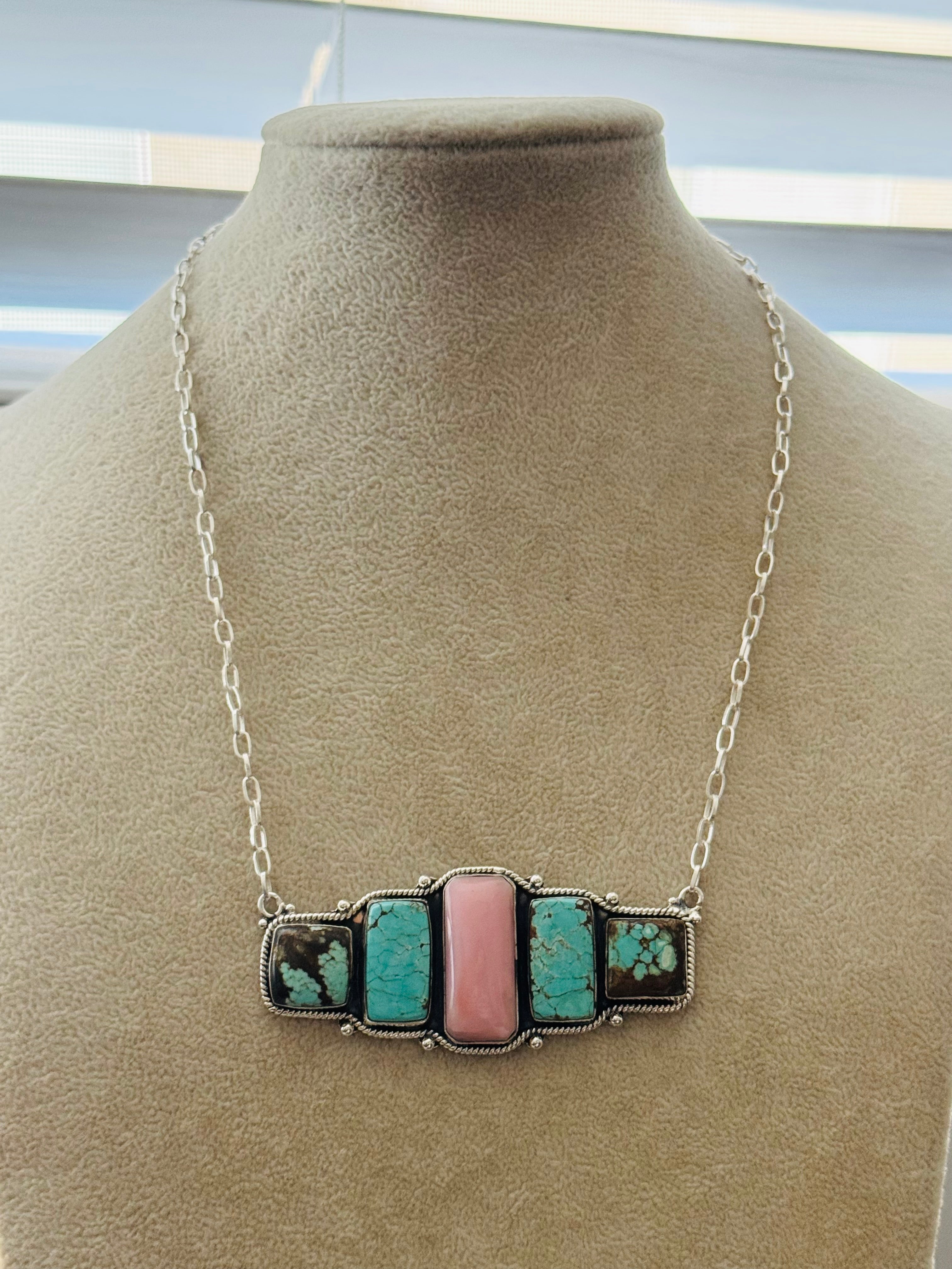 Beautiful Necklace. Southwest Made Multi Stone & Sterling Silver Necklace. It measures 17 inches long with hang while the chain measures 15 inches long. Signed by the artist and stamped sterling silver.