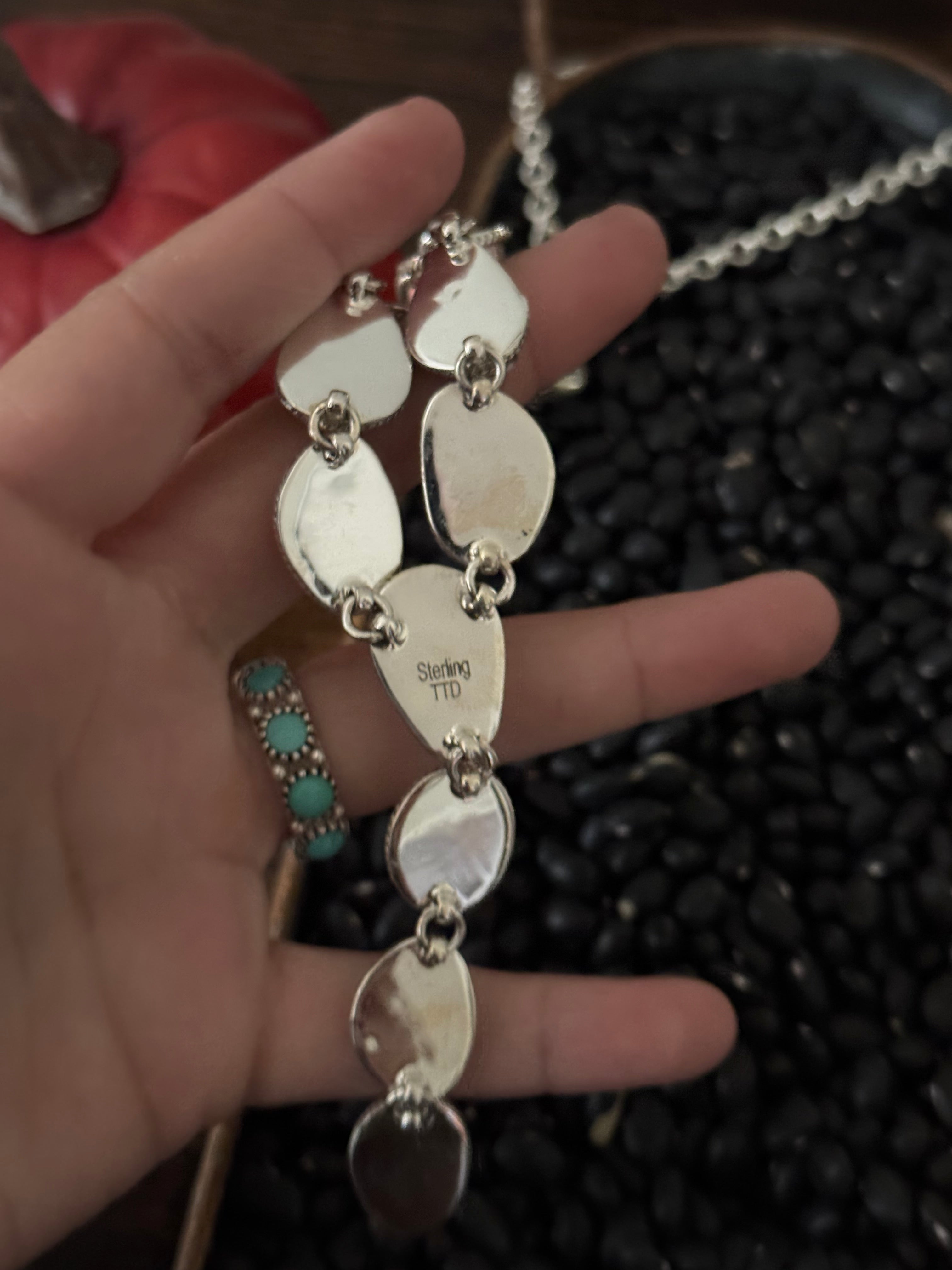 Beautiful Necklace. Southwest Made Palomino Variscite & Sterling Silver Necklace. It measures 28 inches long with hang while the chain measures 22 inches long. Signed by the artist and stamped sterling silver.