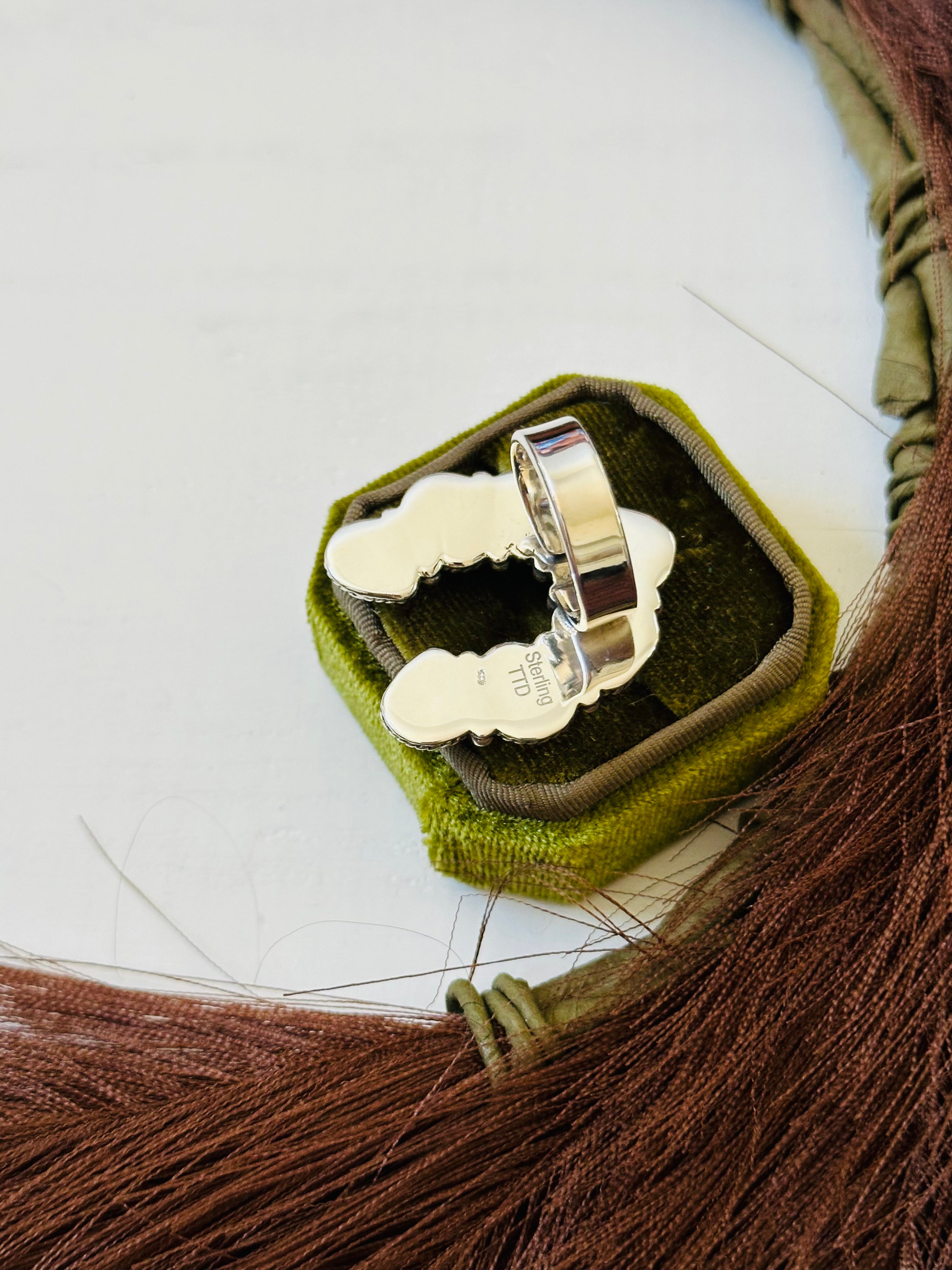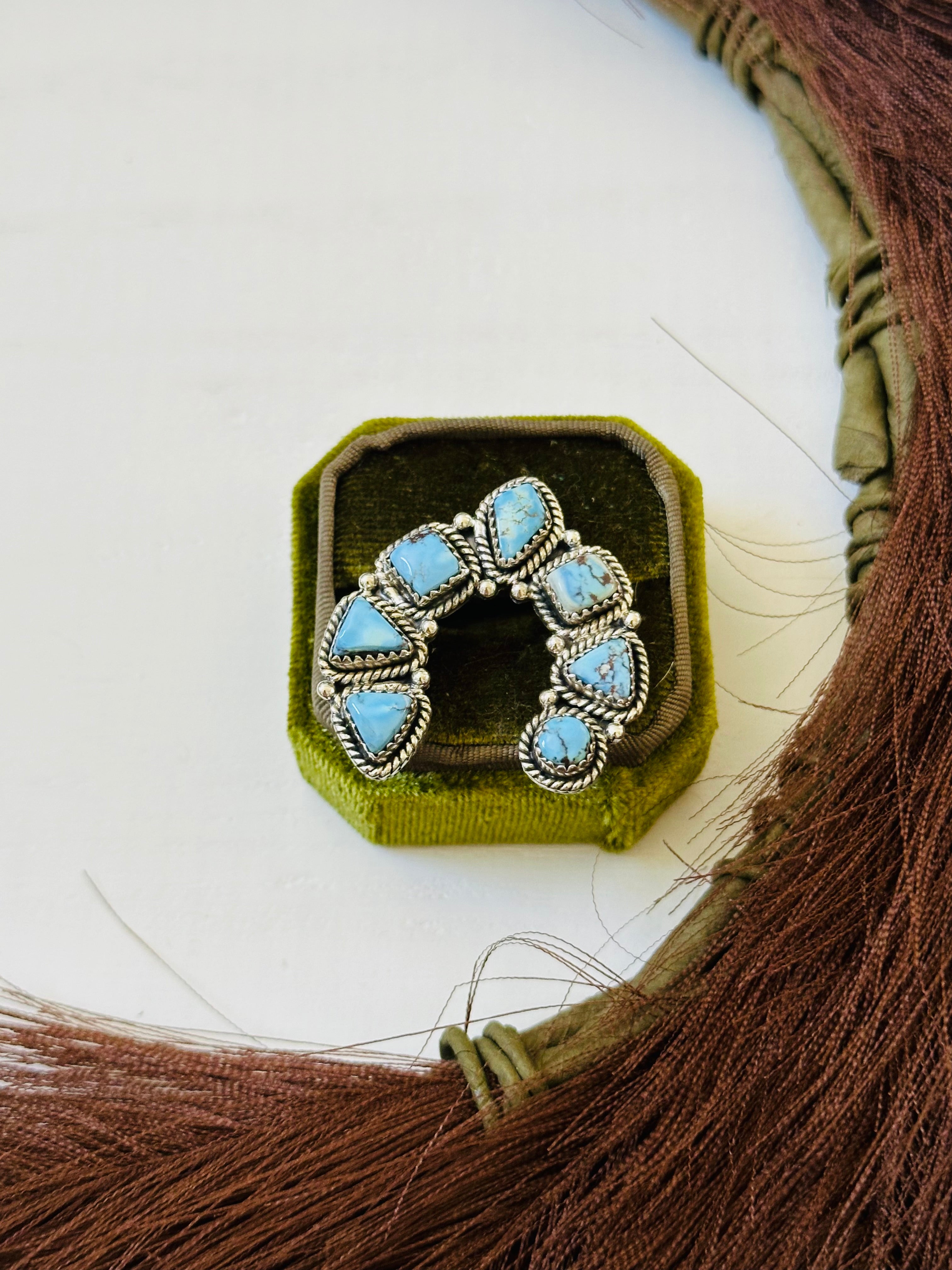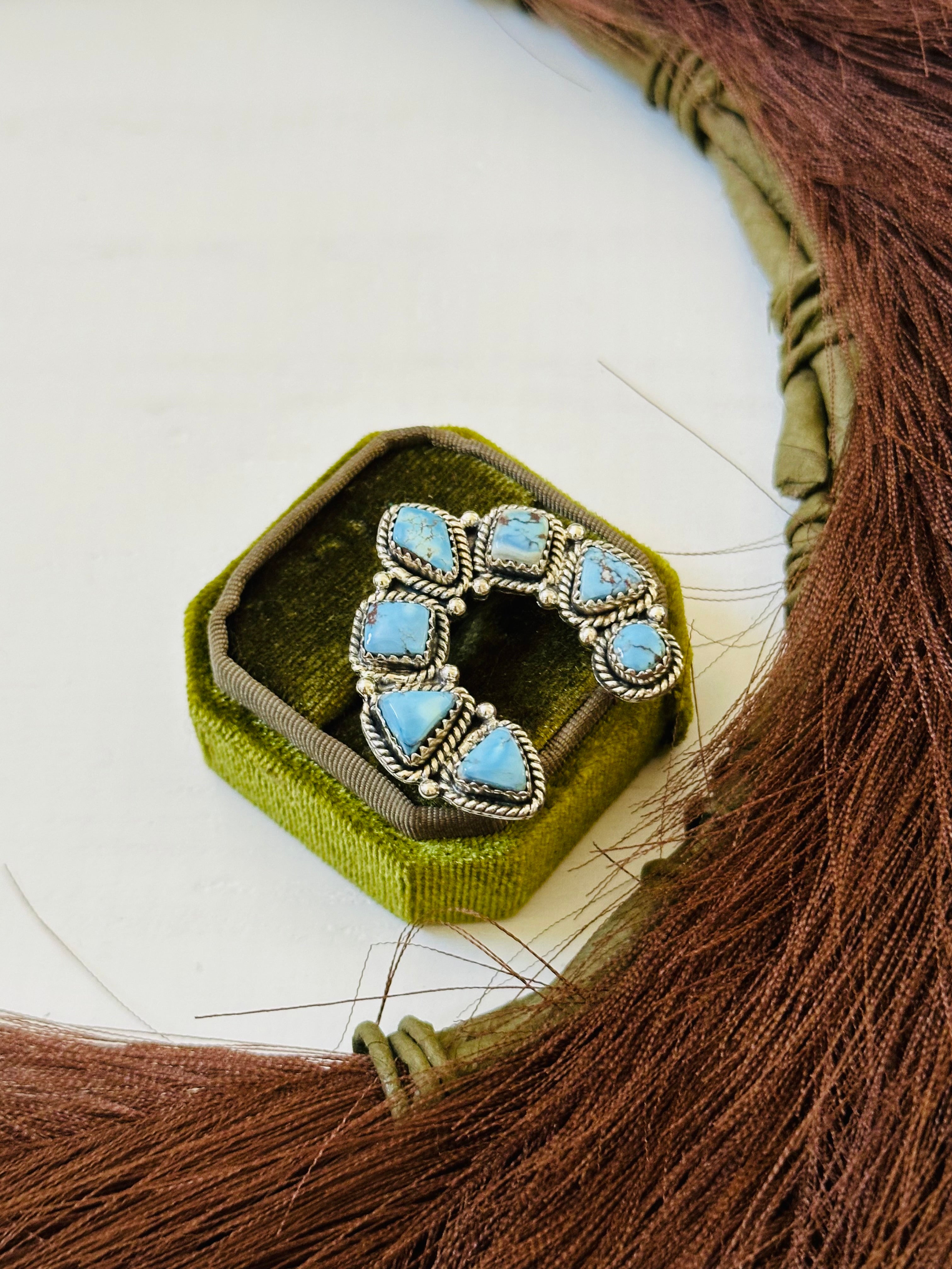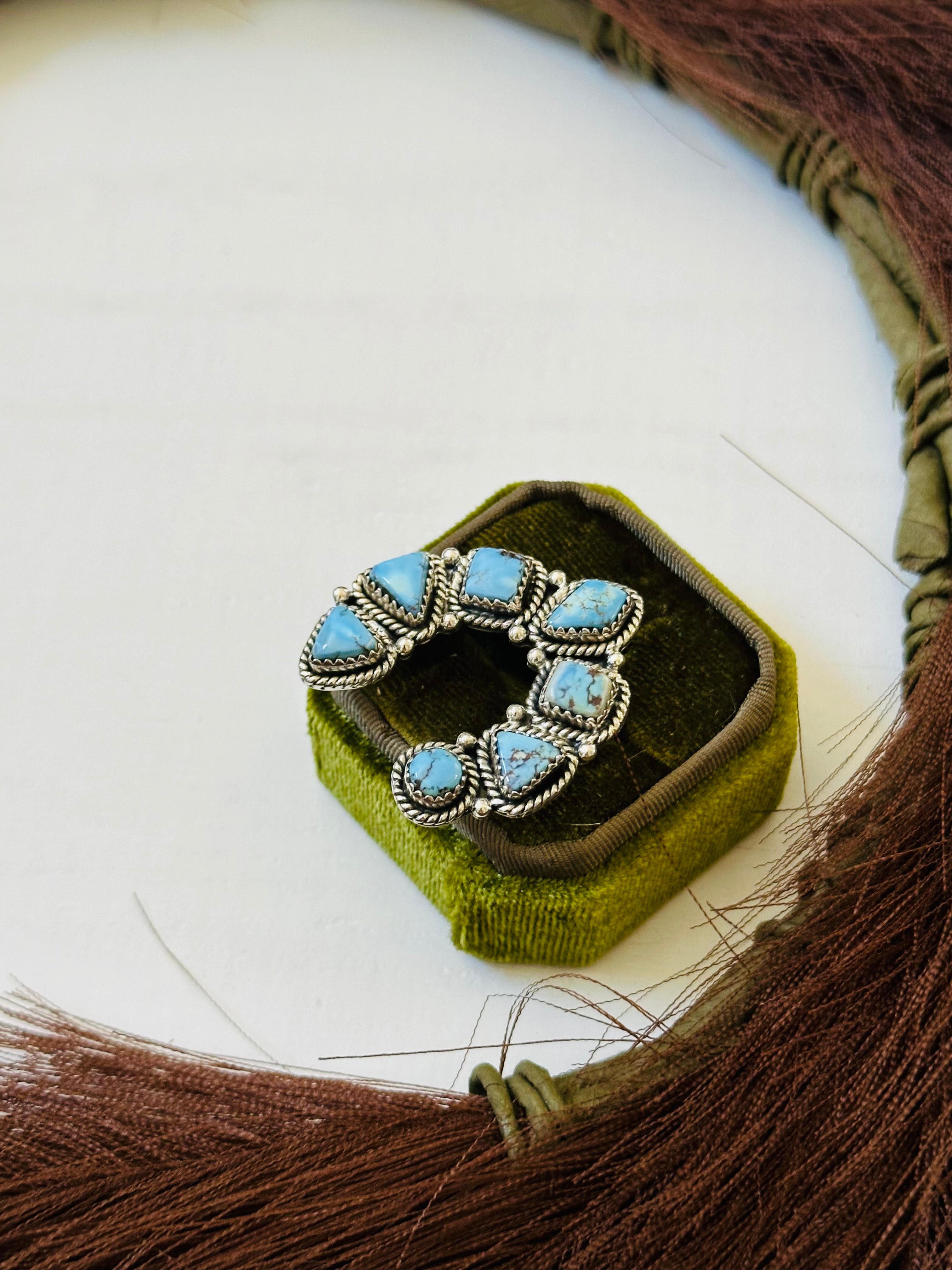 TTD “Prosperous” Golden Hills Turquoise & Sterling Silver Adjustable Cluster Naja Ring