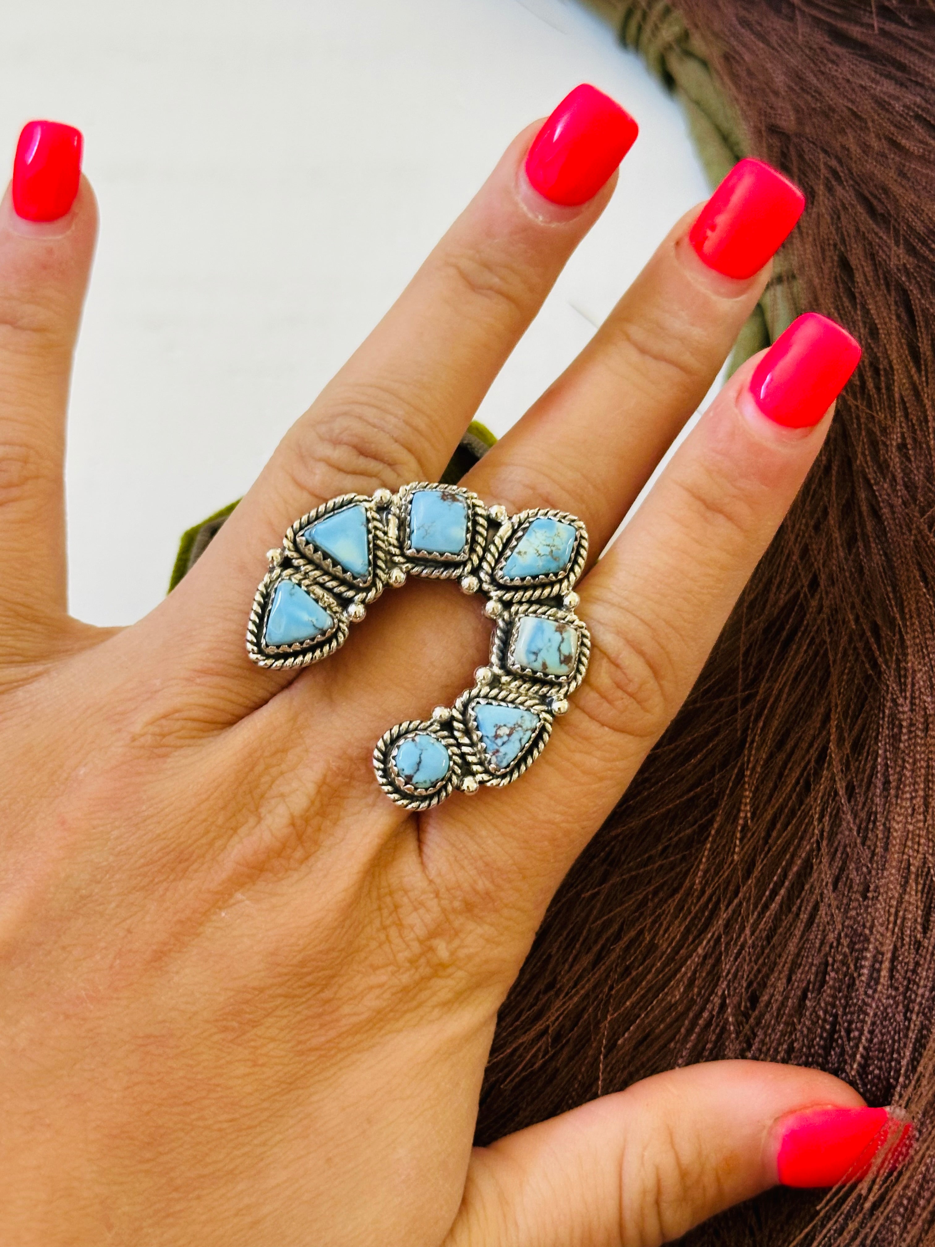 Beautiful naja ring. Southwest Handmade Golden Hills Turquoise & Sterling Silver Adjustable Cluster Naja Ring. It measures 1 1/2 inches long and 1 1/4 inches wide. Signed by the artist and stamped sterling silver.