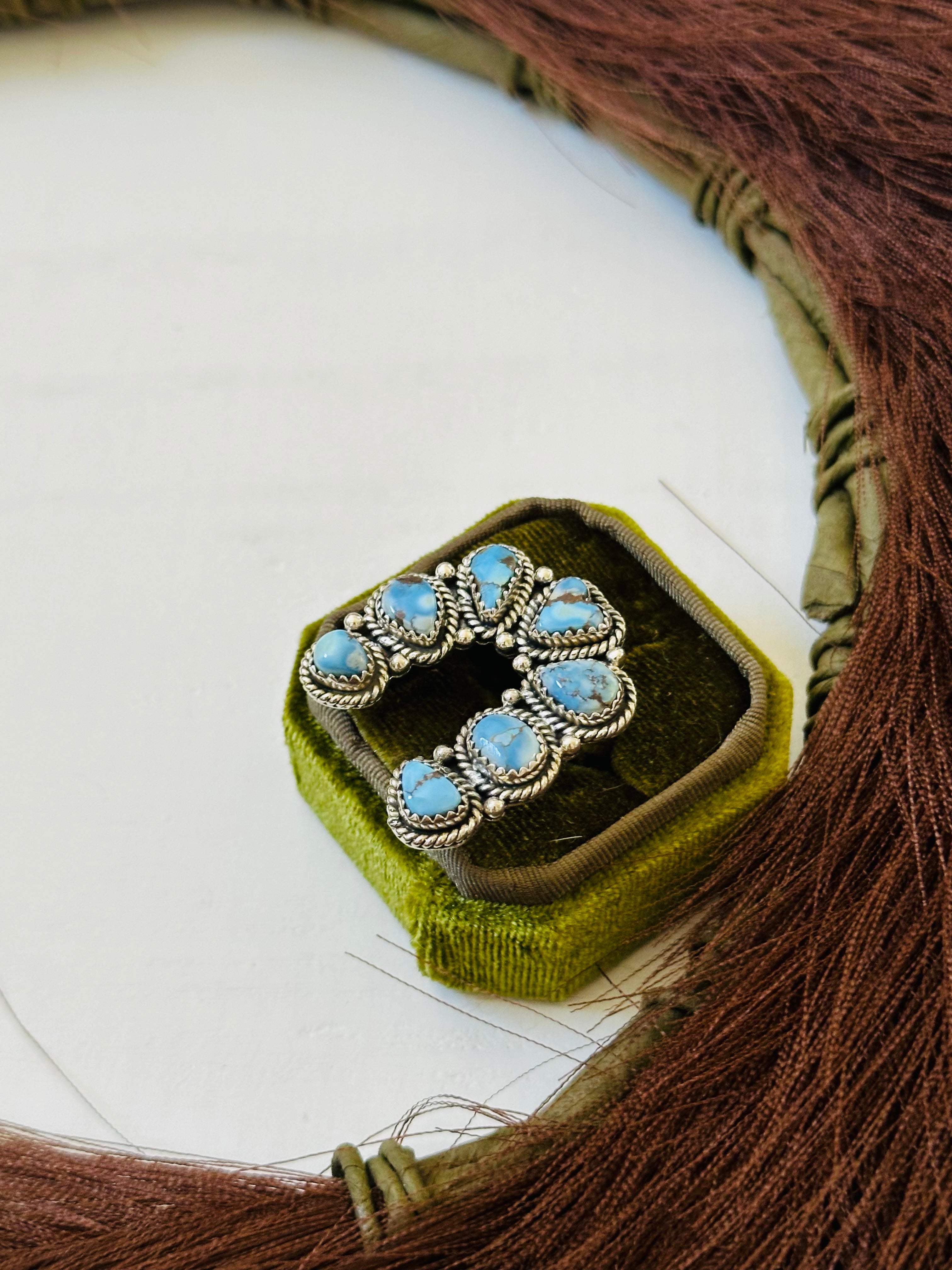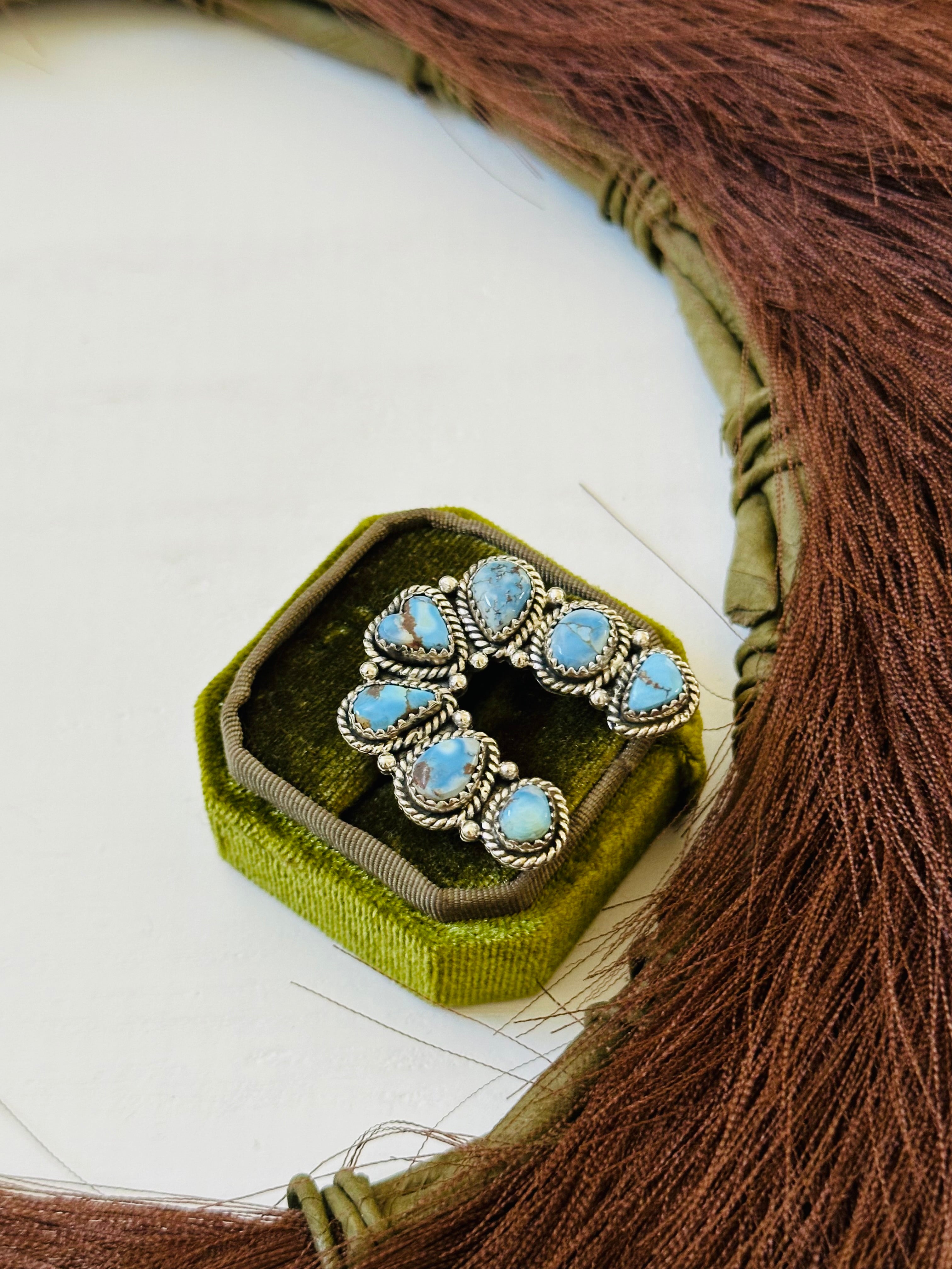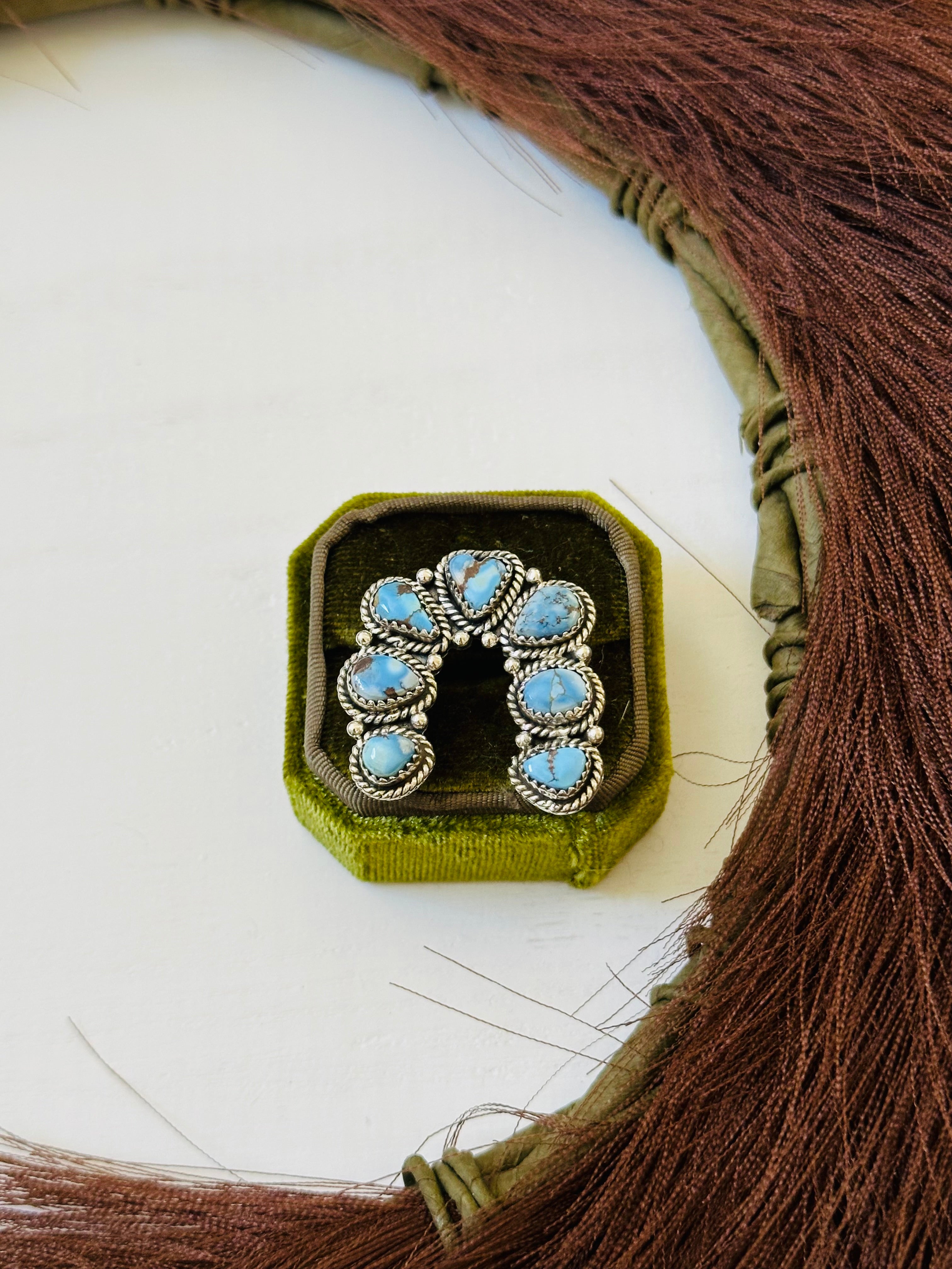 TTD “Prosperous” Golden Hills Turquoise & Sterling Silver Adjustable Cluster Naja Ring