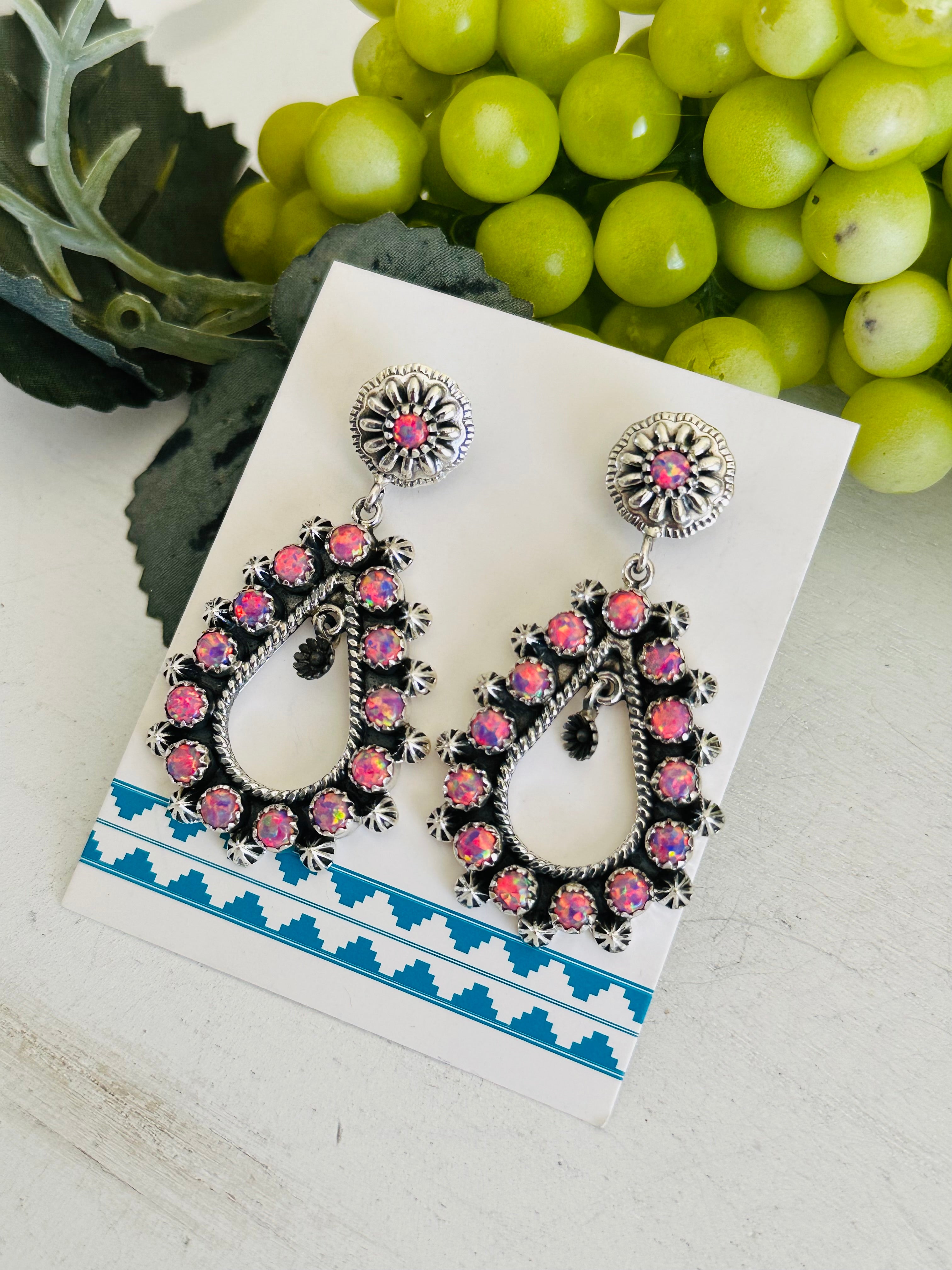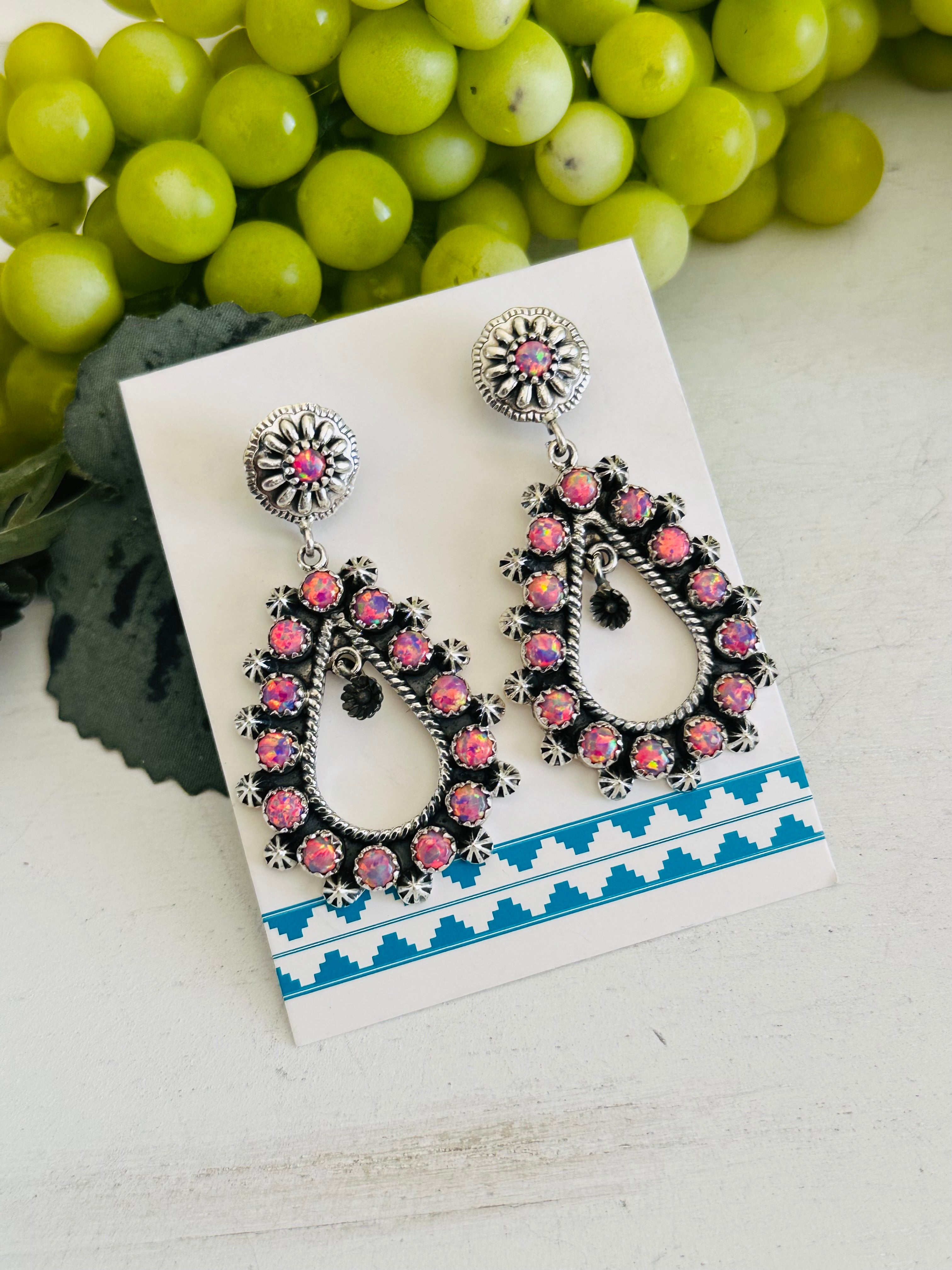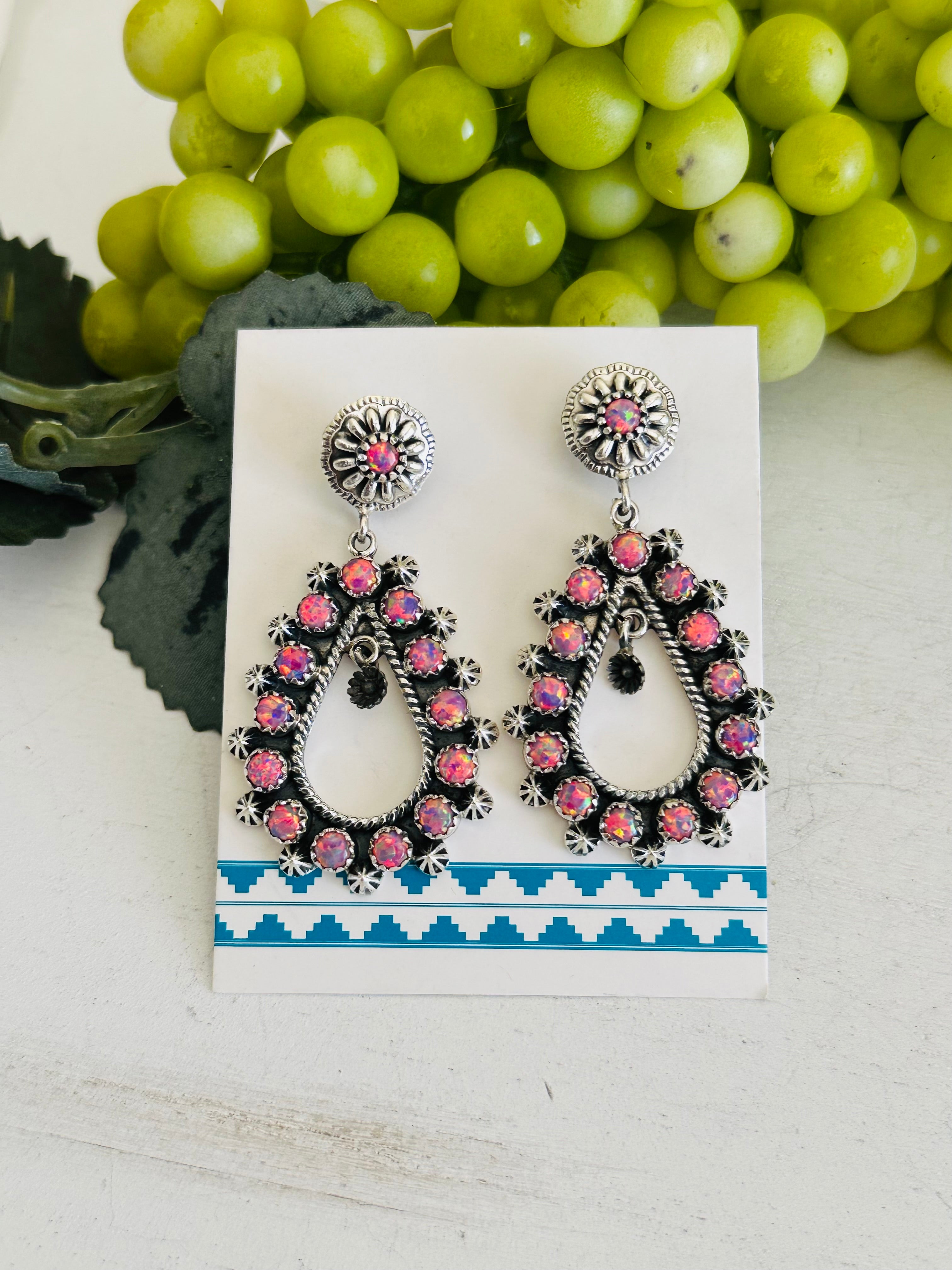 TTD “Tear Drop” Pink Opal & Sterling Silver Post Dangle Earrings
