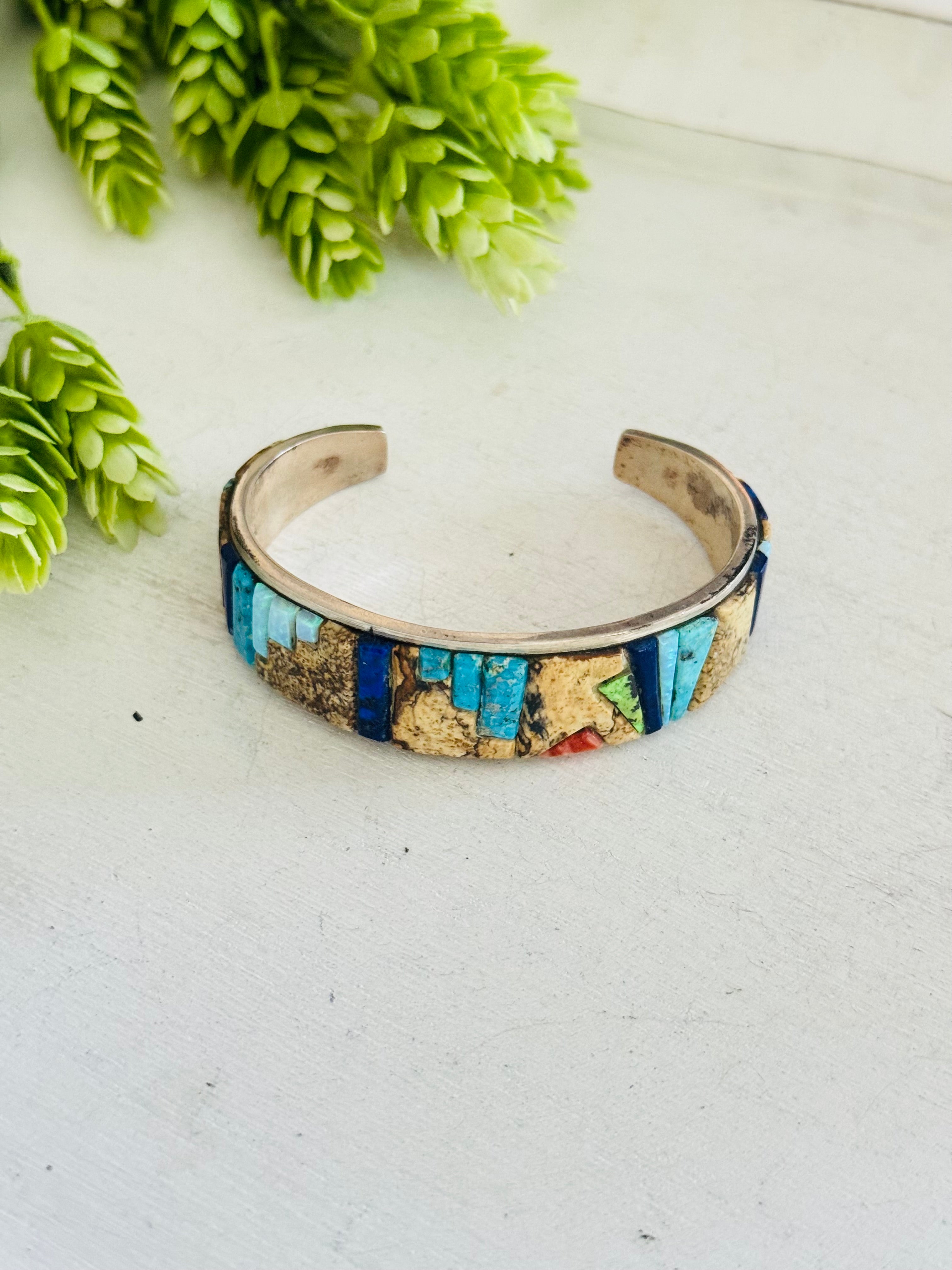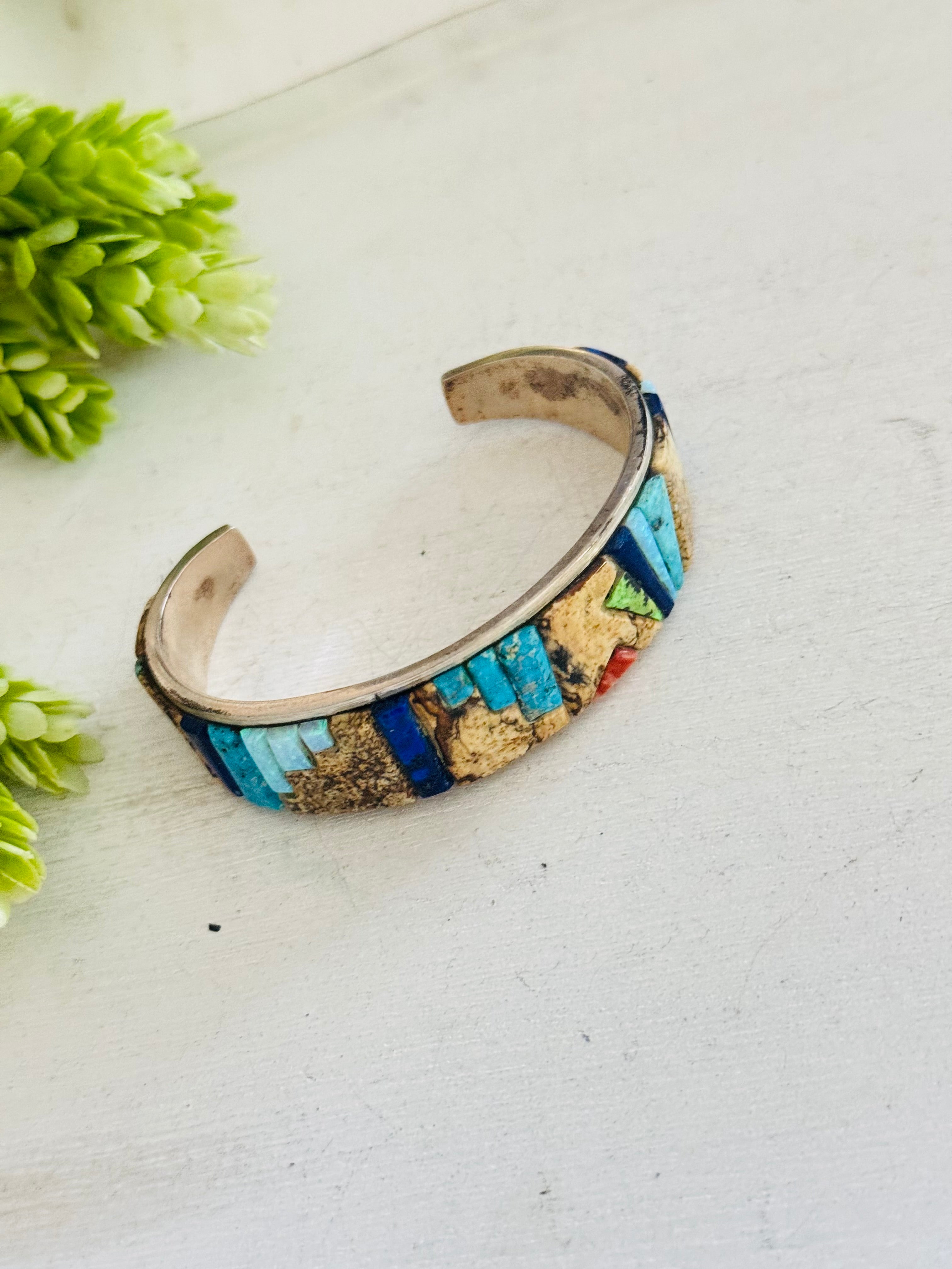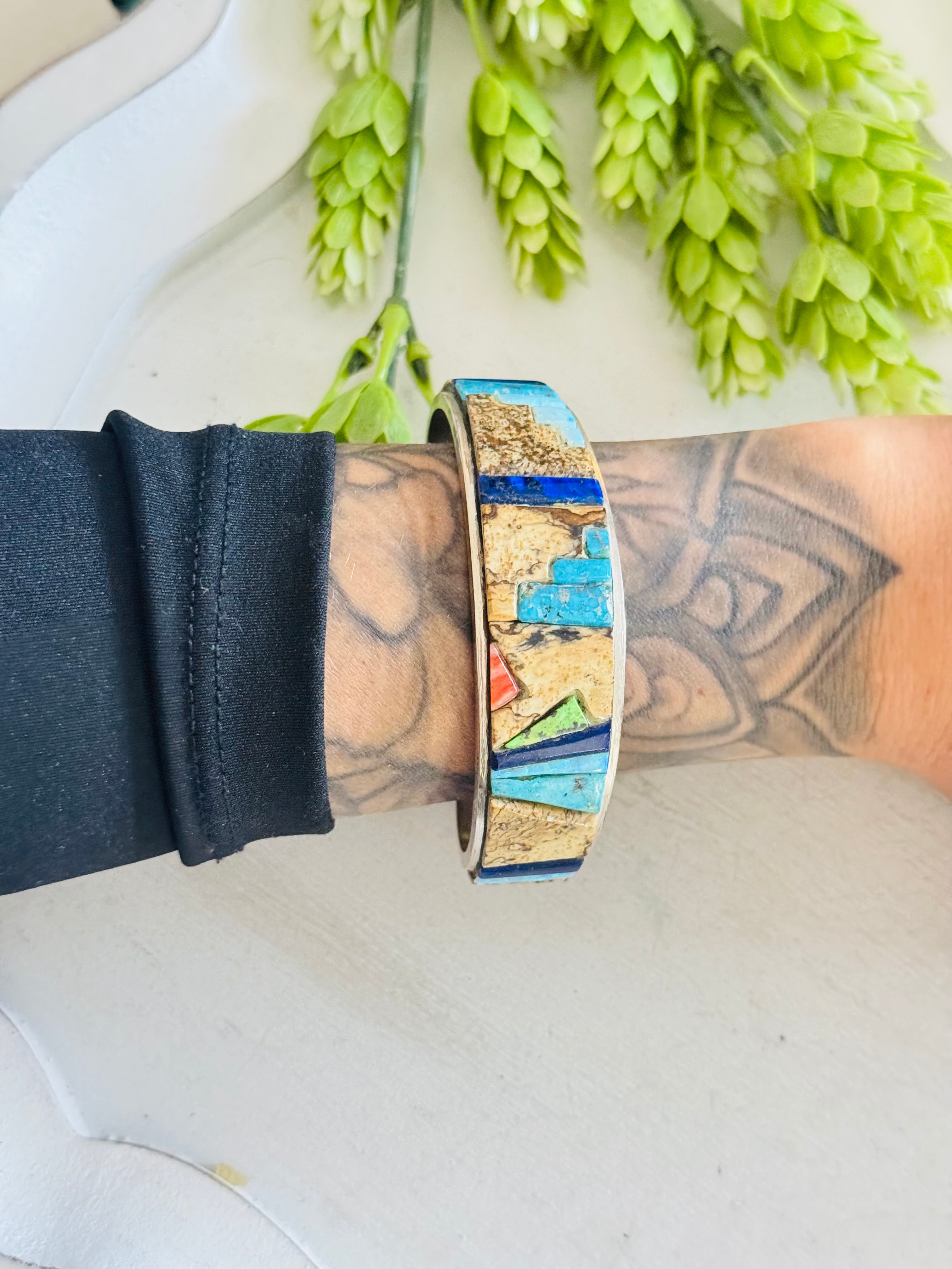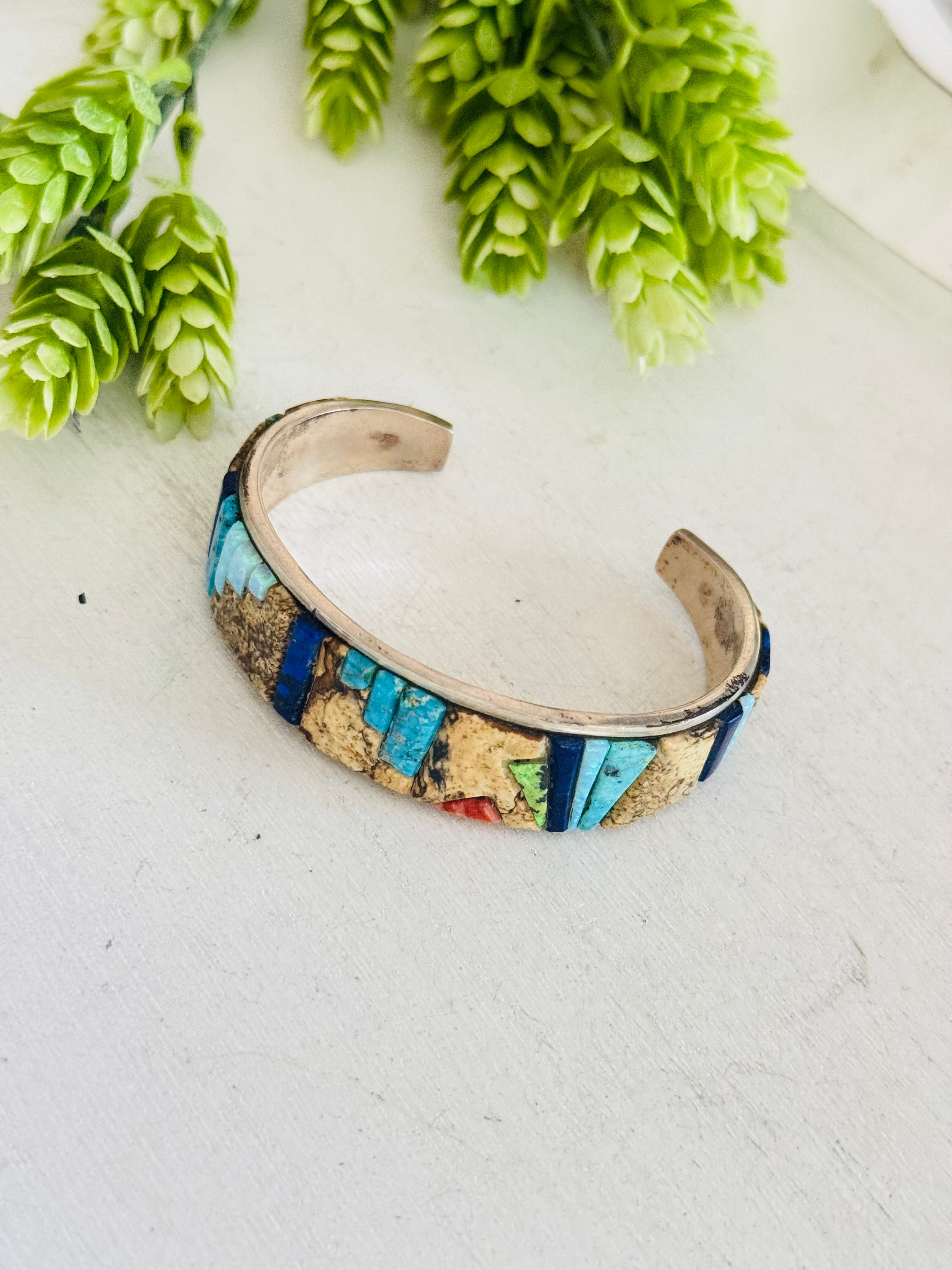 Vintage Edison Yazzie Multi Stone & Sterling Silver Cobblestone Cuff Bracelet