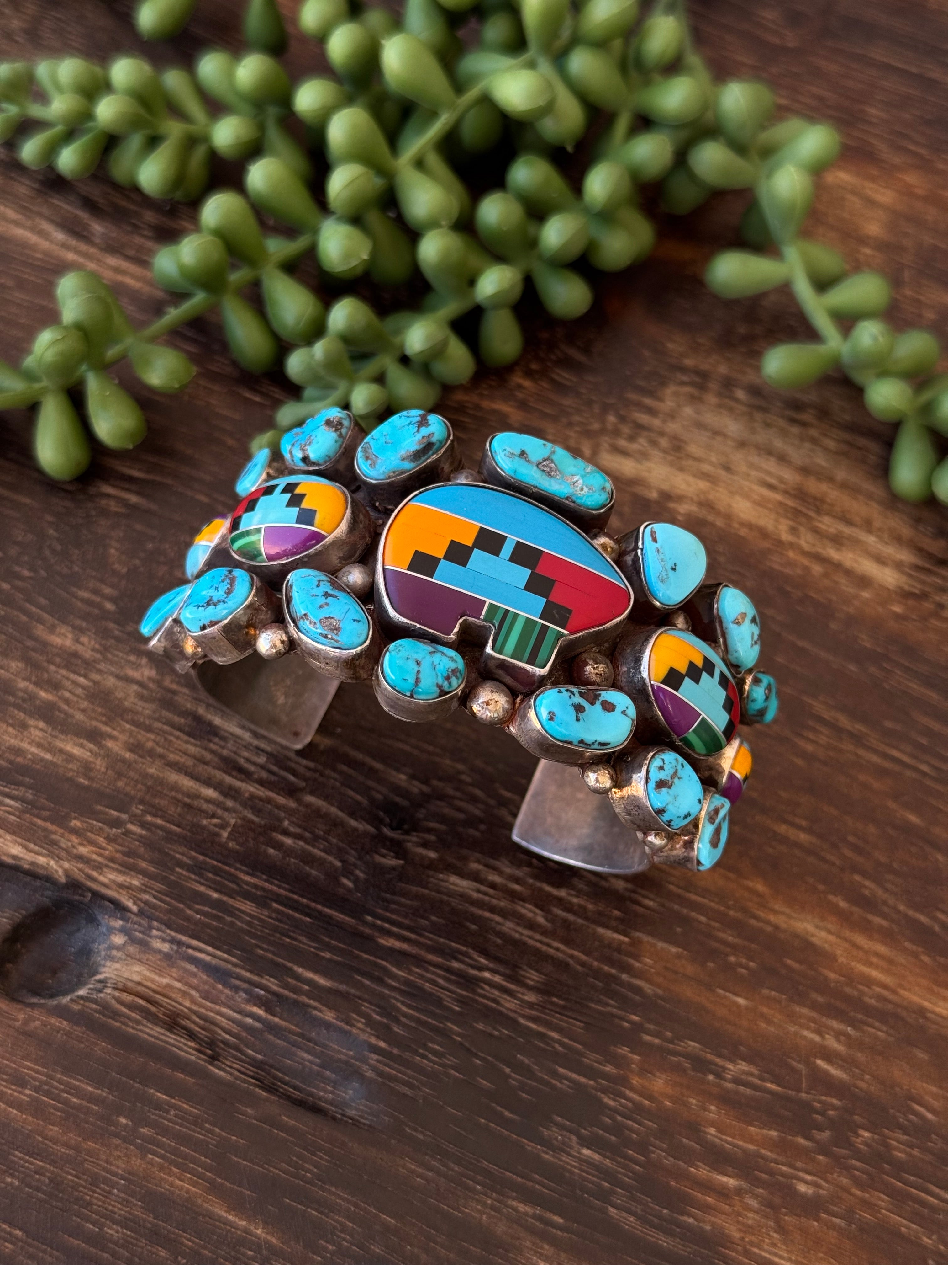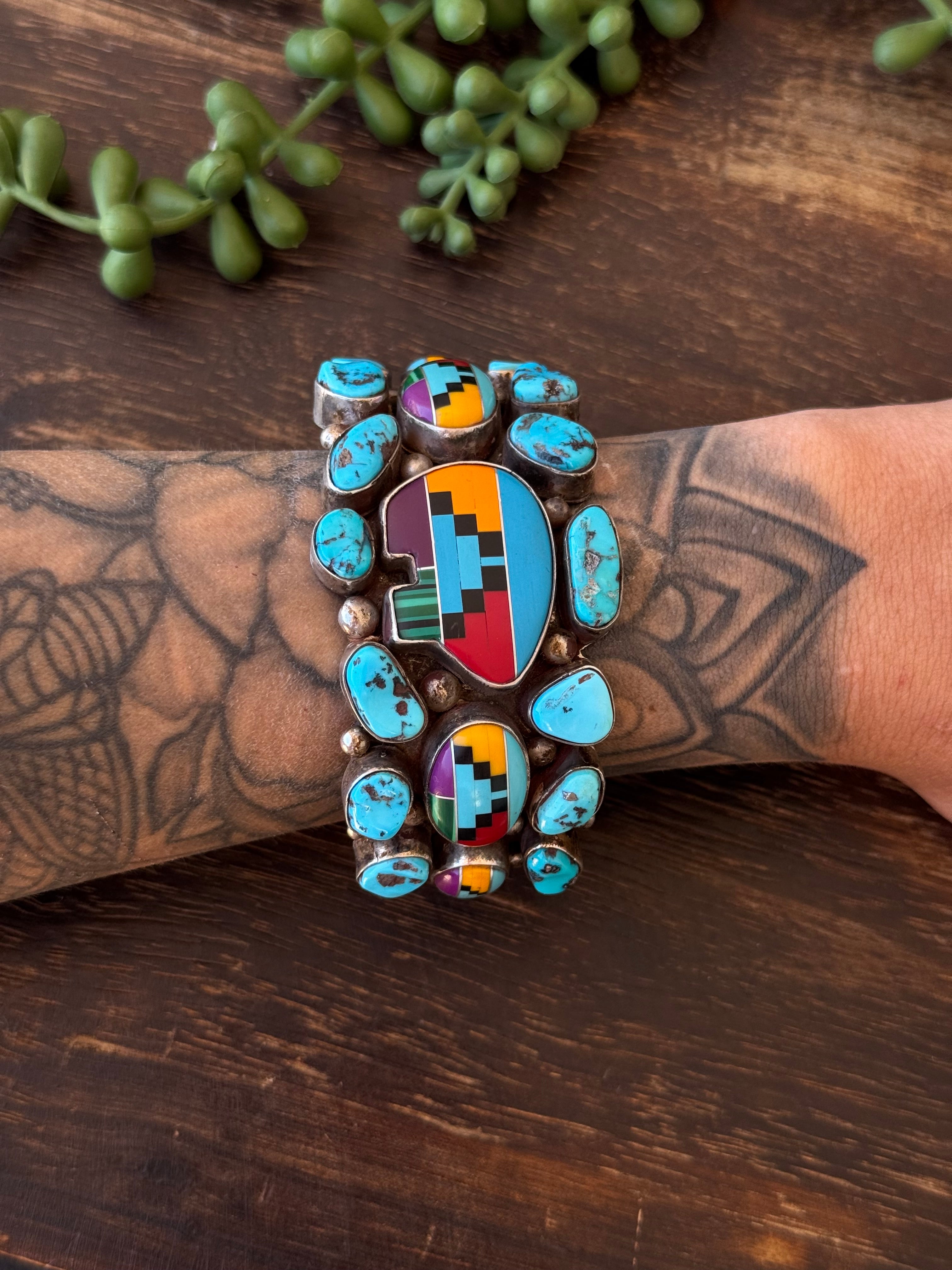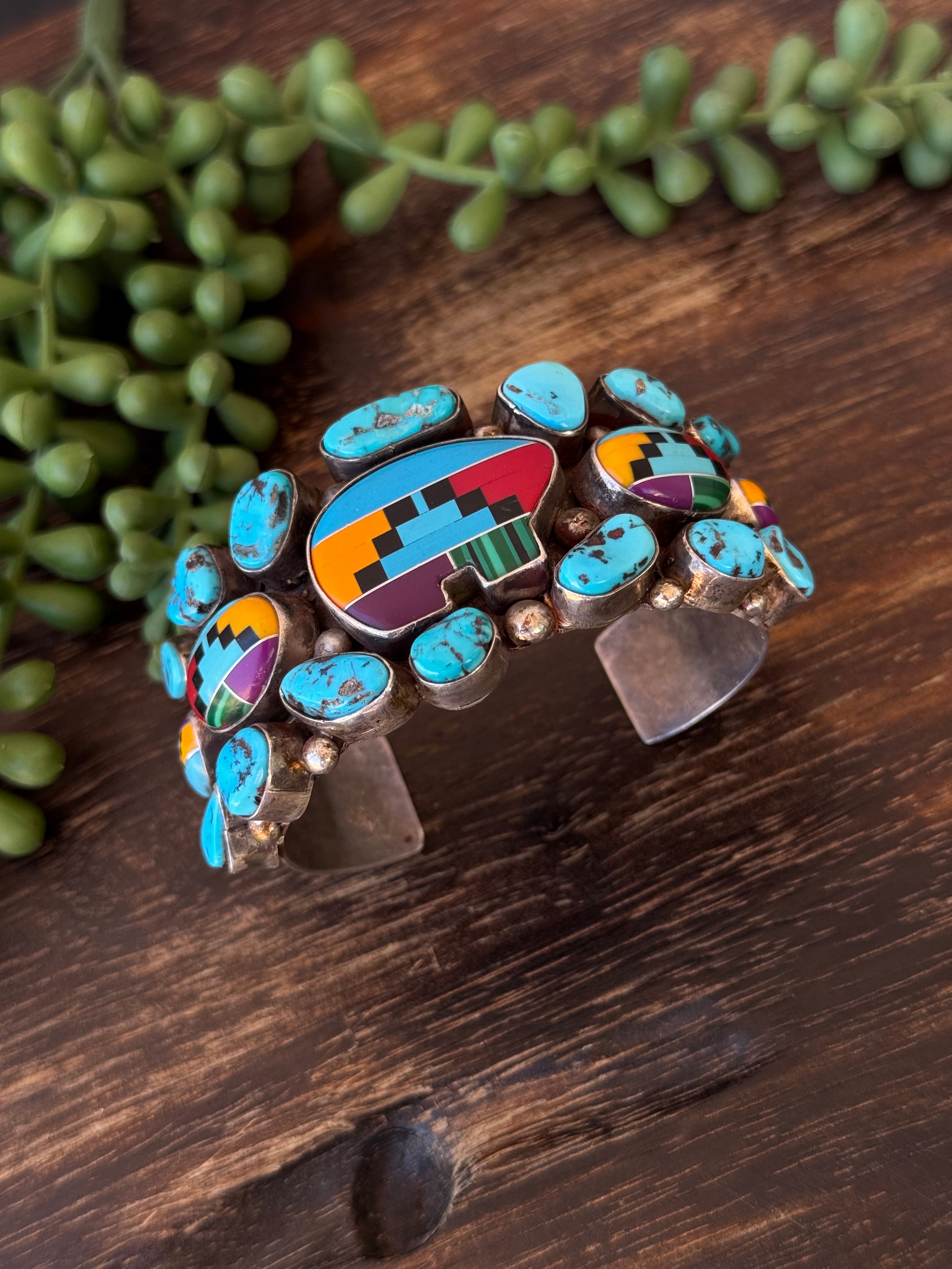 Vintage Jack Bly Multi Stone & Sterling Silver Inlay Cuff Bracelet