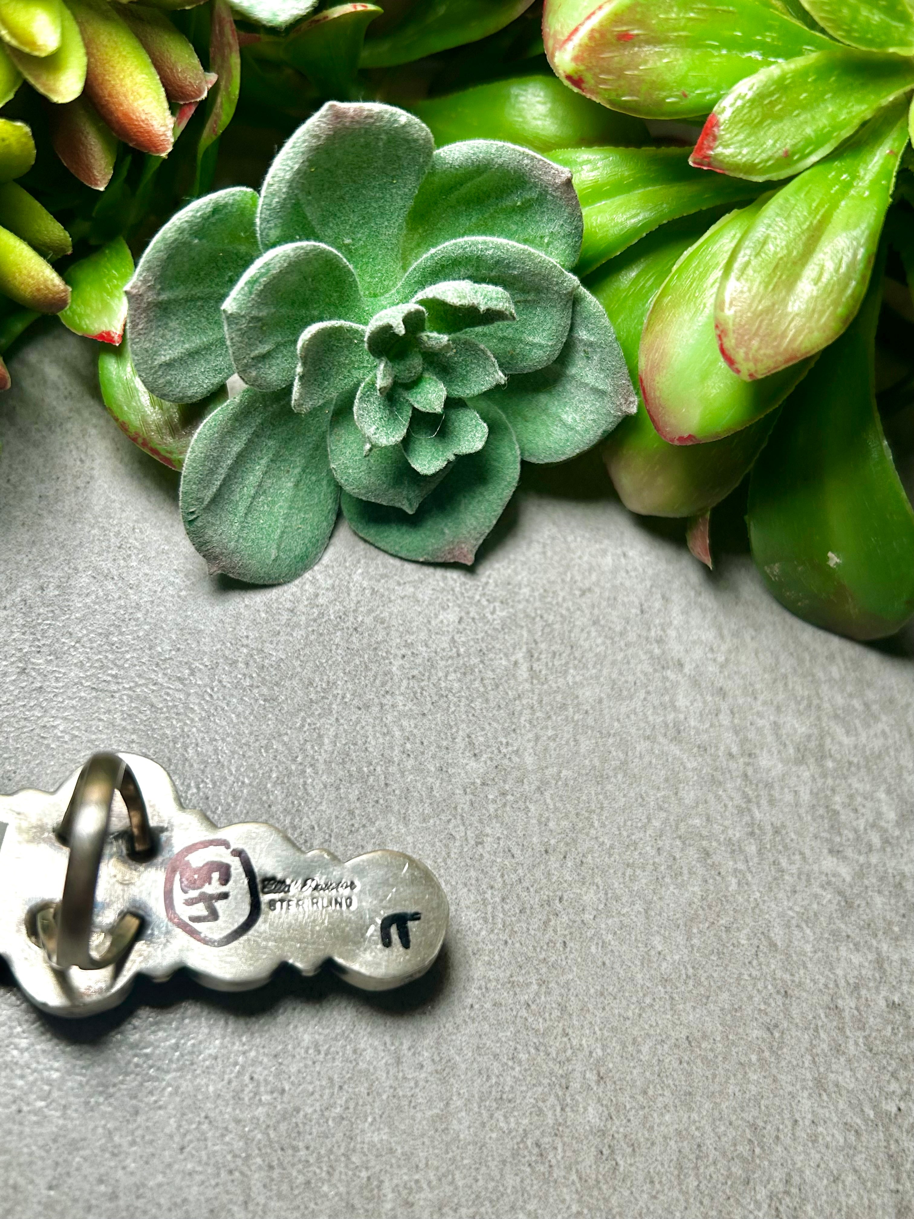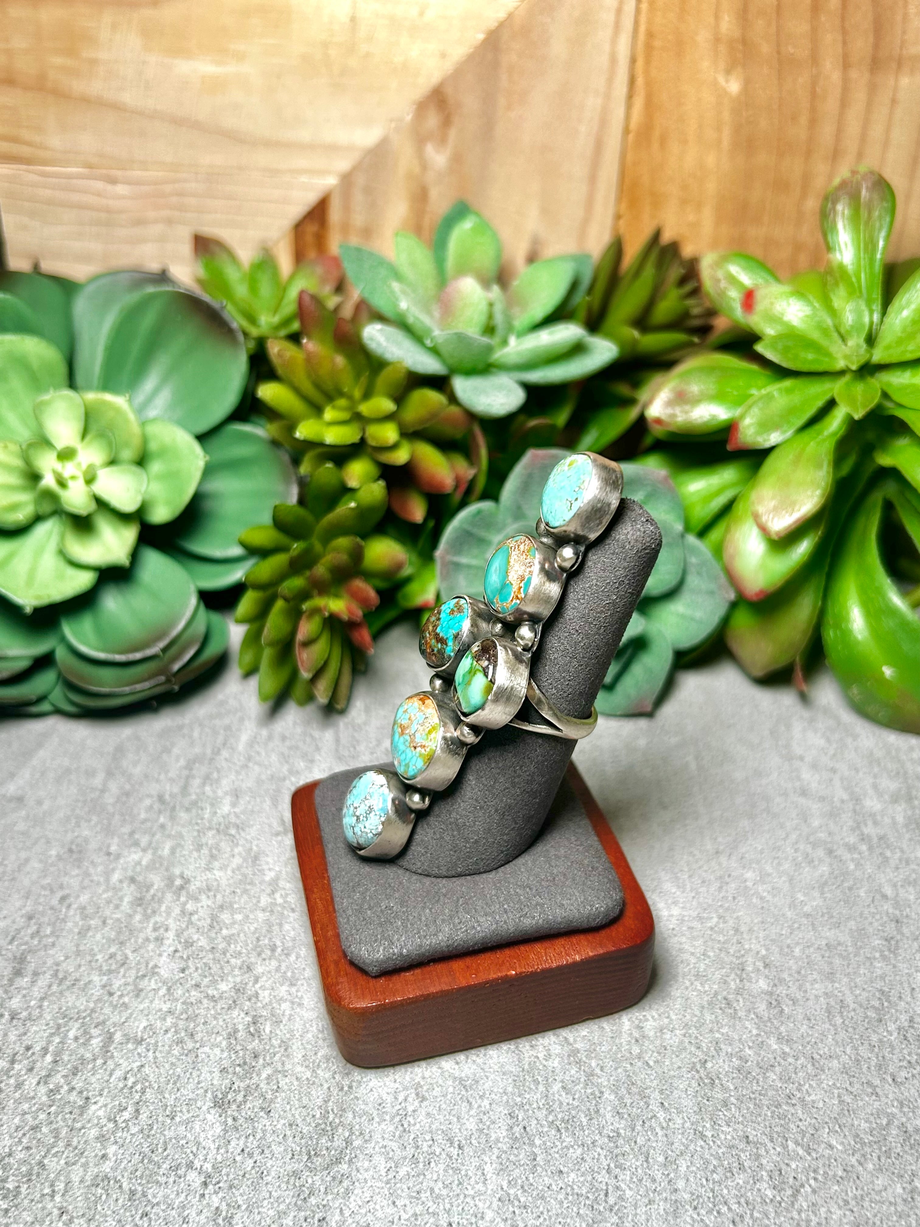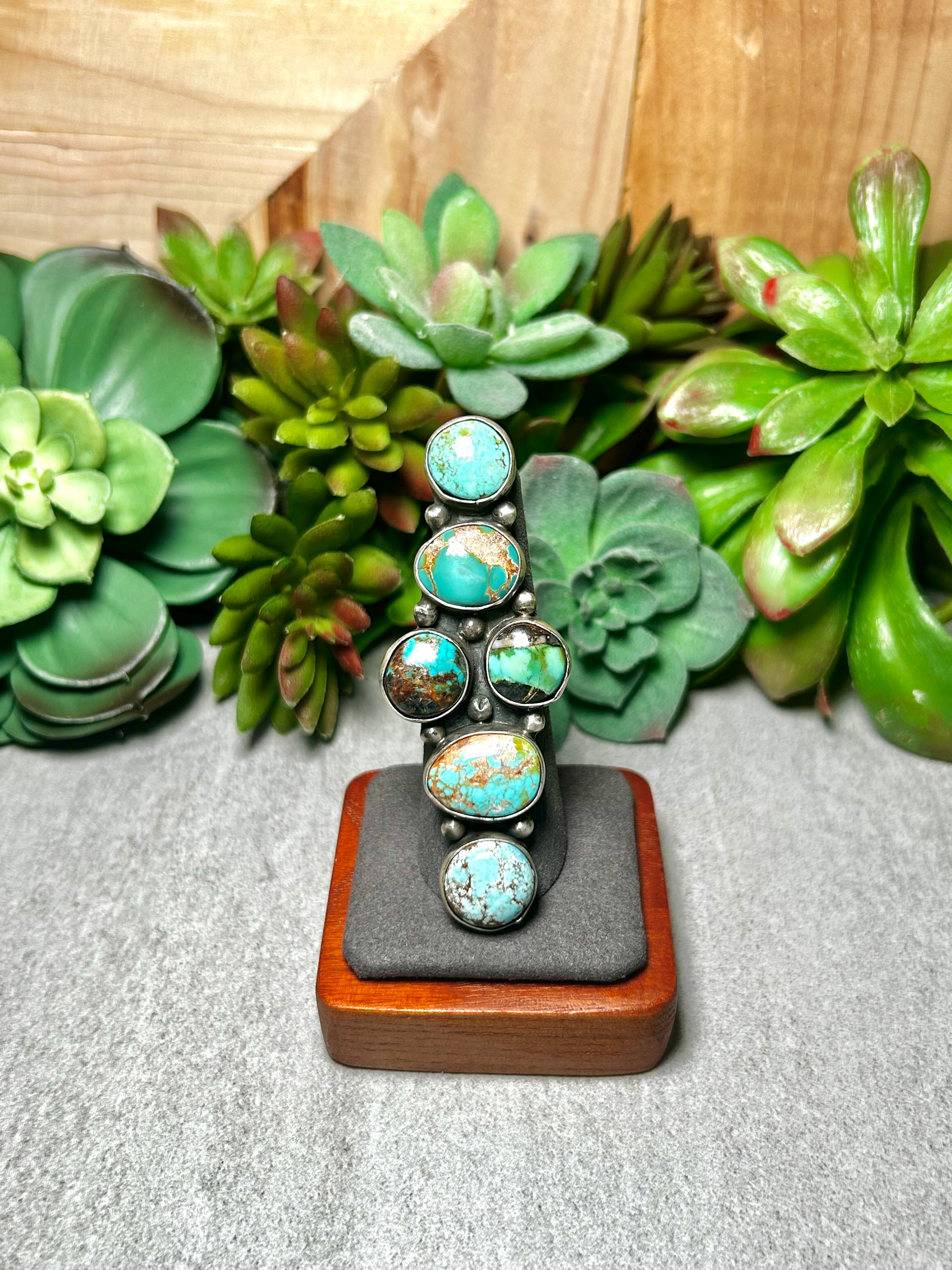 Ella Peter Mixed Turquoise & Sterling Silver Ring Size 7.25. It measures 2 3/4 inches long and 1 1/8 inches wide. Signed by the artist and stamped sterling silver.