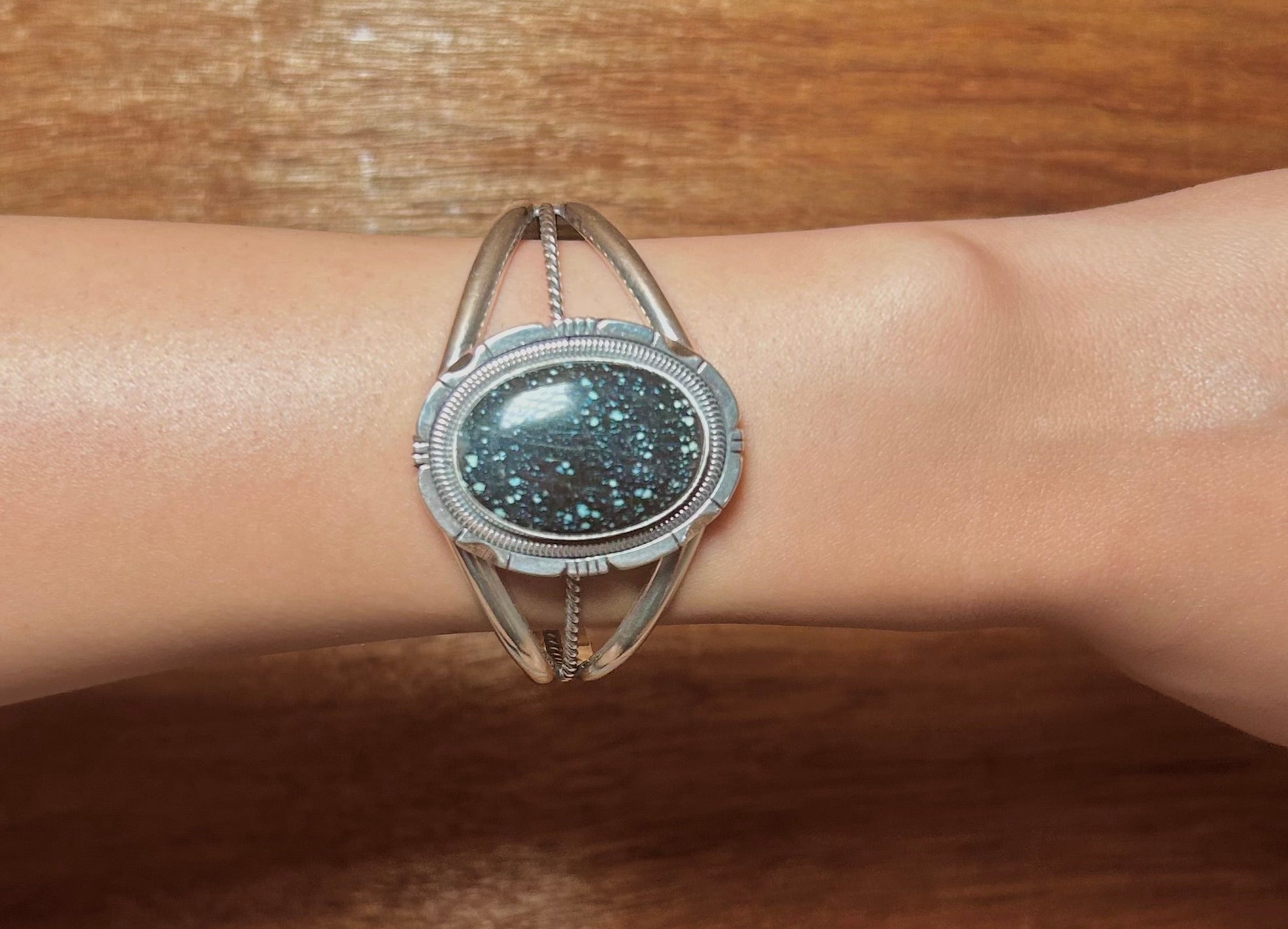 Wydell Billie New Lander Varicsite & Sterling Silver Cuff Bracelet