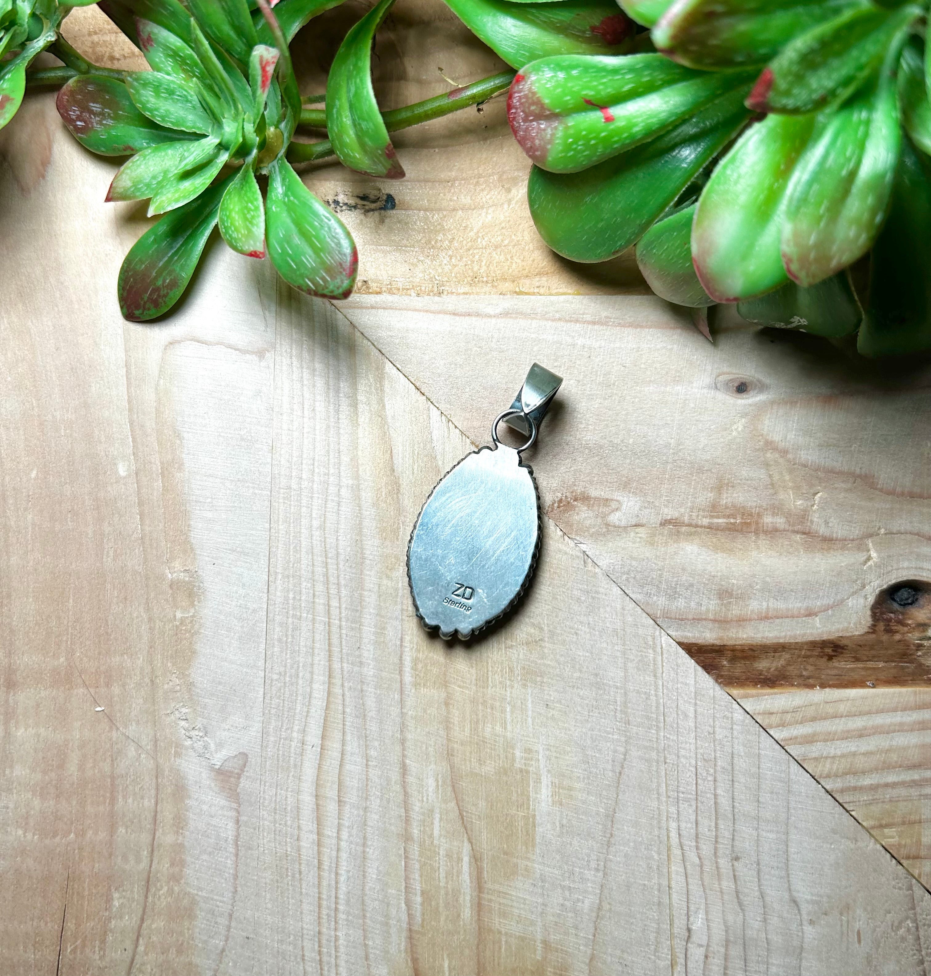 Zachariah David Blue Bird Turquoise Sterling Silver Pendant. It measures 2 1/4 inches long and 7/8 of an inch wide. Pendant Only!! Signed by the artist and stamped sterling silver.
