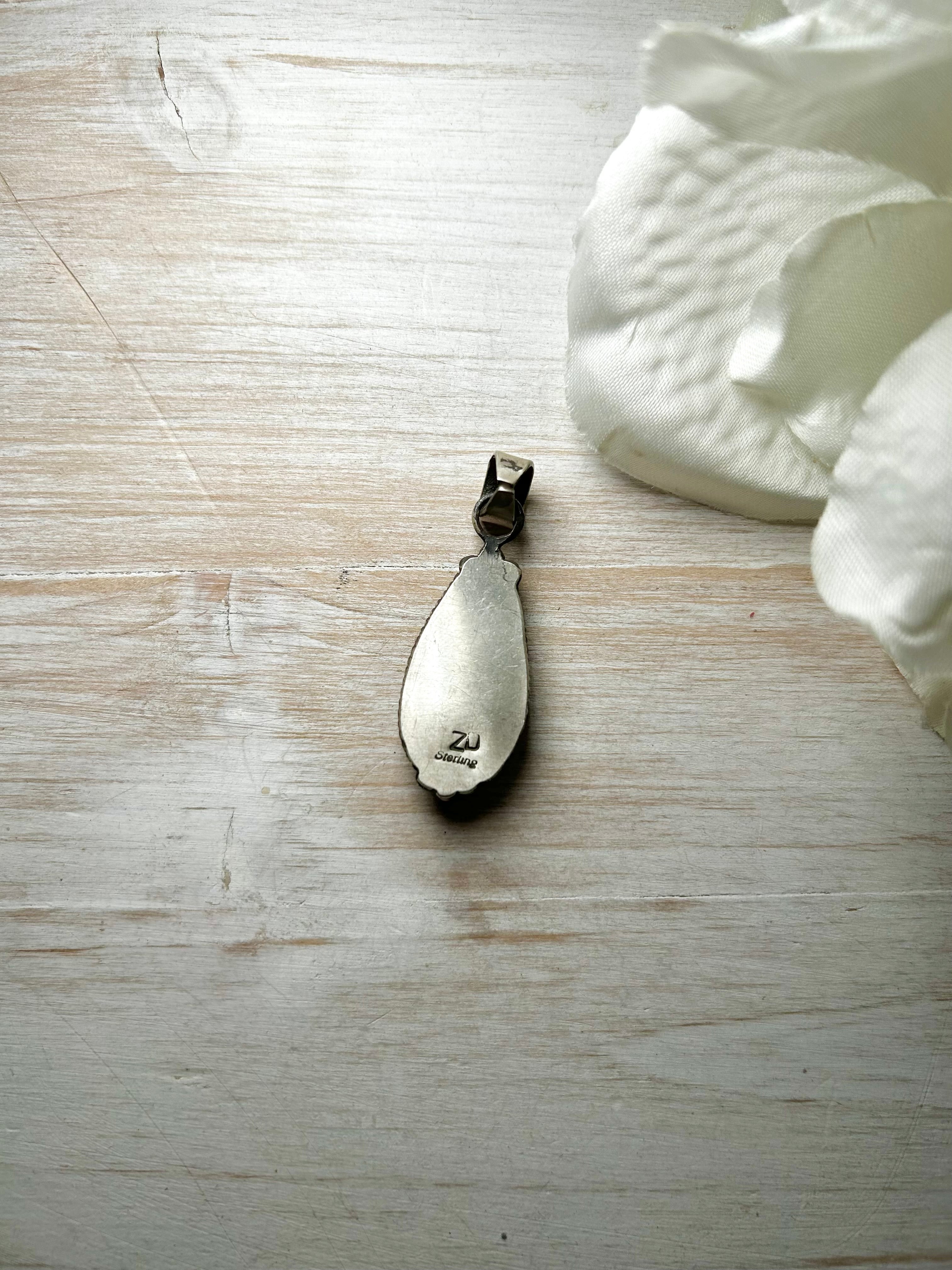 Zachariah David Evans Turquoise & Sterling Silver Pendant. It measures 2 inches long and 5/8 of an inch wide. Signed by the artist and stamped sterling silver. Pendant only!