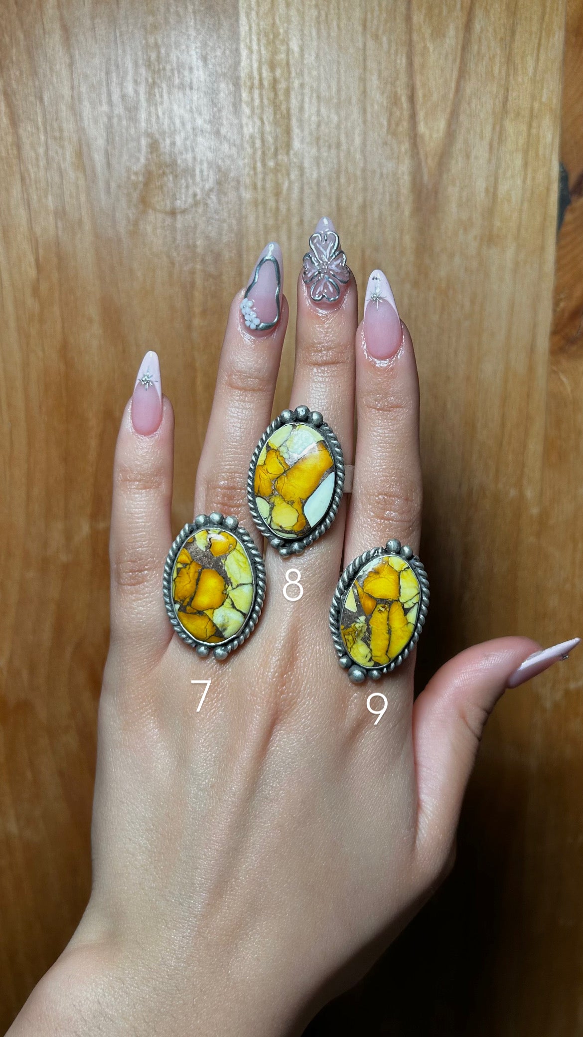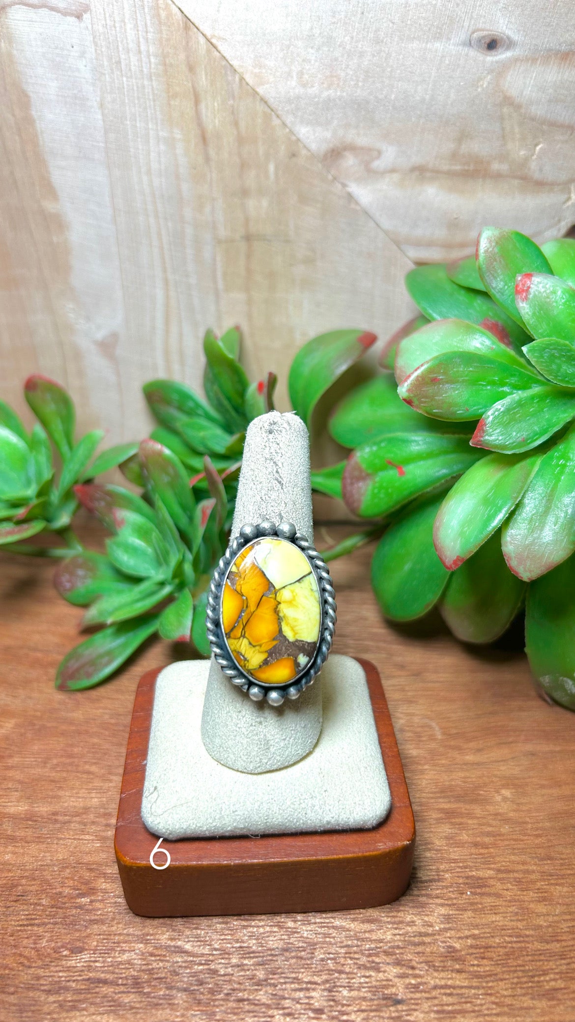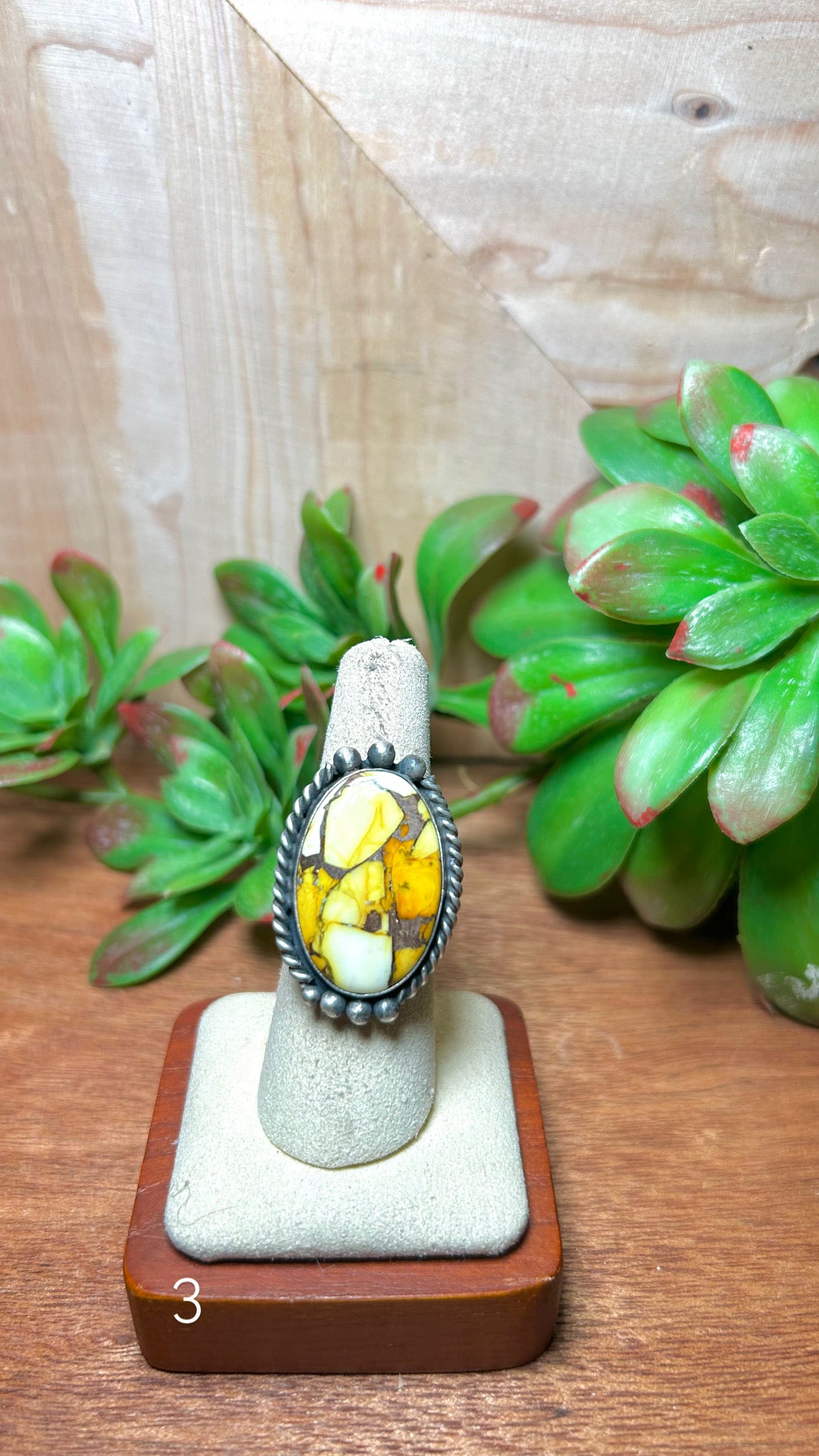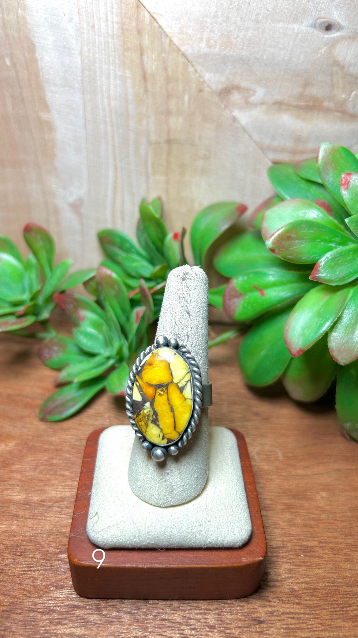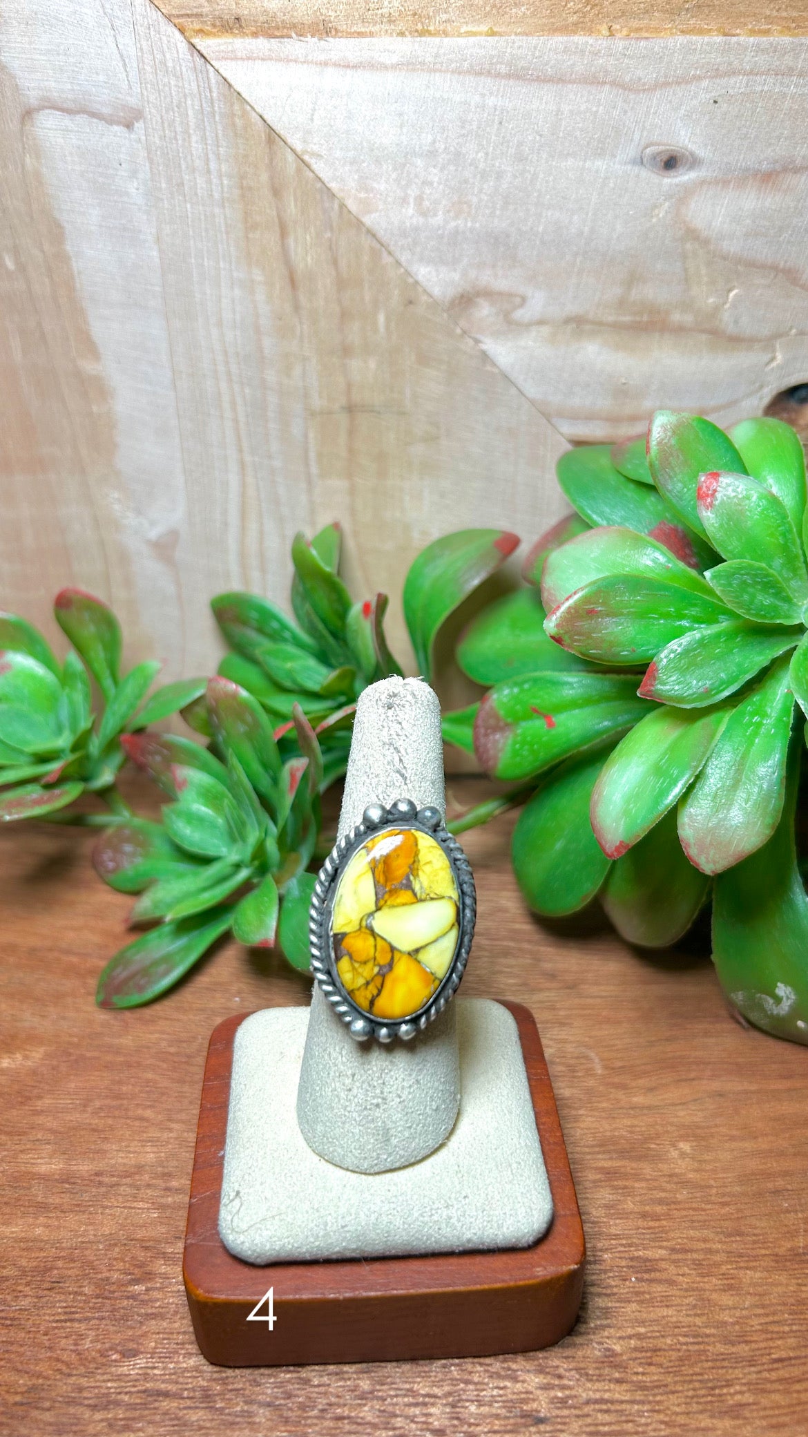 Zachariah David Honey Dahlia & Sterling Silver Adjustable Ring. It measures 1 1/4 inches long and 7/8 of an inch wide. Signed by artist and stamped sterling silver.