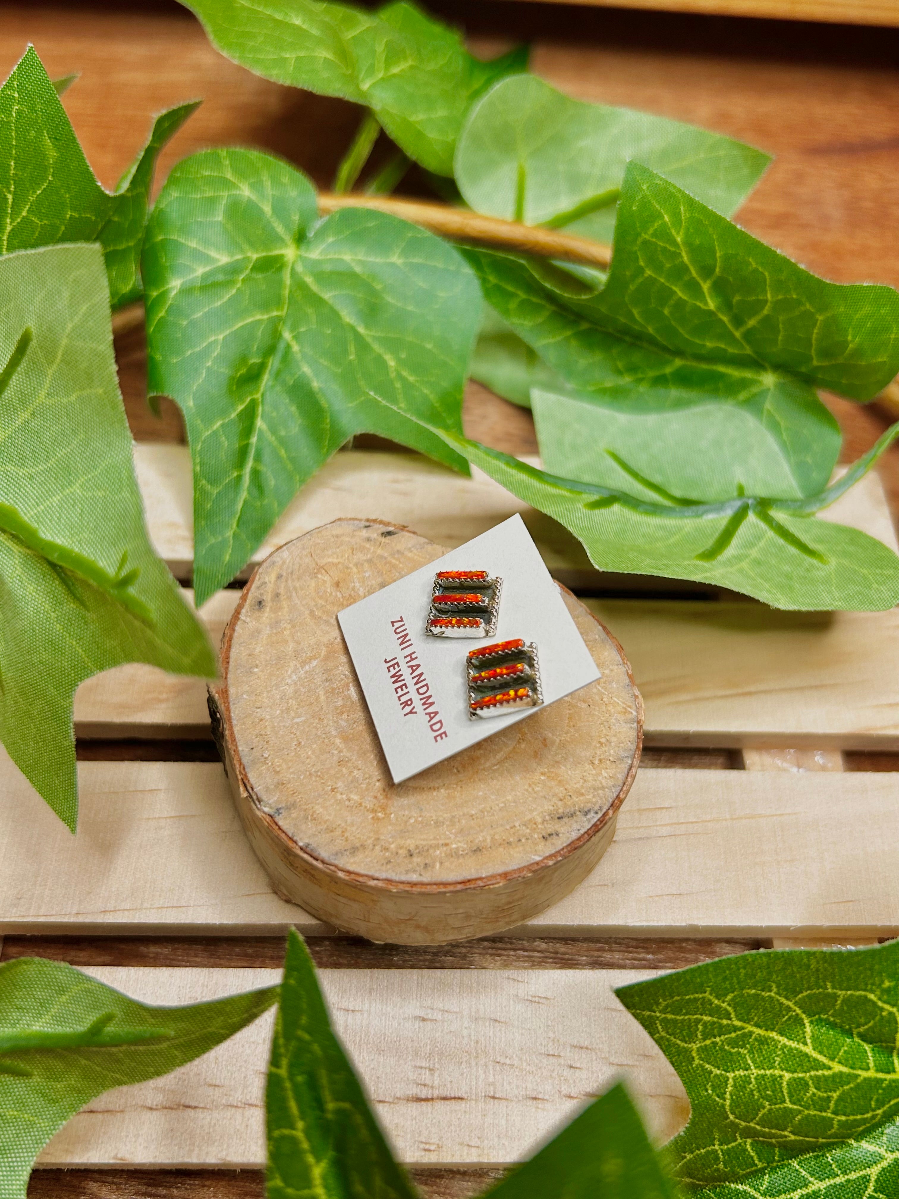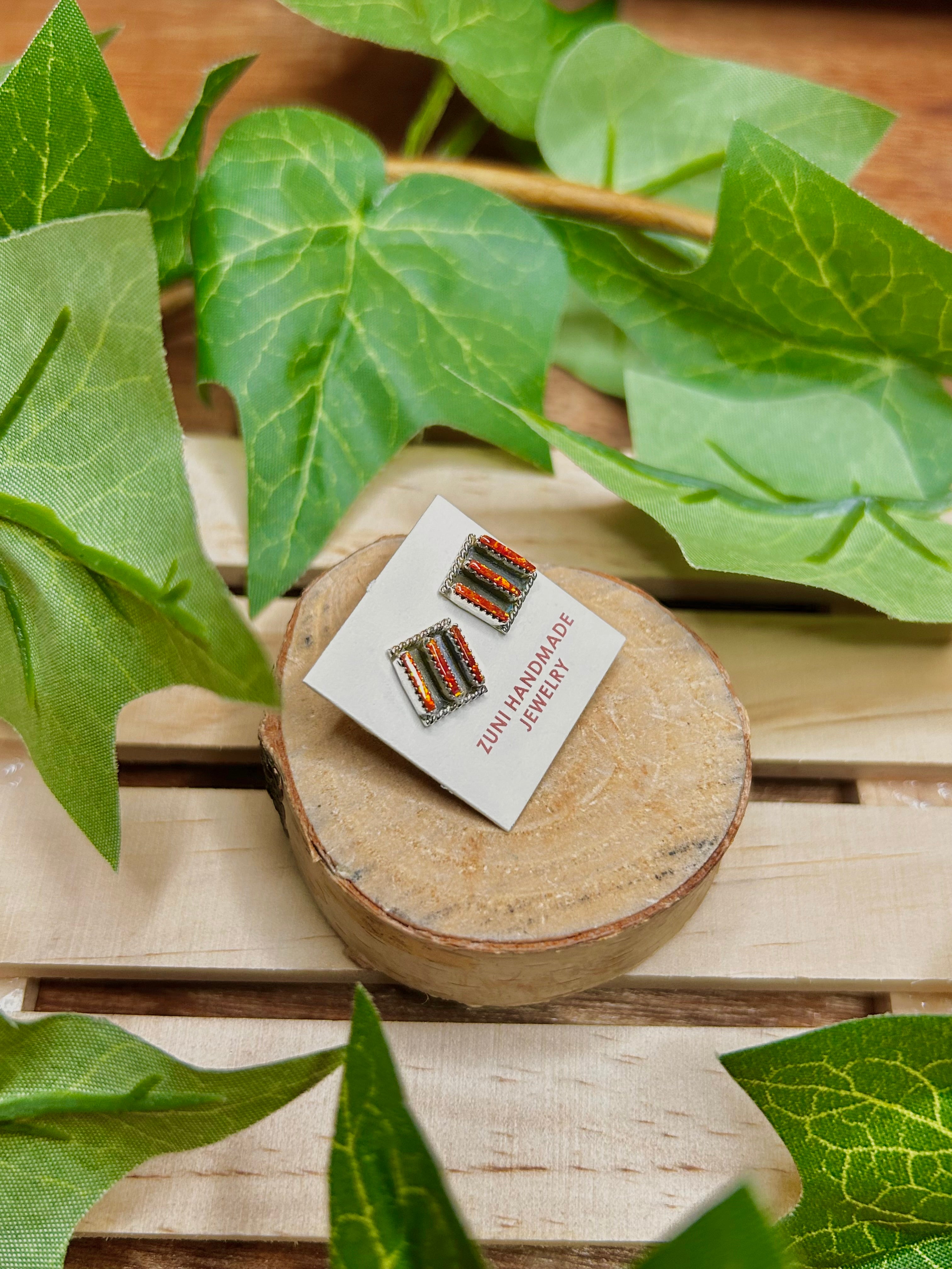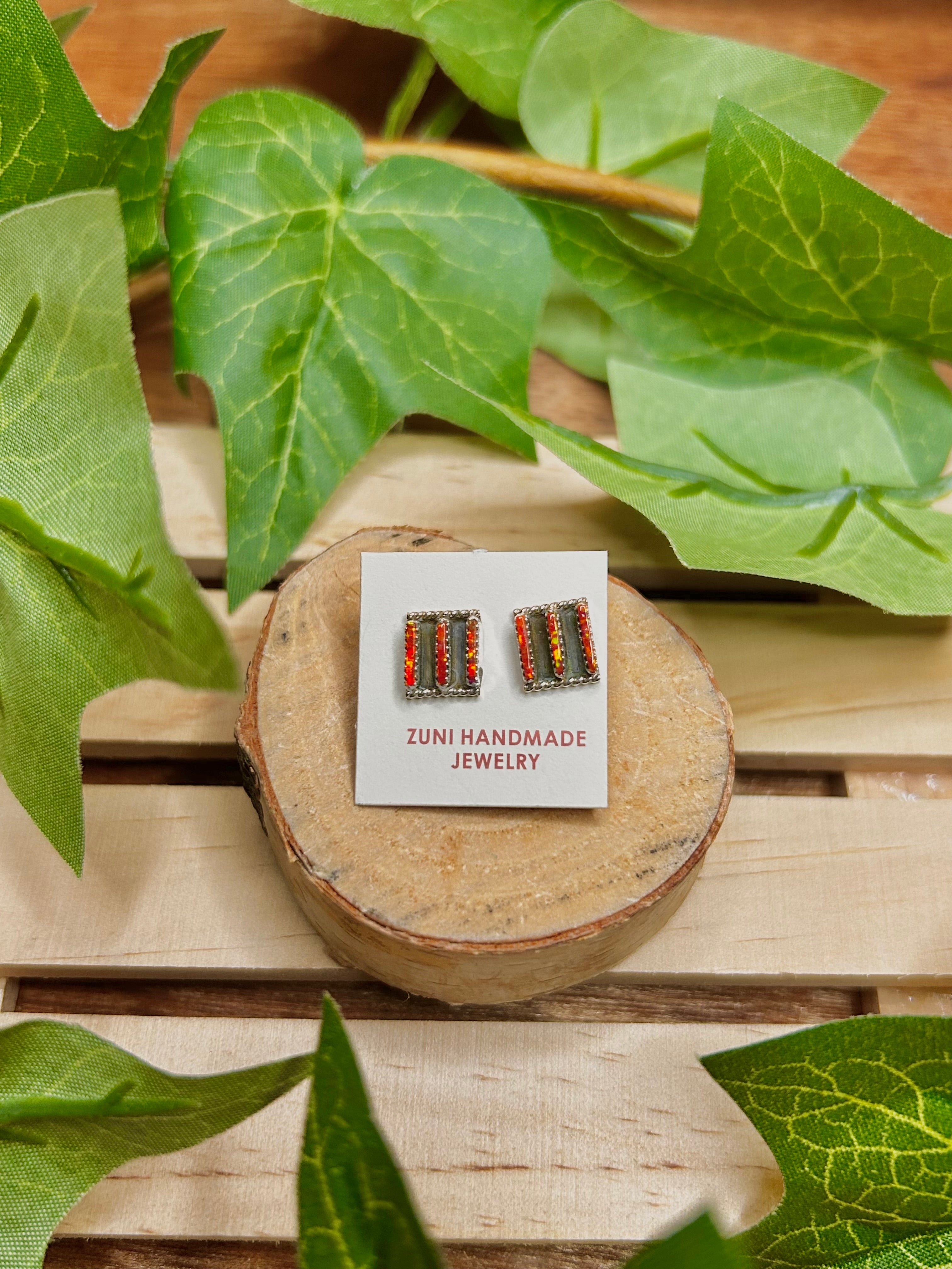 Zuni Handmade Opal & Sterling Silver Post Earrings