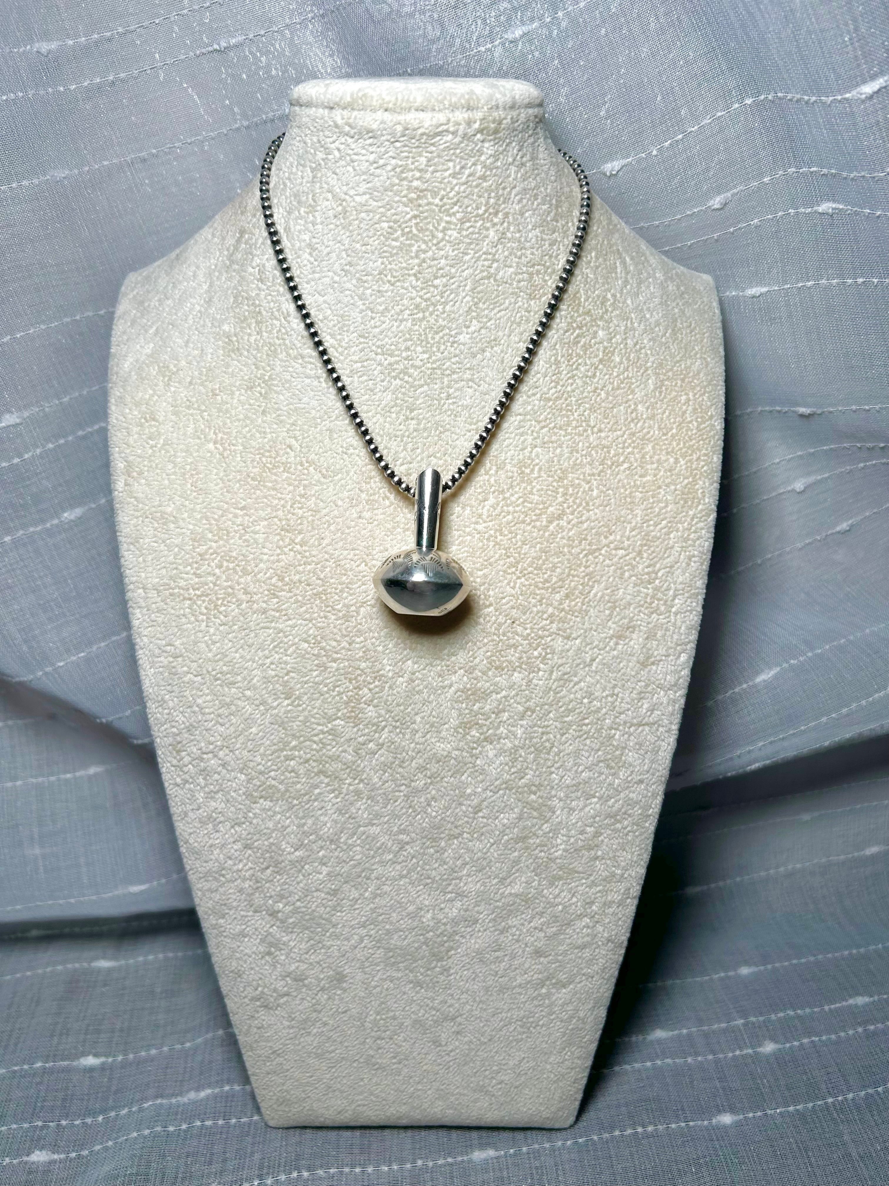 Navajo Made Sterling Silver Pendant. It measures 1 1/2 inches long and 1 1/8 inches wide. Pendant Only! Signed by the artist and stamped sterling silver.