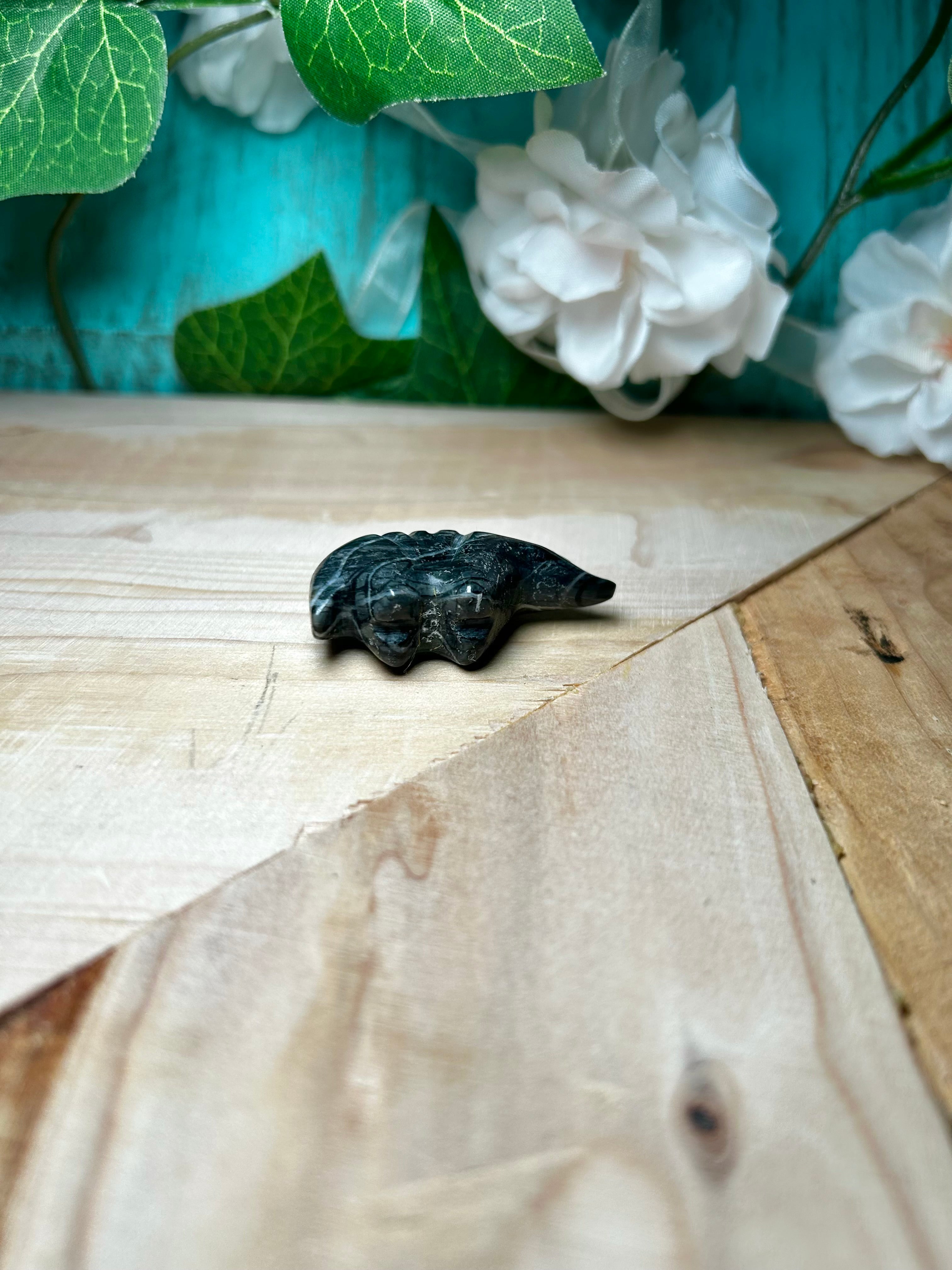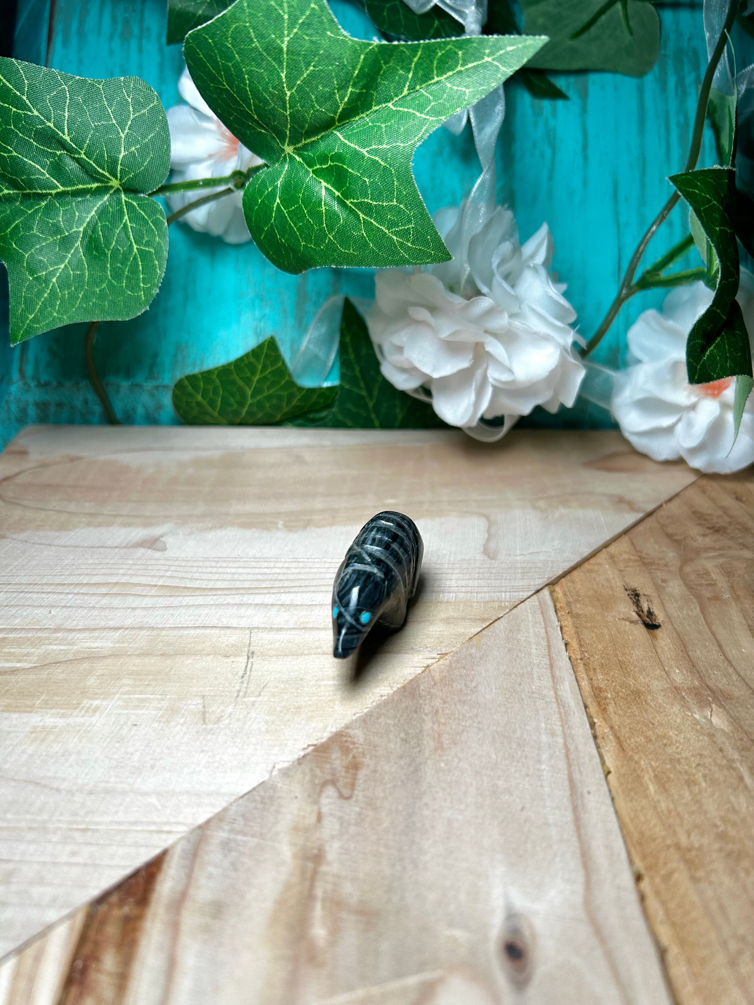 Zuni Made Fetish Stones Figurines. It measure 1 5/8 inches long and 1/2 of an inch wide and has a height that measures 3/4 of an inch. Signed by the artist.