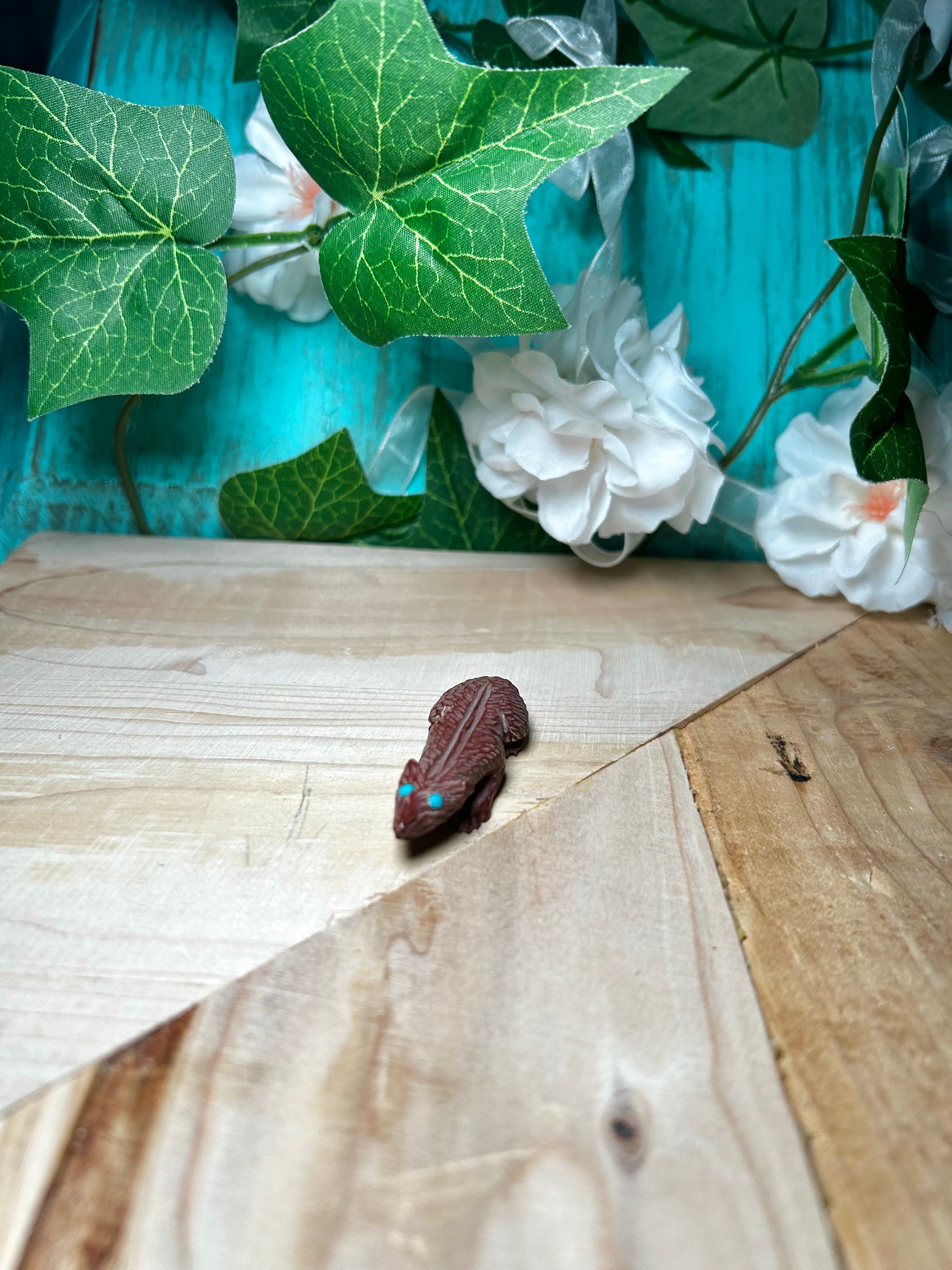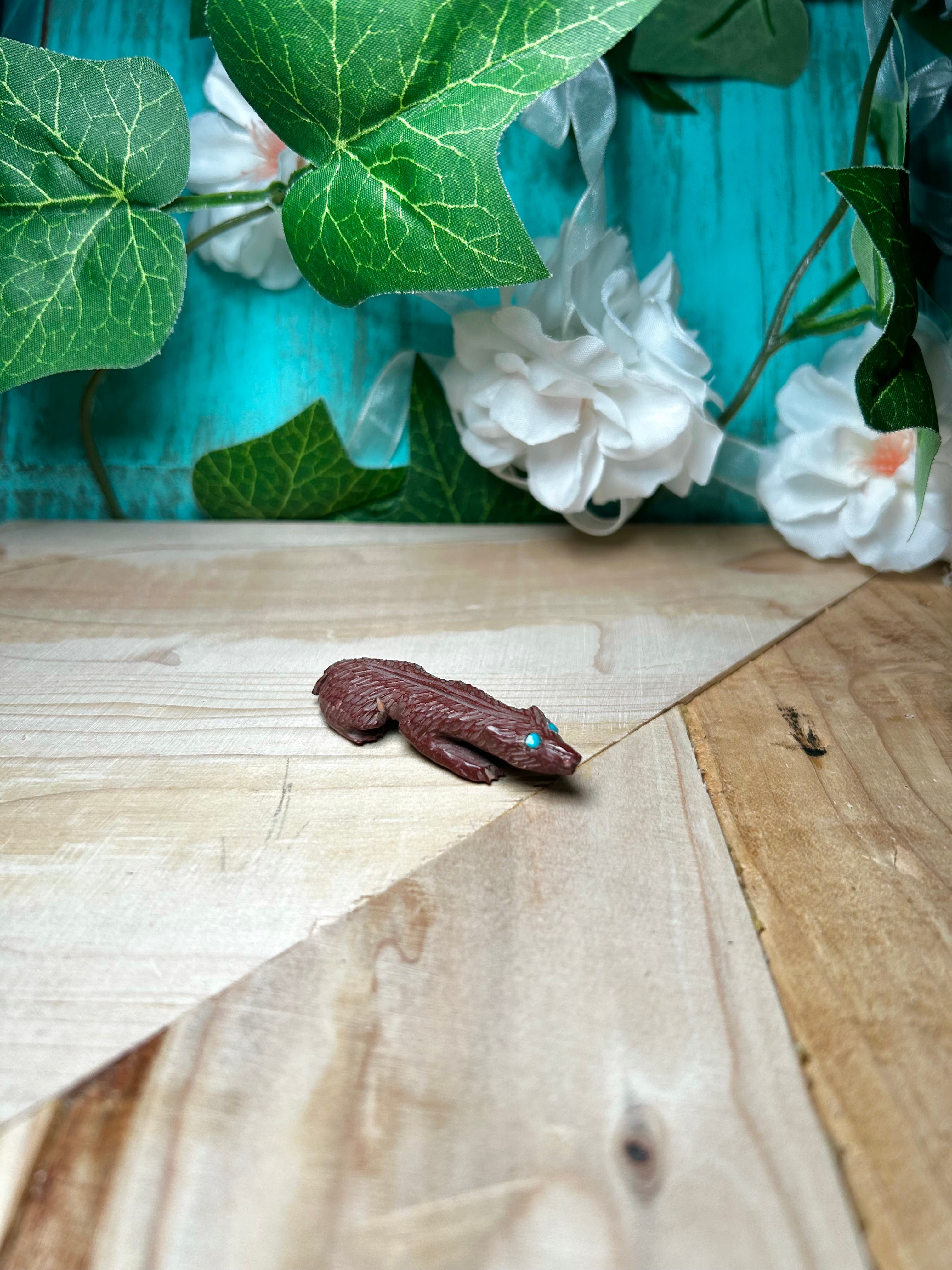 Zuni Made Fetish Stones Figurines. It measure 2 inches long and 5/8 of an inch wide and has a height that measures 3/8 of an inch. Signed by the artist.