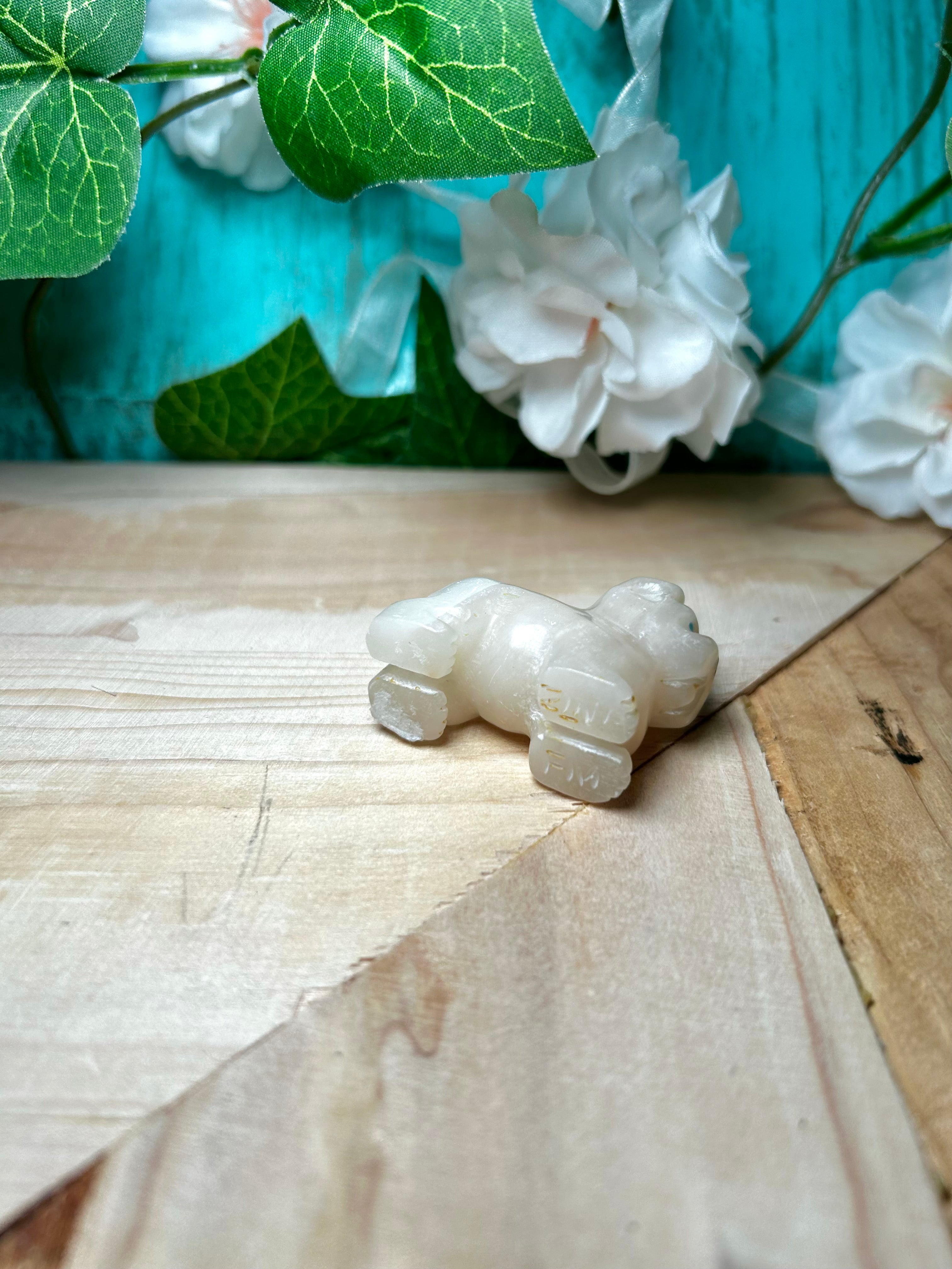 Zuni Made Fetish Stones Figurines. It measure 1 1/2 inches long and 5/8 of an inch wide and has a height that measures 1 1/4 inches. Signed by the artist.
