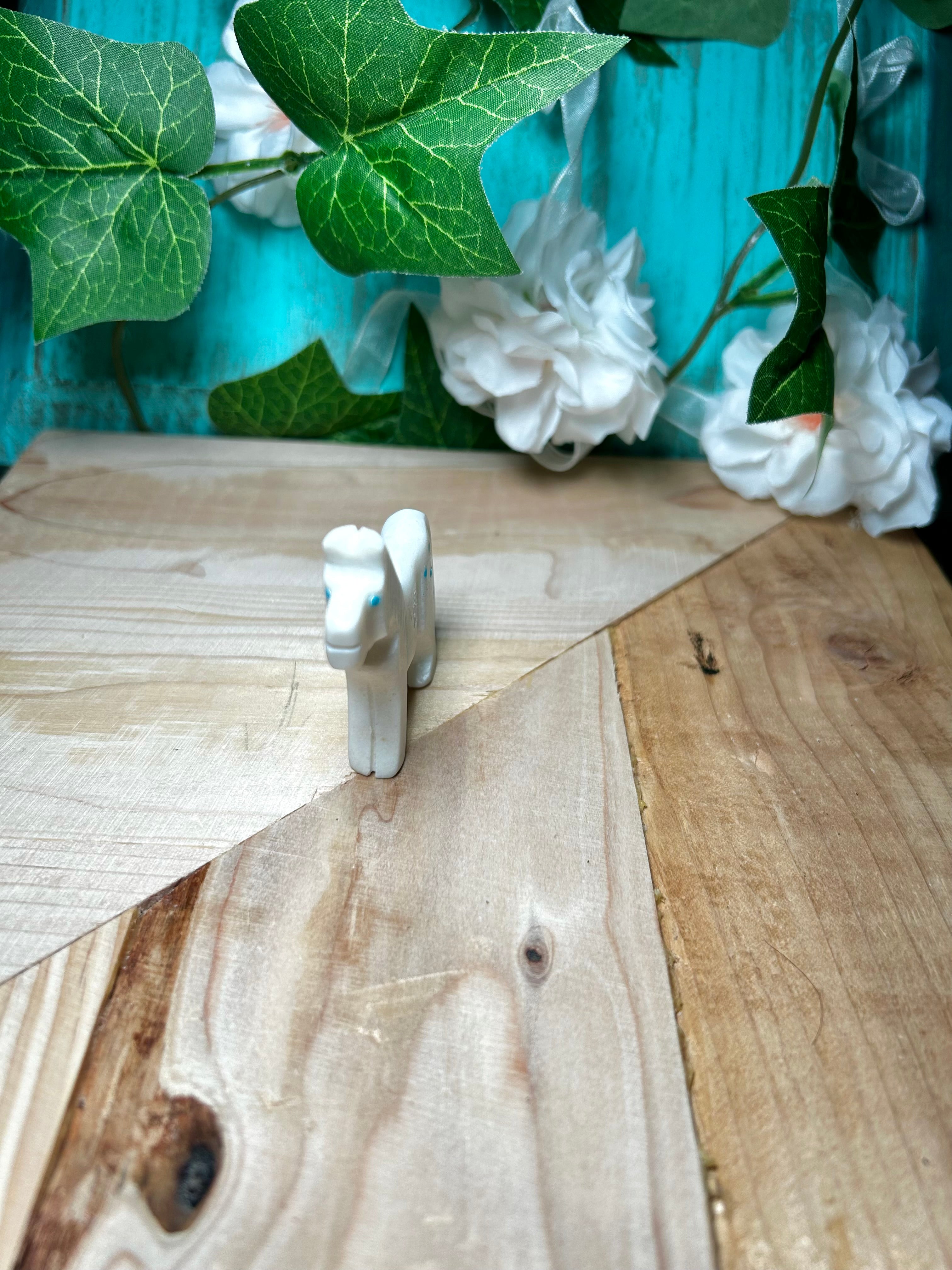 Zuni Made Fetish Stones Figurines. It measure 1 1/2 inches long and 3/8 of an inch wide and has a height that measures 1 7/8 inches. Signed by the artist.