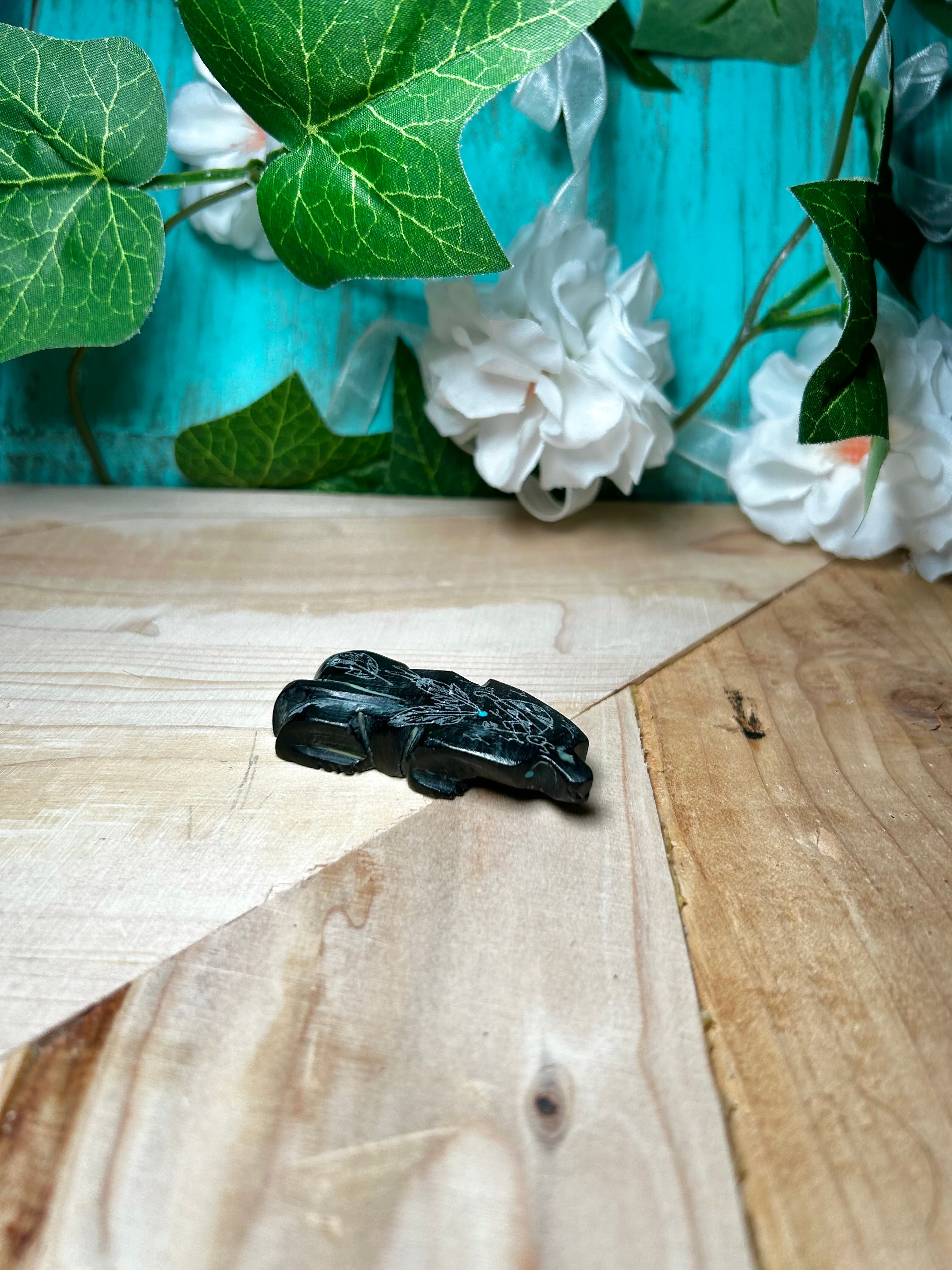 Zuni Made Fetish Stones Figurines. It measure 2 1/8 inches long and 7/8 of an inch wide and has a height that measures 3/8 of an inch. Signed by the artist.