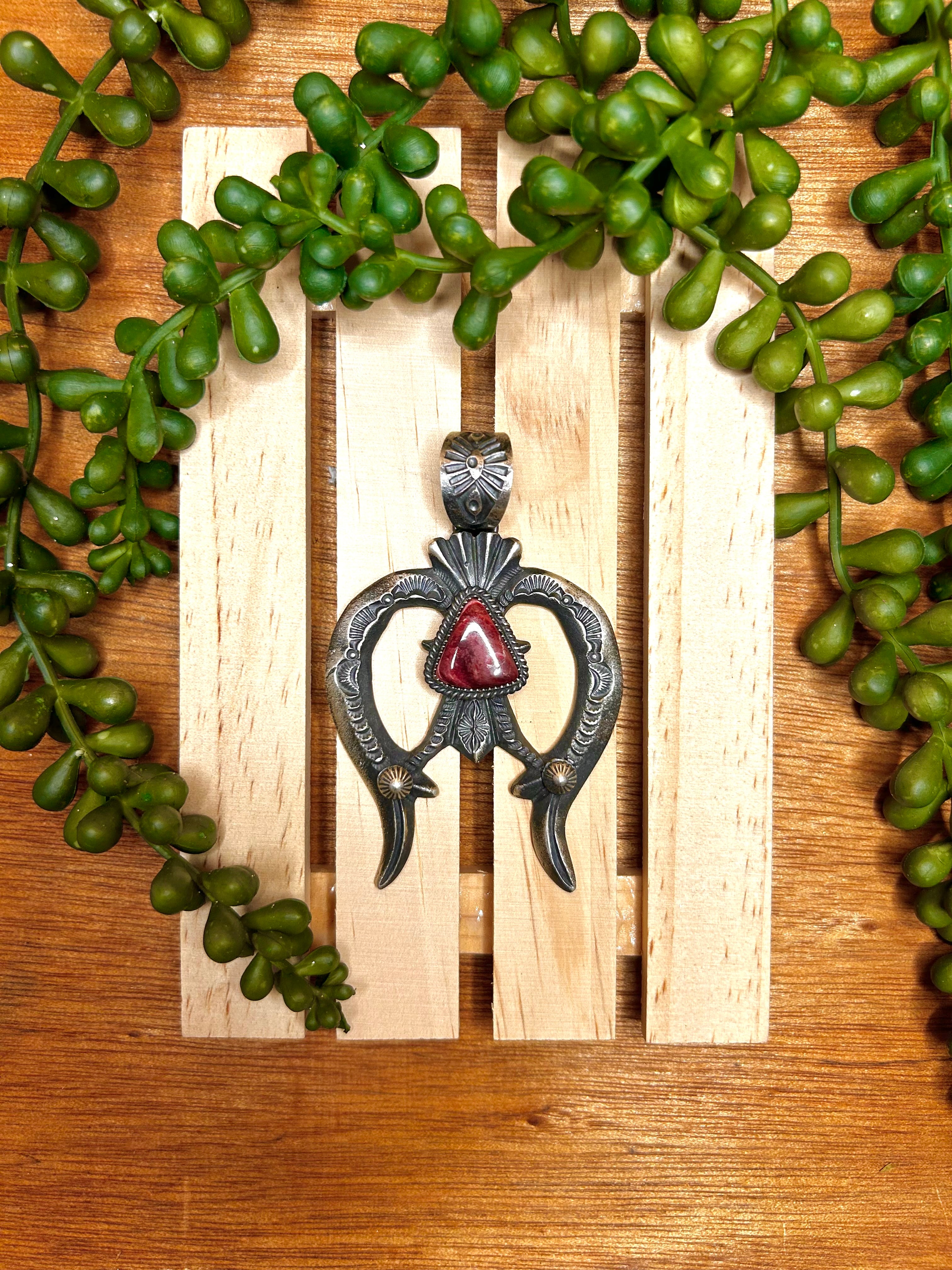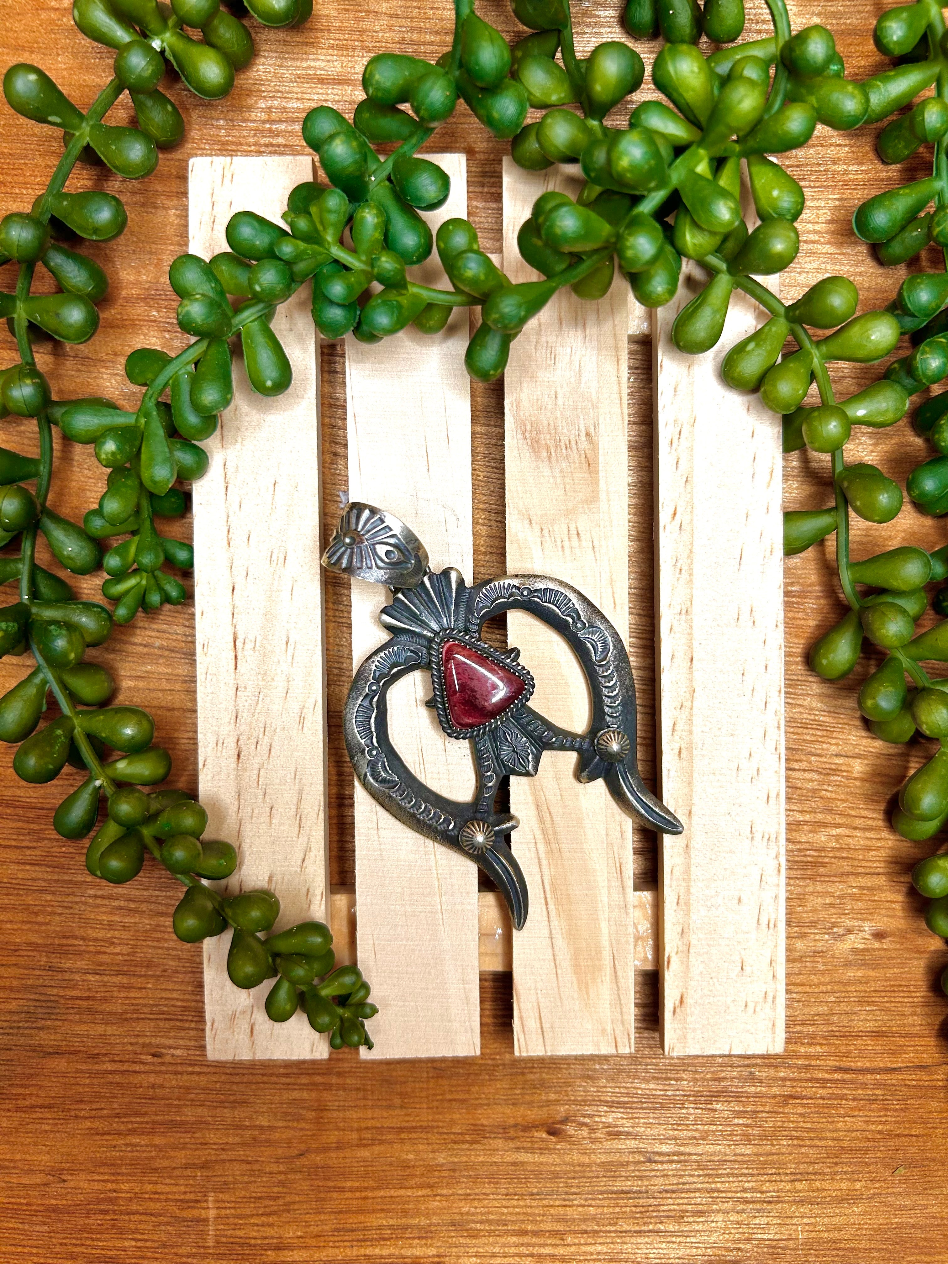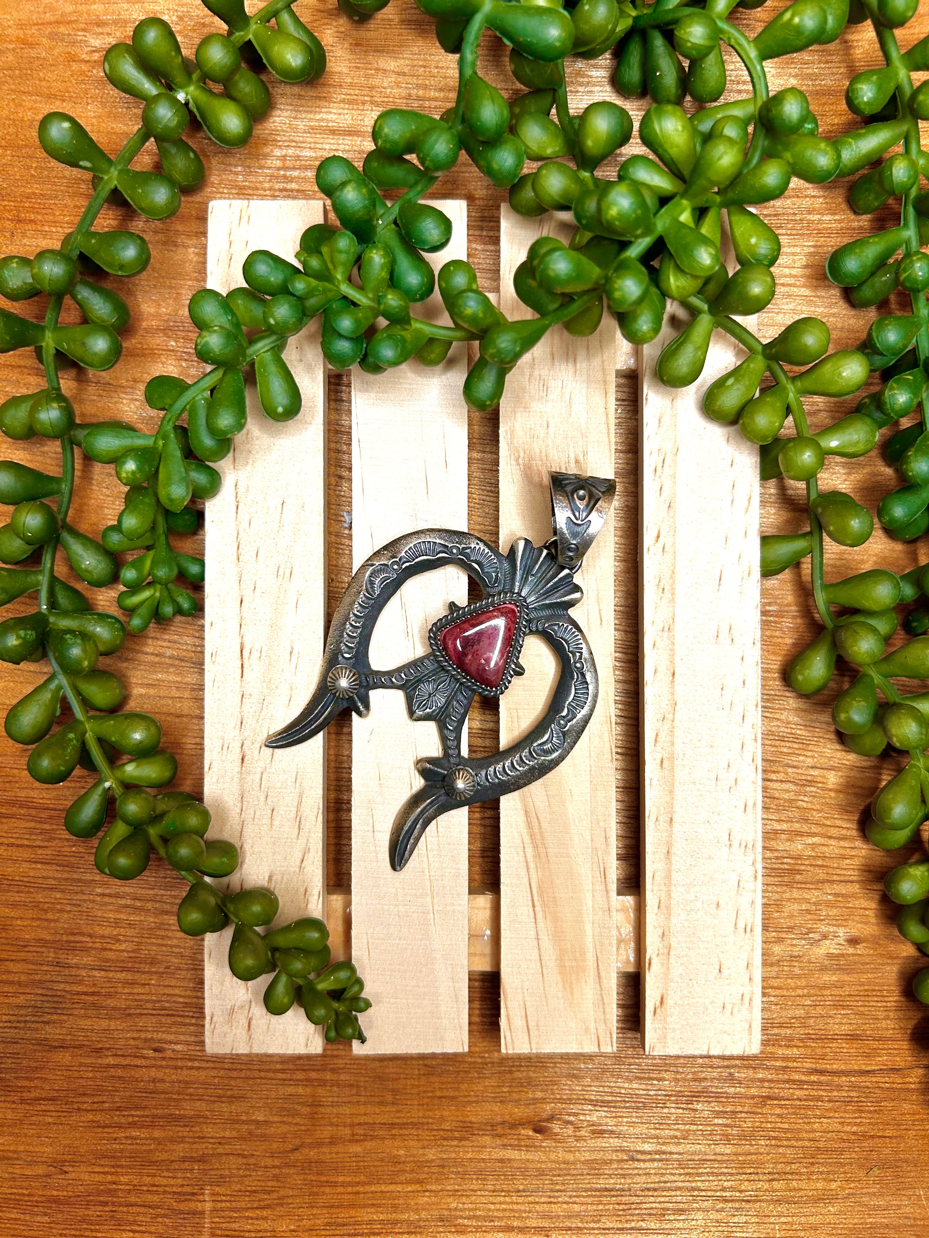 Kevin Billah Purple Spiny & Sterling Silver Naja Pendant. It measures 3 inches long and 2 inches wide. Pendant Only. Signed by the artist and stamped sterling silver.