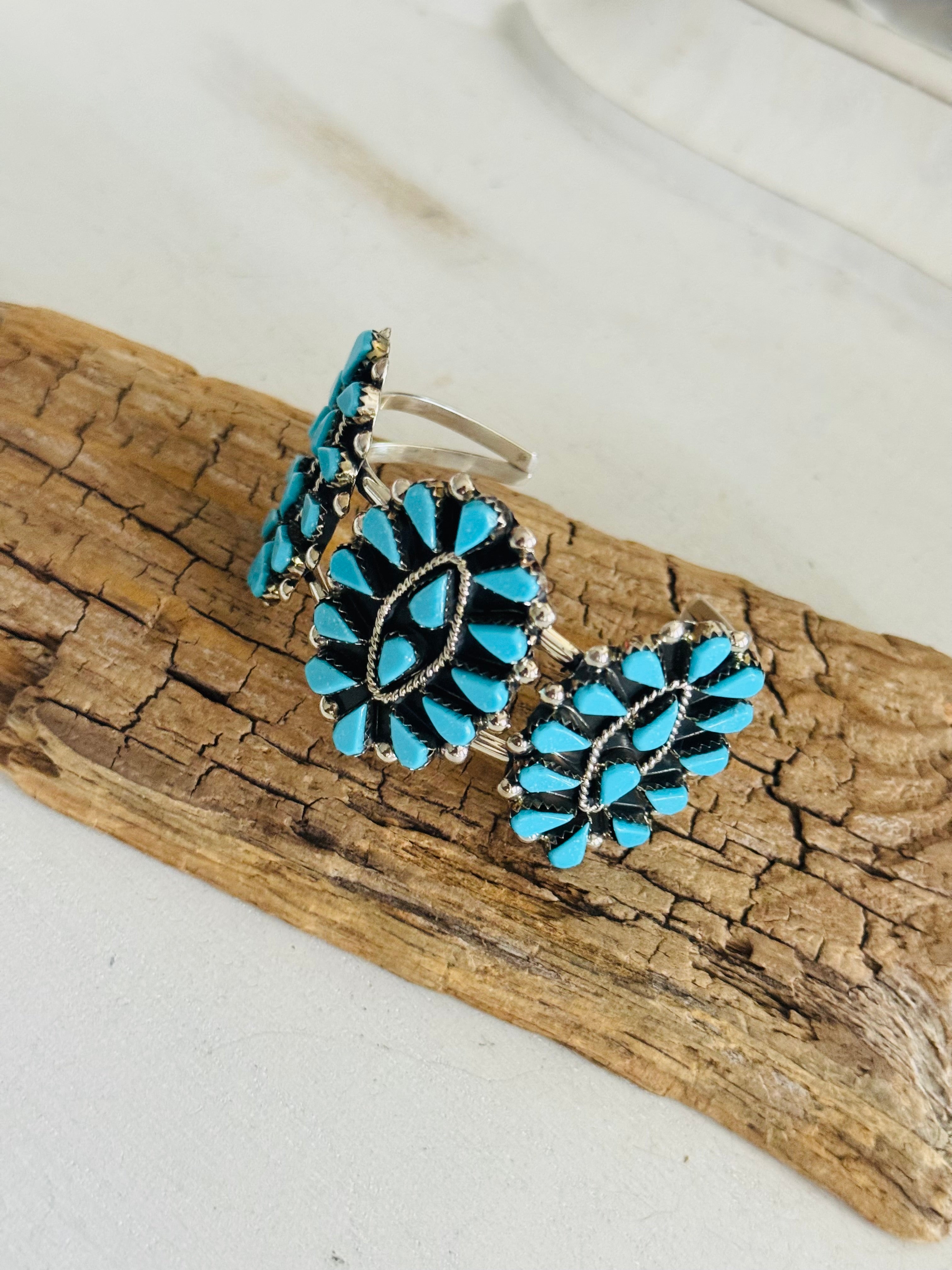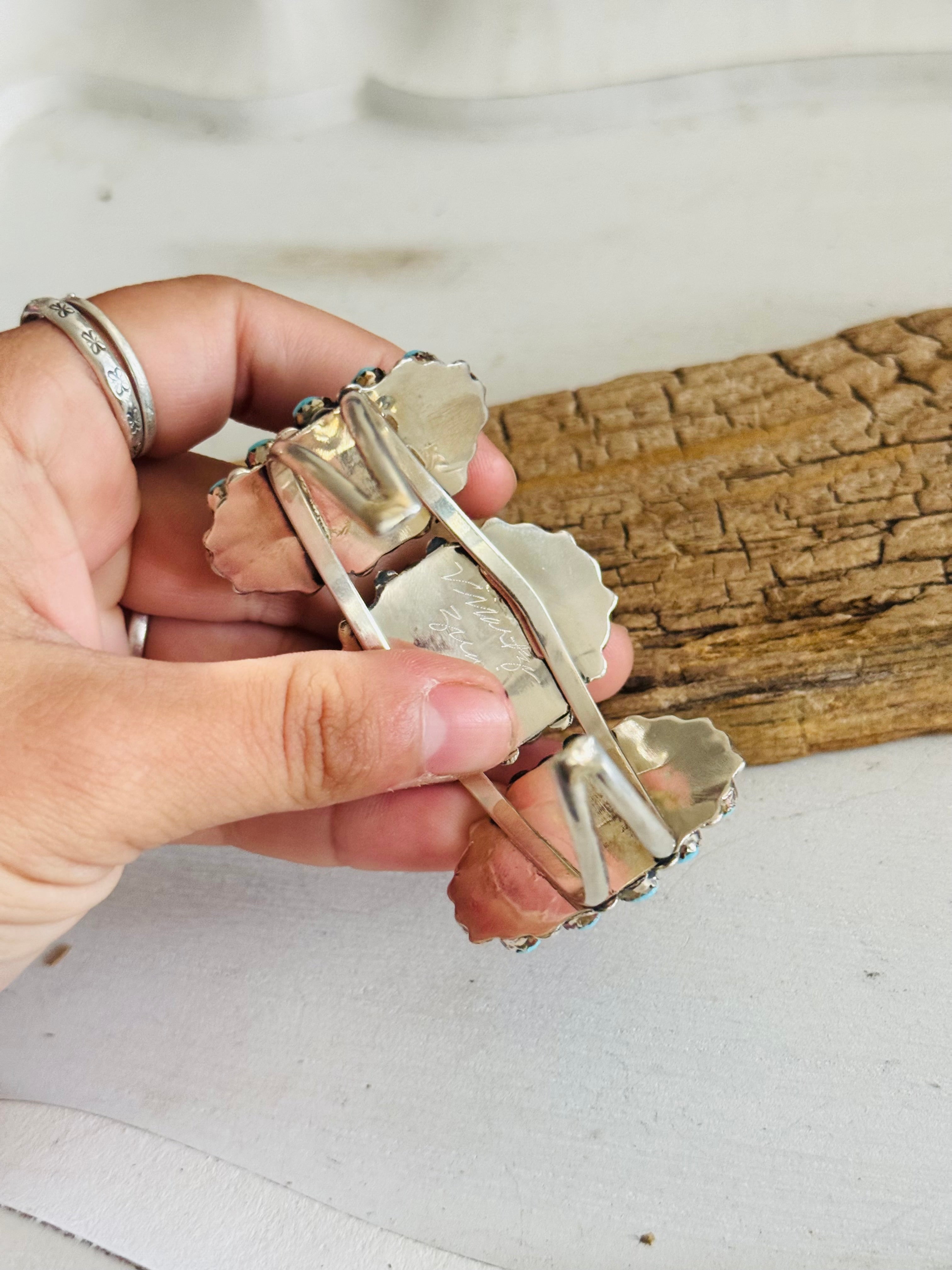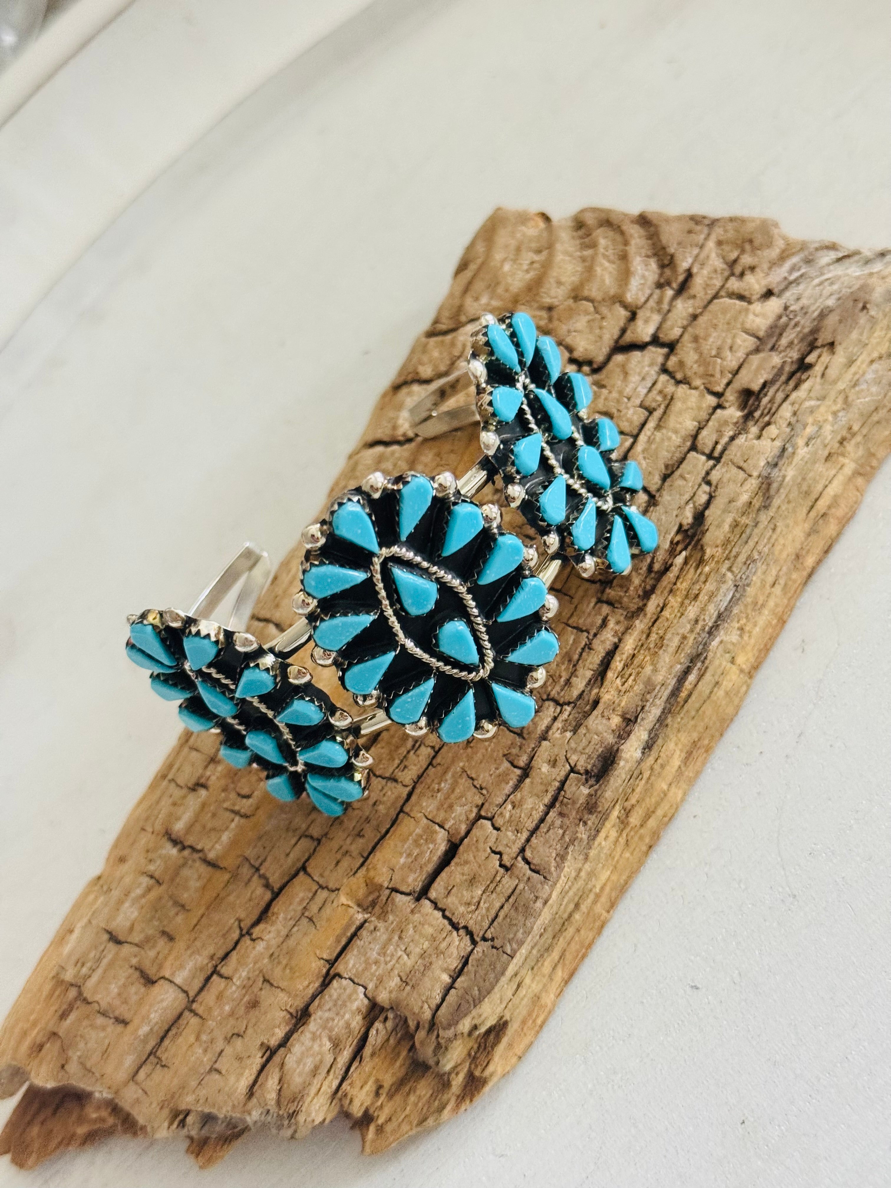 Zuni Made Kingman Turquoise & Sterling Silver Petite Cluster Cuff Bracelet