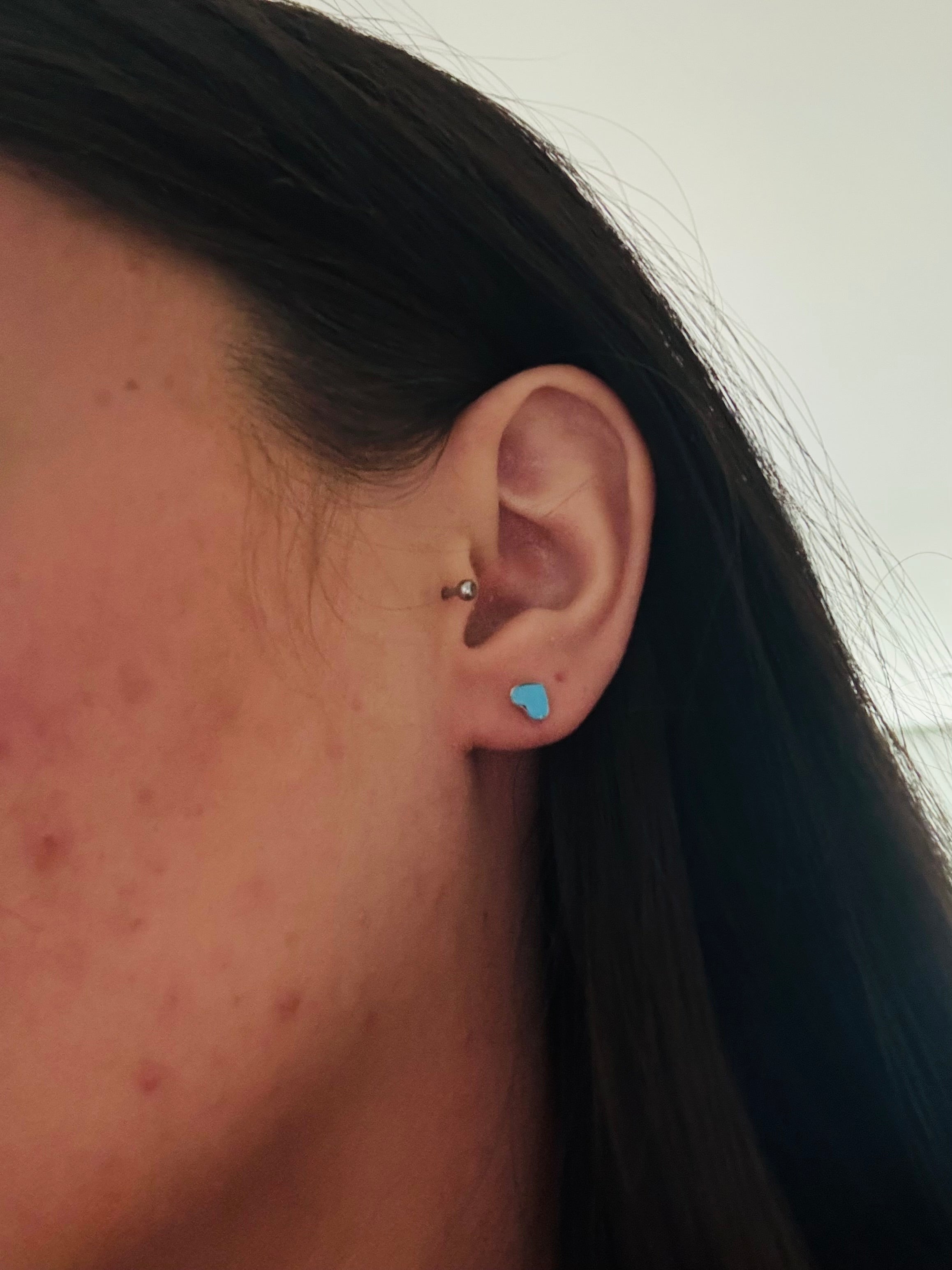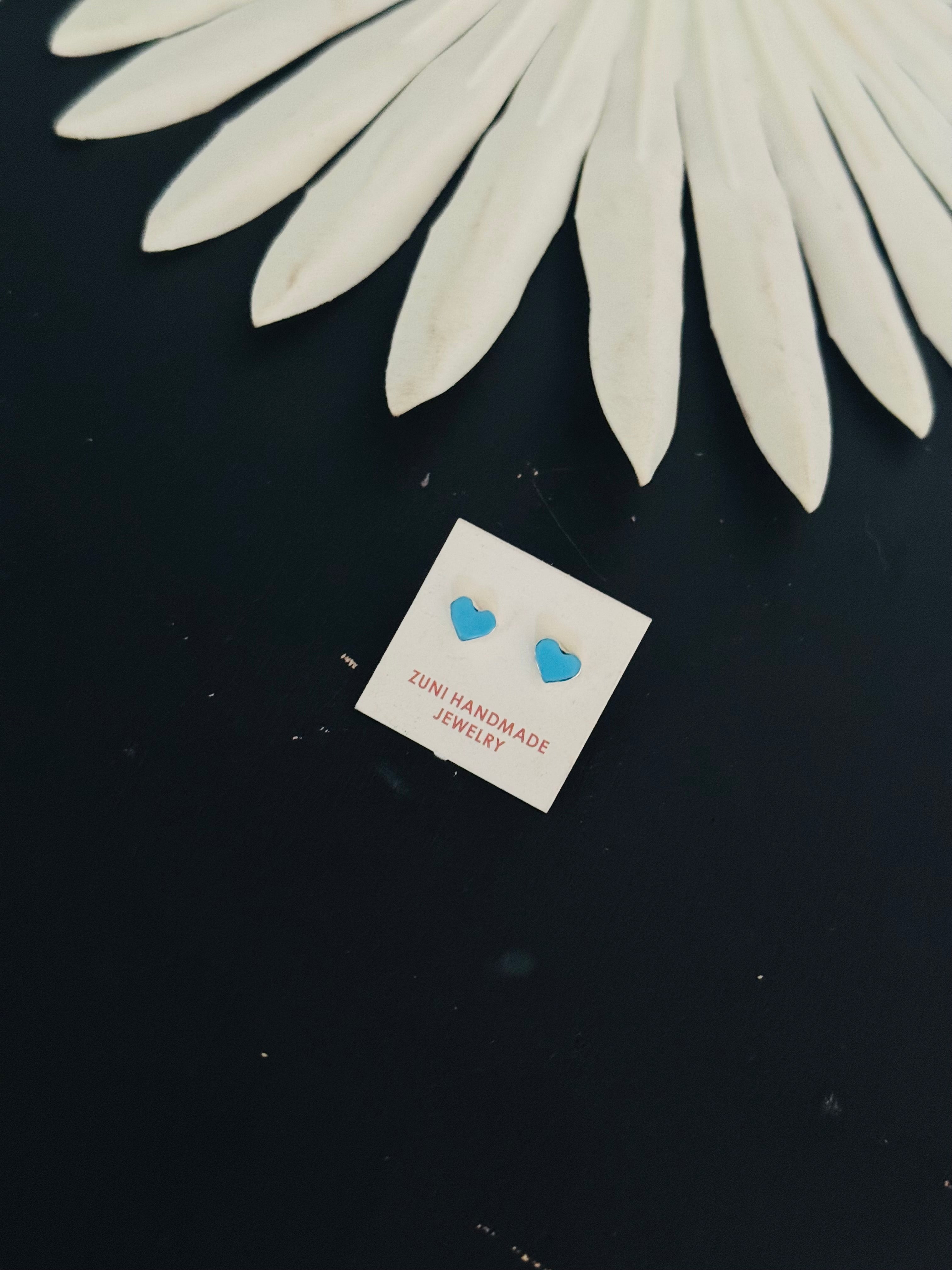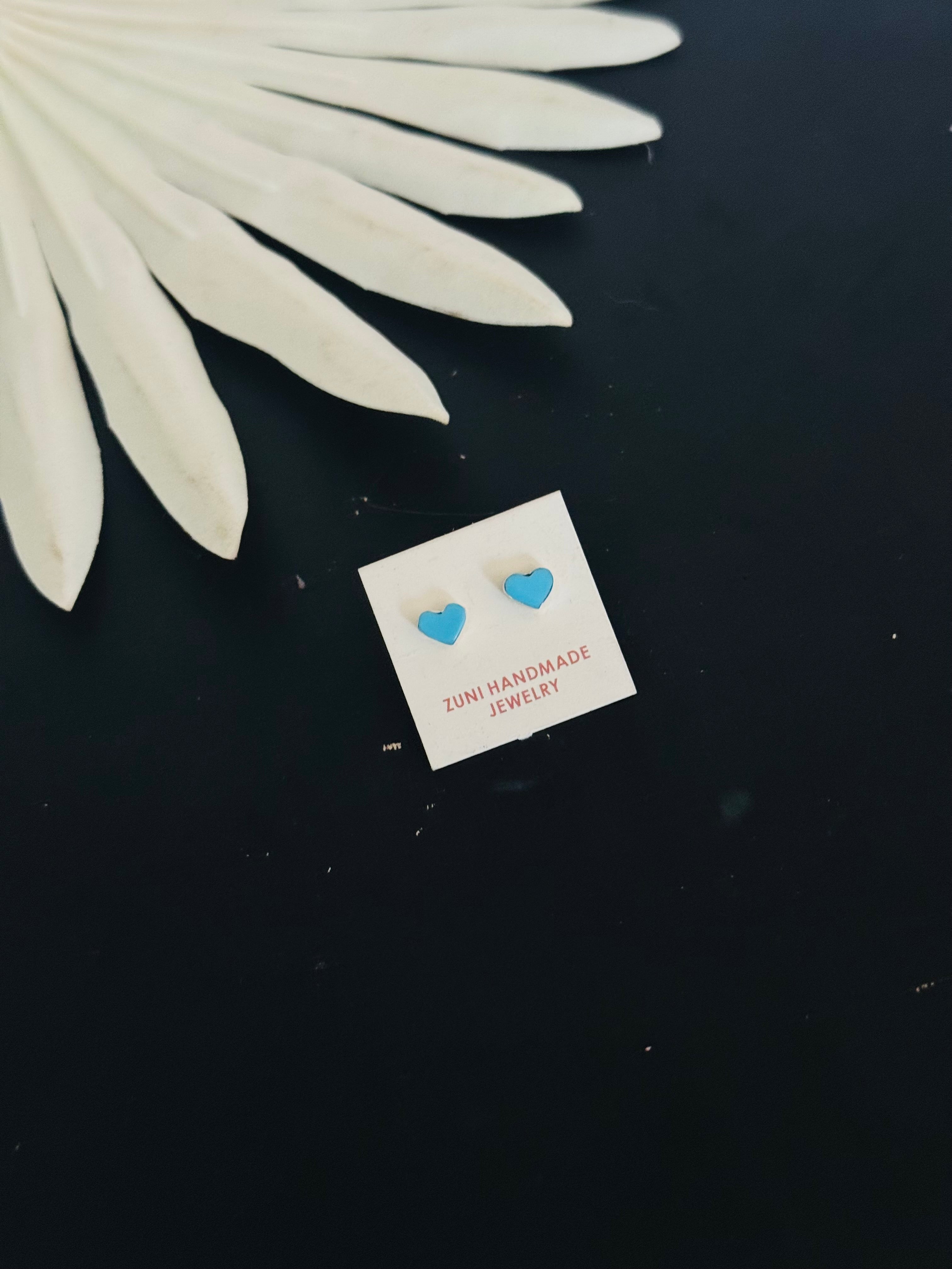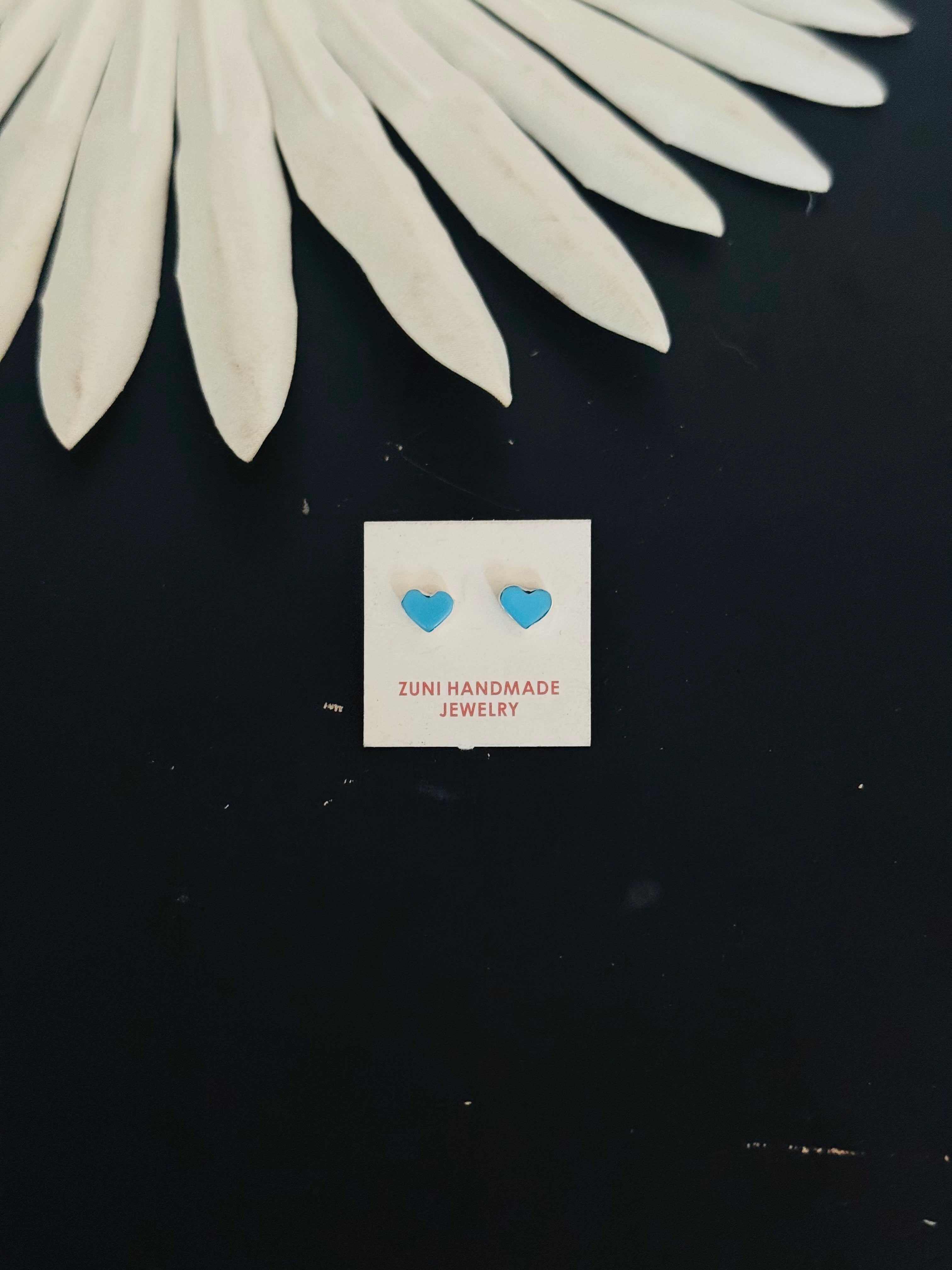 Zuni Made Kingman Turquoise & Sterling Silver Post Earrings. They measure 1/4 of an inch long and 1/4 of an inch wide. Stamped sterling silver.
