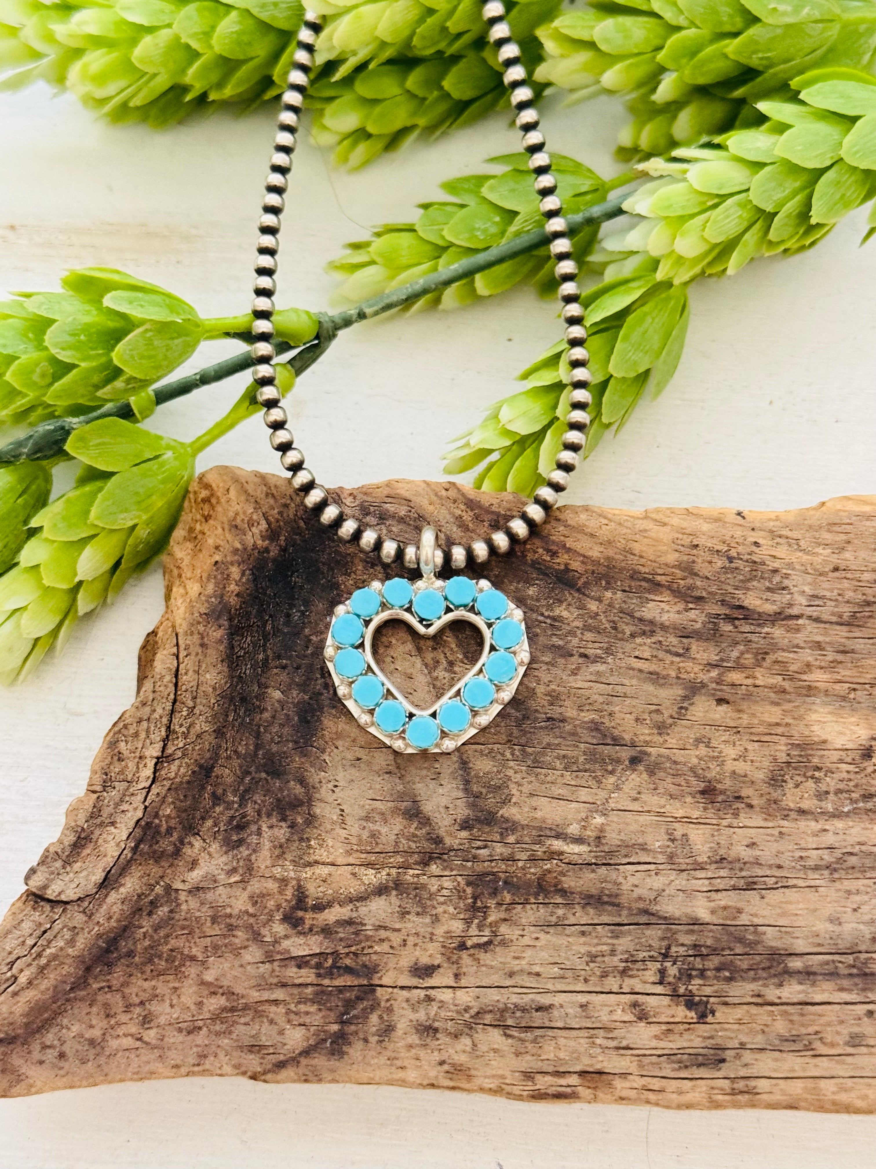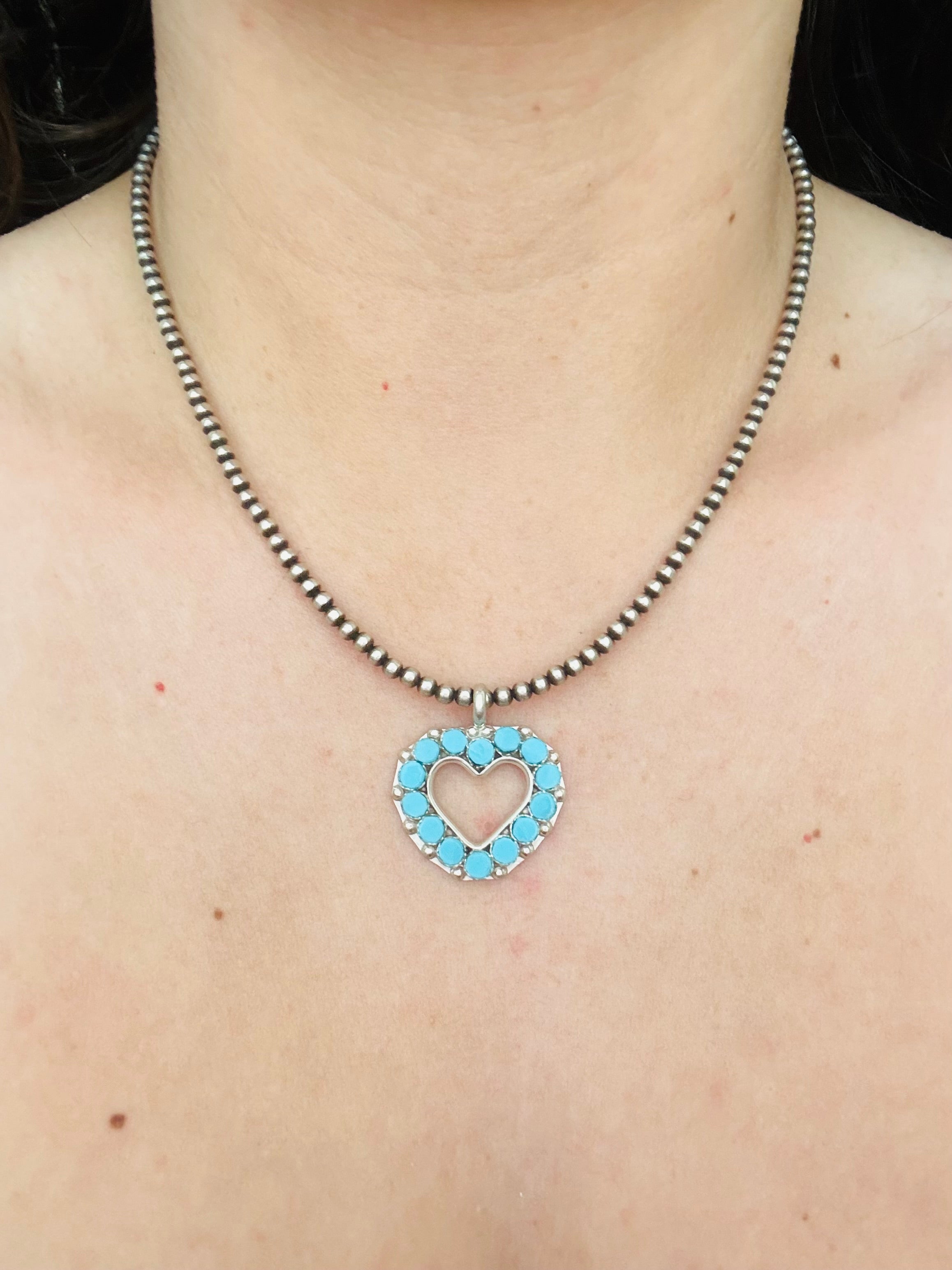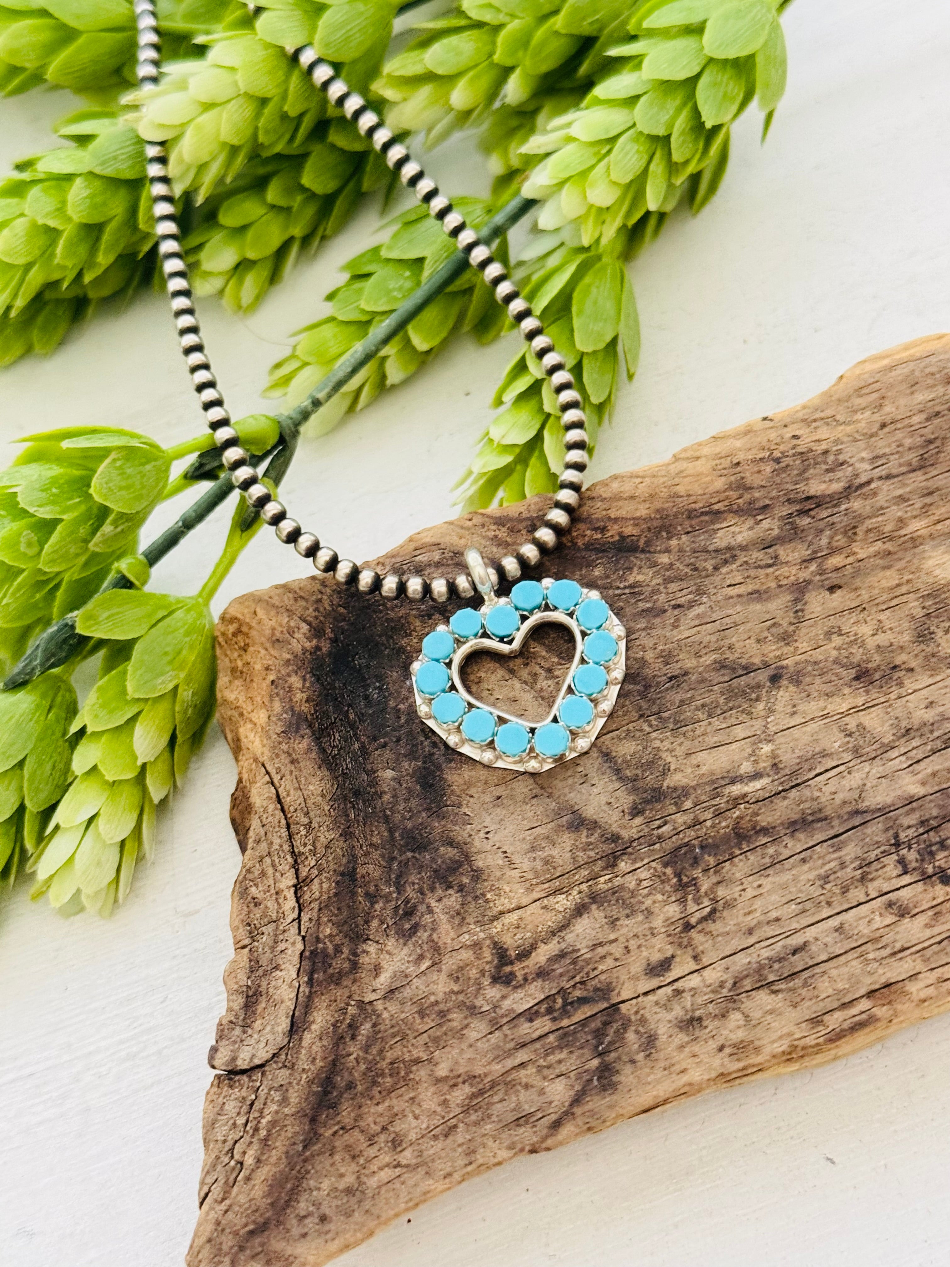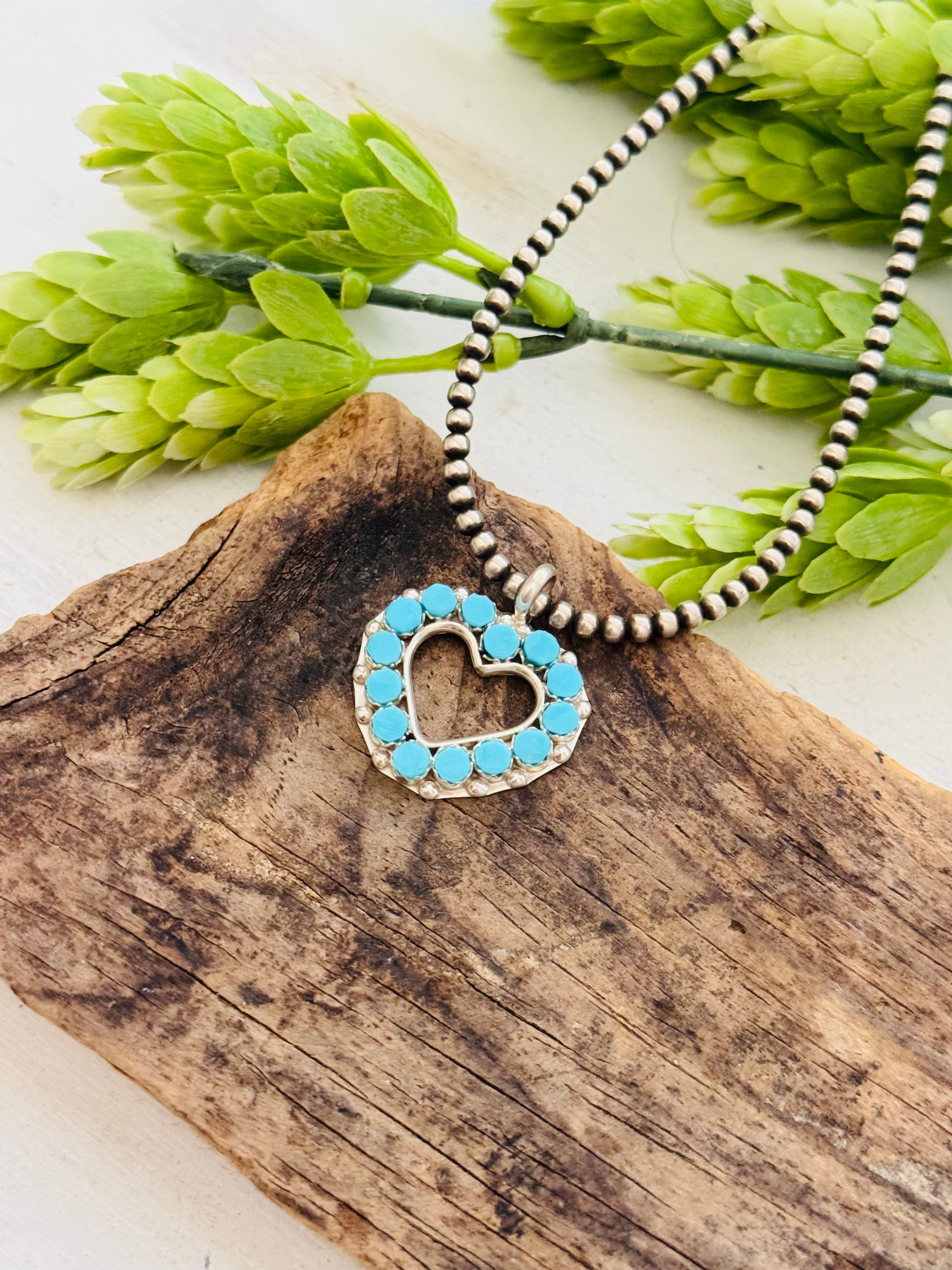 Zuni Made Kingman Turquoise & Sterling Silver Heart Pendant