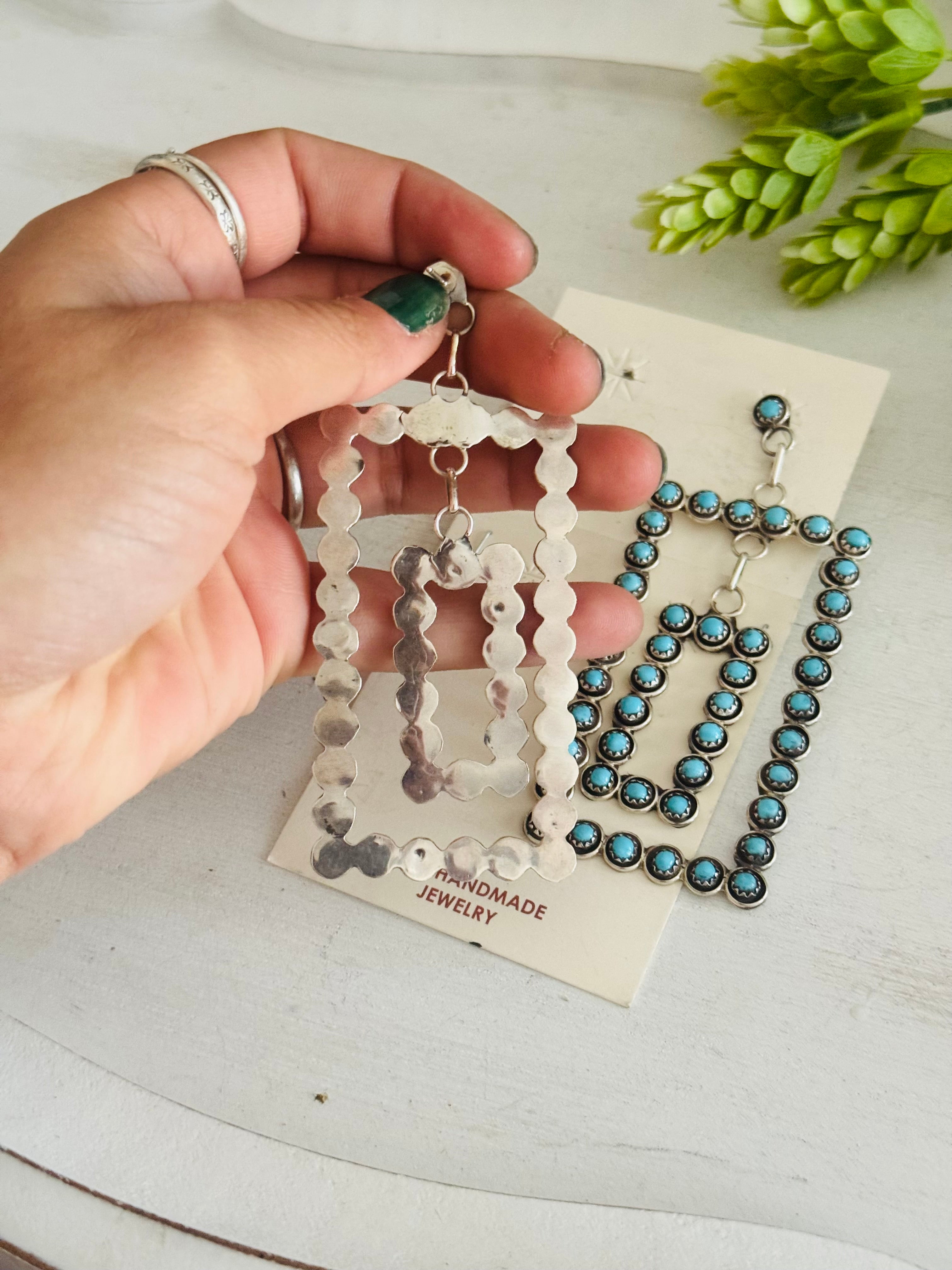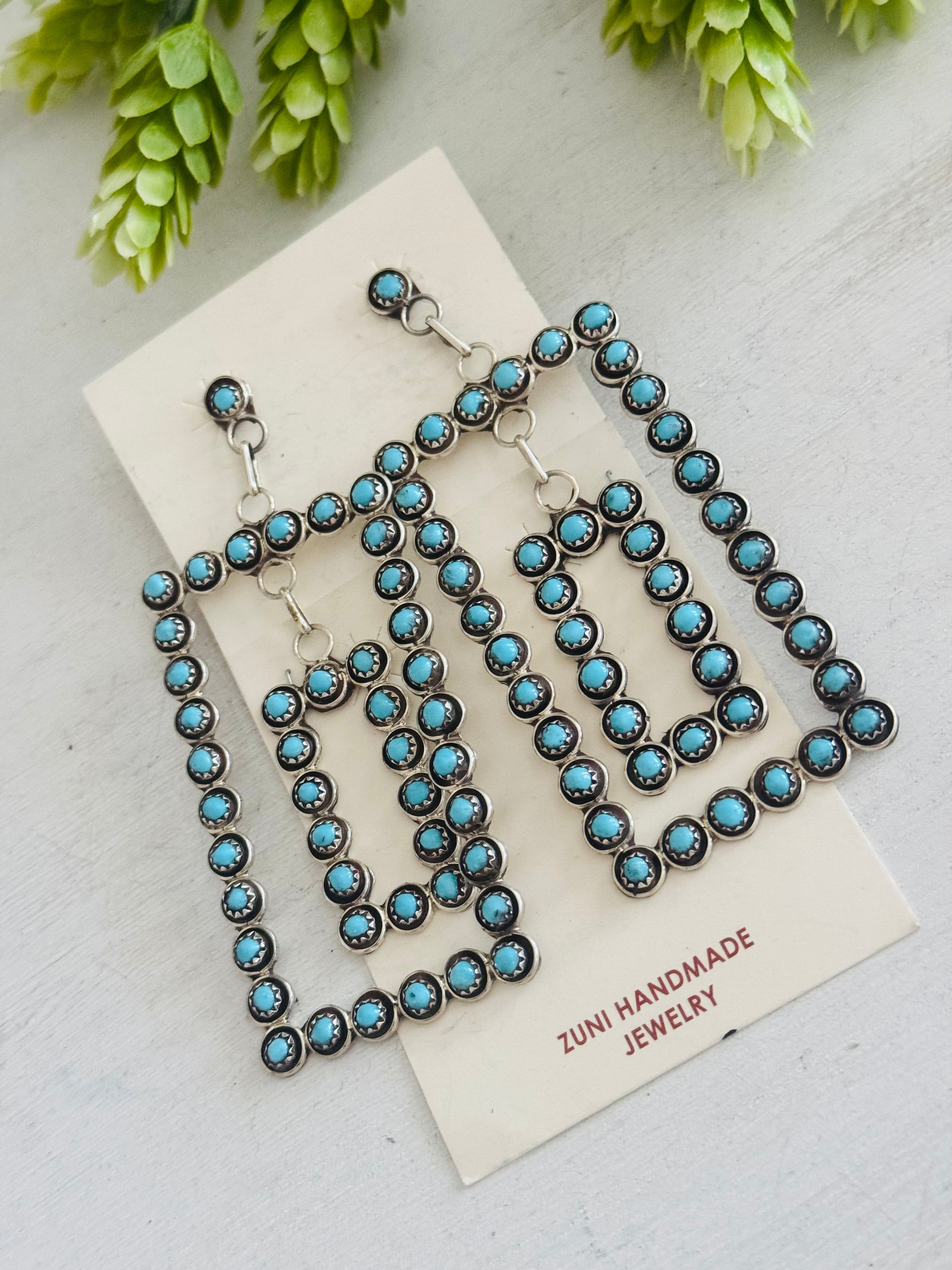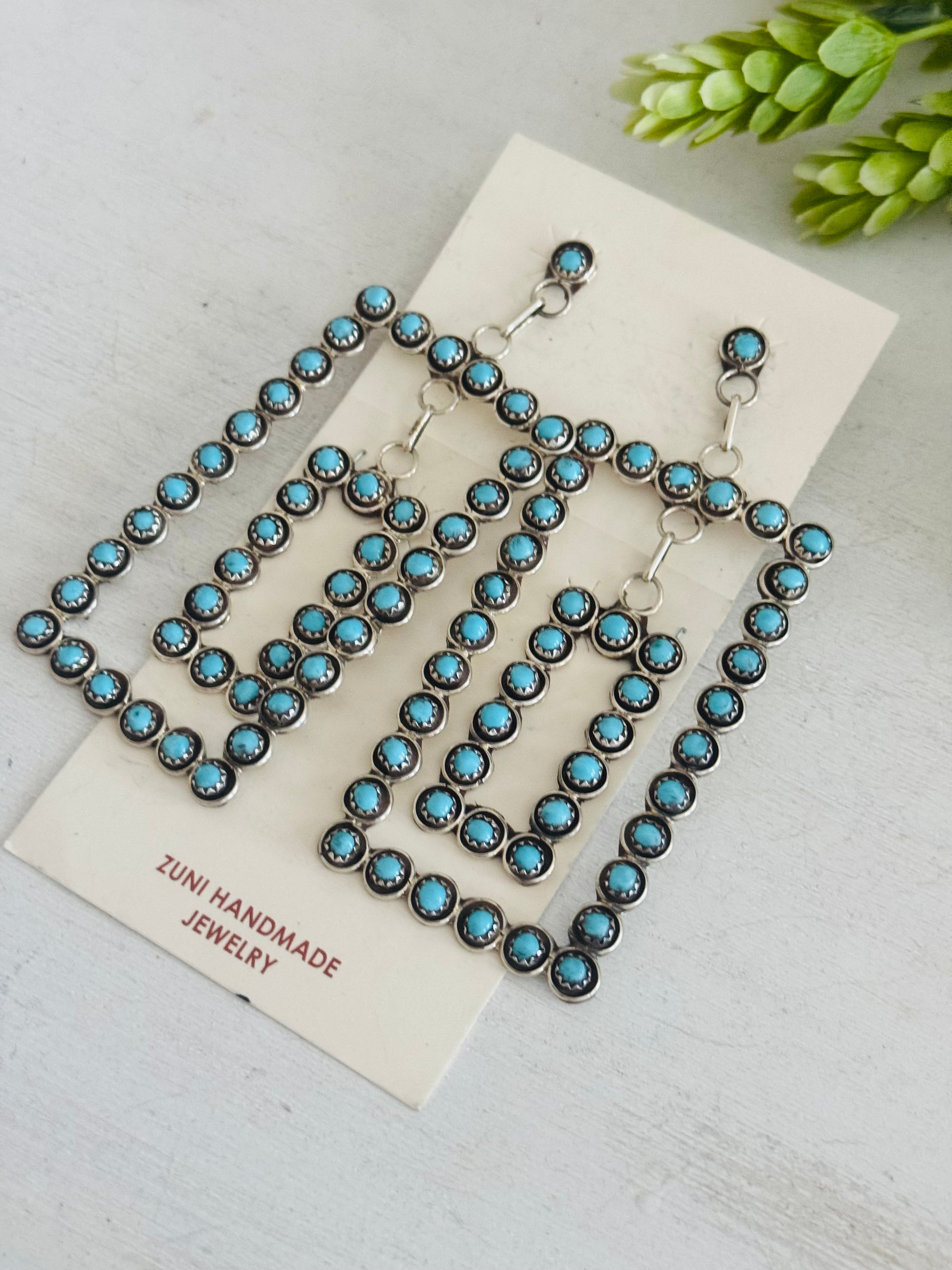 Zuni Made Kingman Turquoise & Sterling Silver Post Dangle Earrings