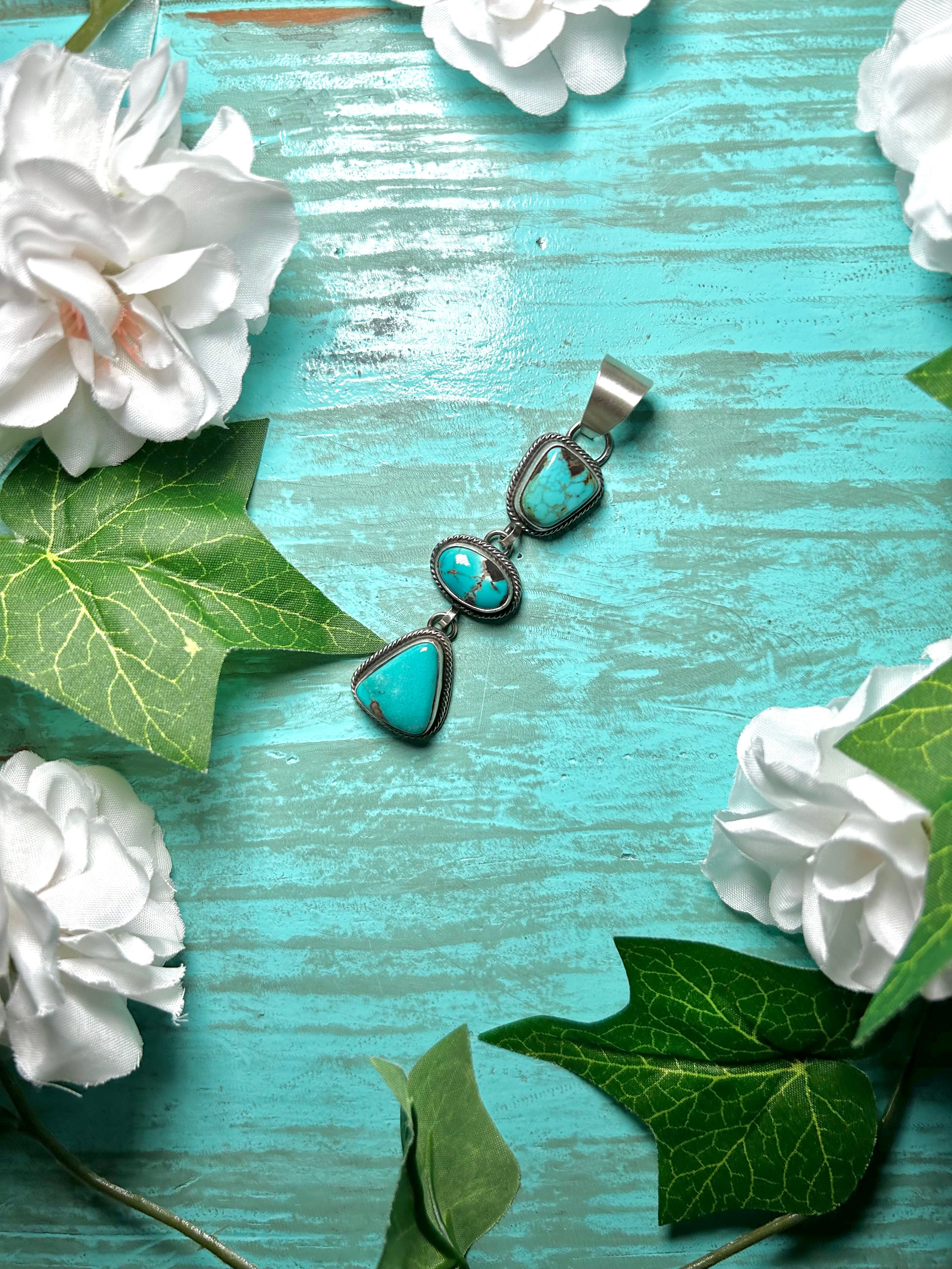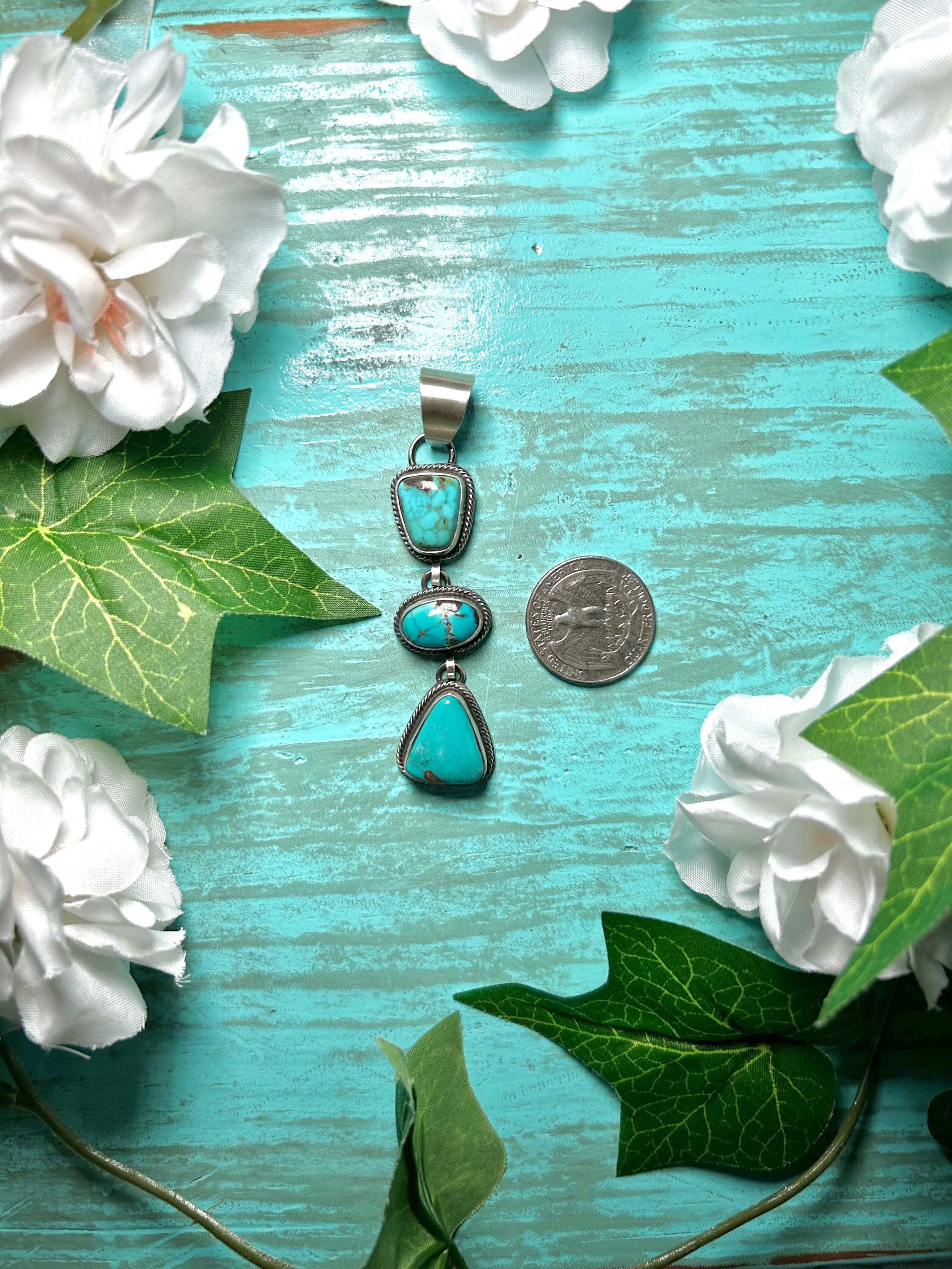 Anderson Largo Royston Turquoise & Sterling Silver Pendant. It measures 2 1/4 inches long and 3/4 of an inch wide. Pendant Only! Signed by the artist and stamped sterling silver.