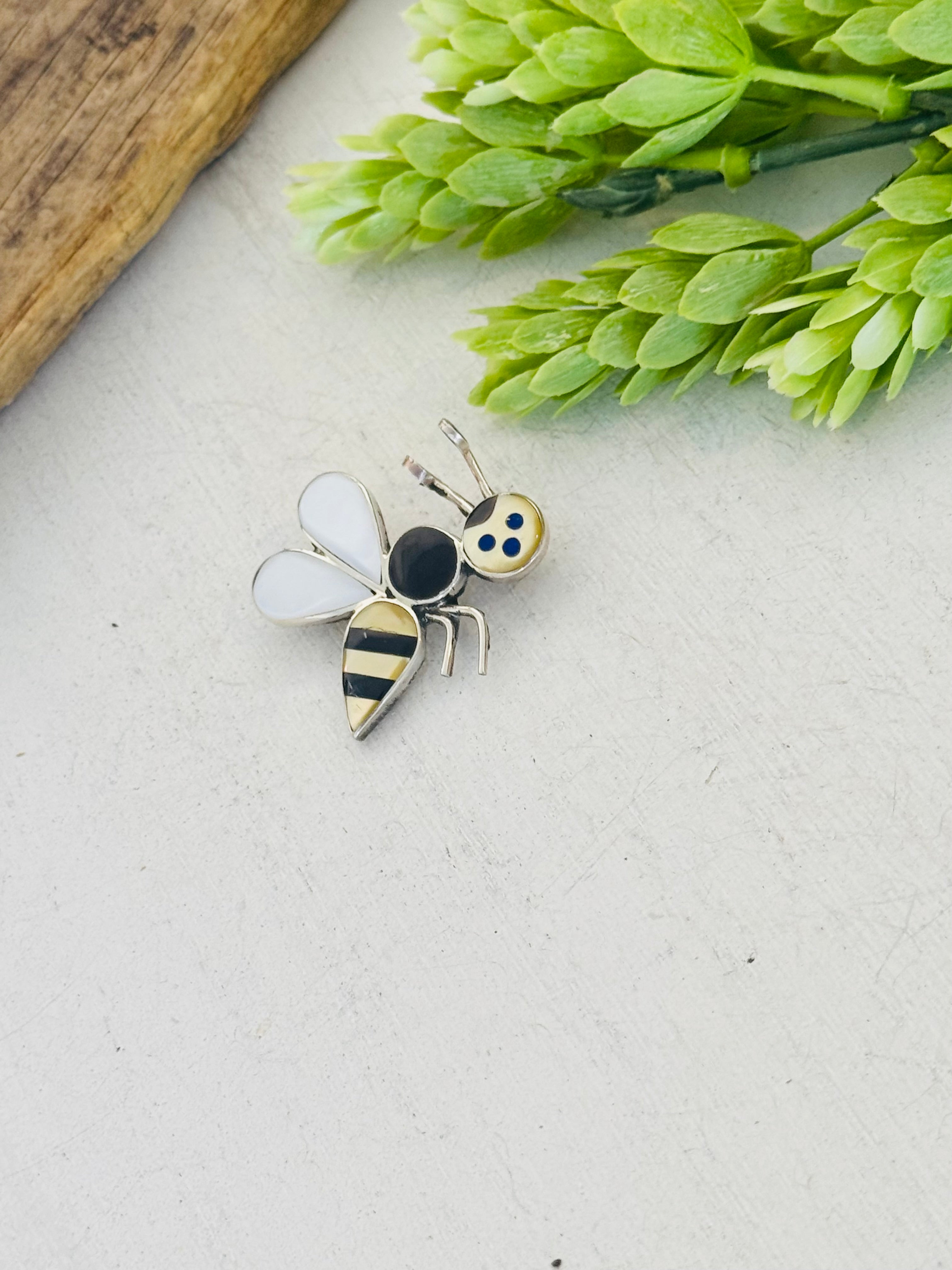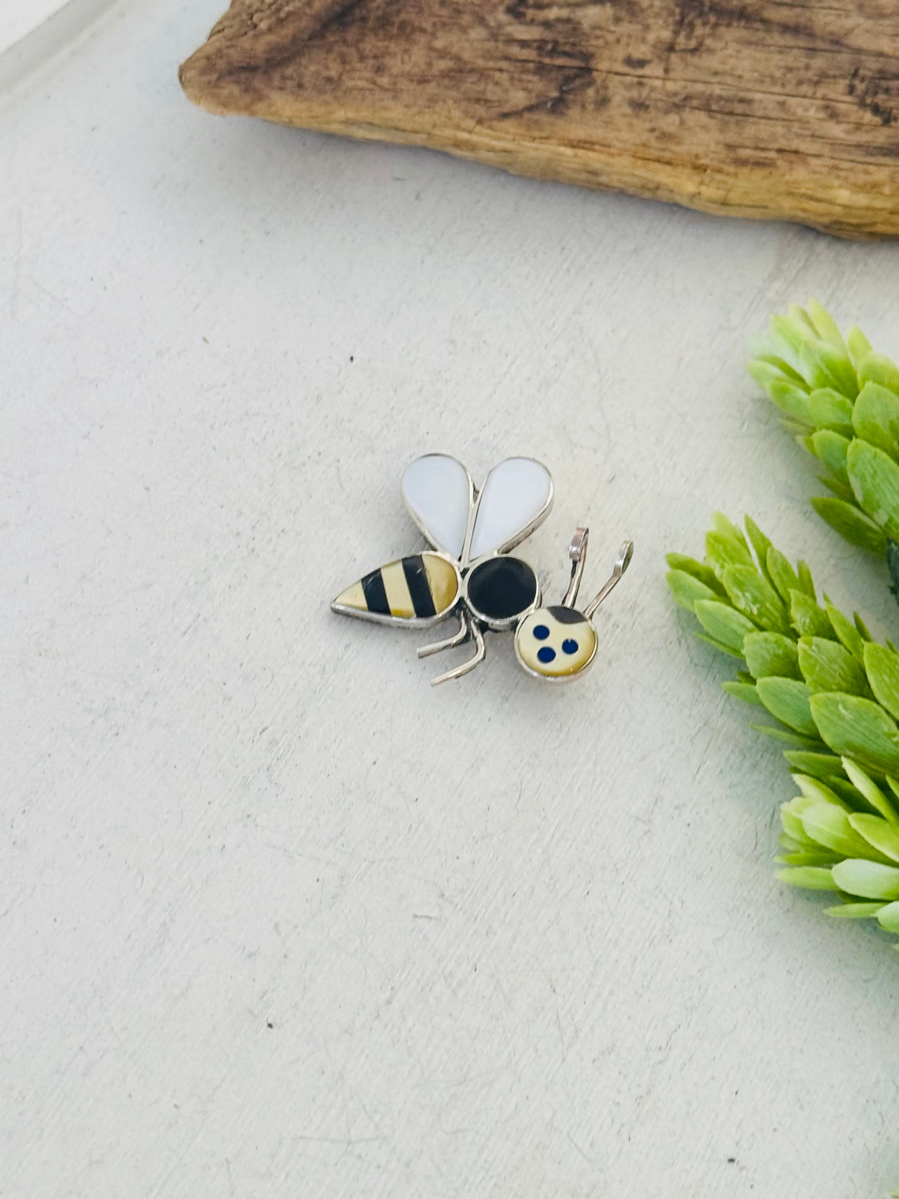 Zuni Made Multi Stone Bee Pin/Pendant. It measure just over 1 1/4 inches long and 1 1/4 inches wide.