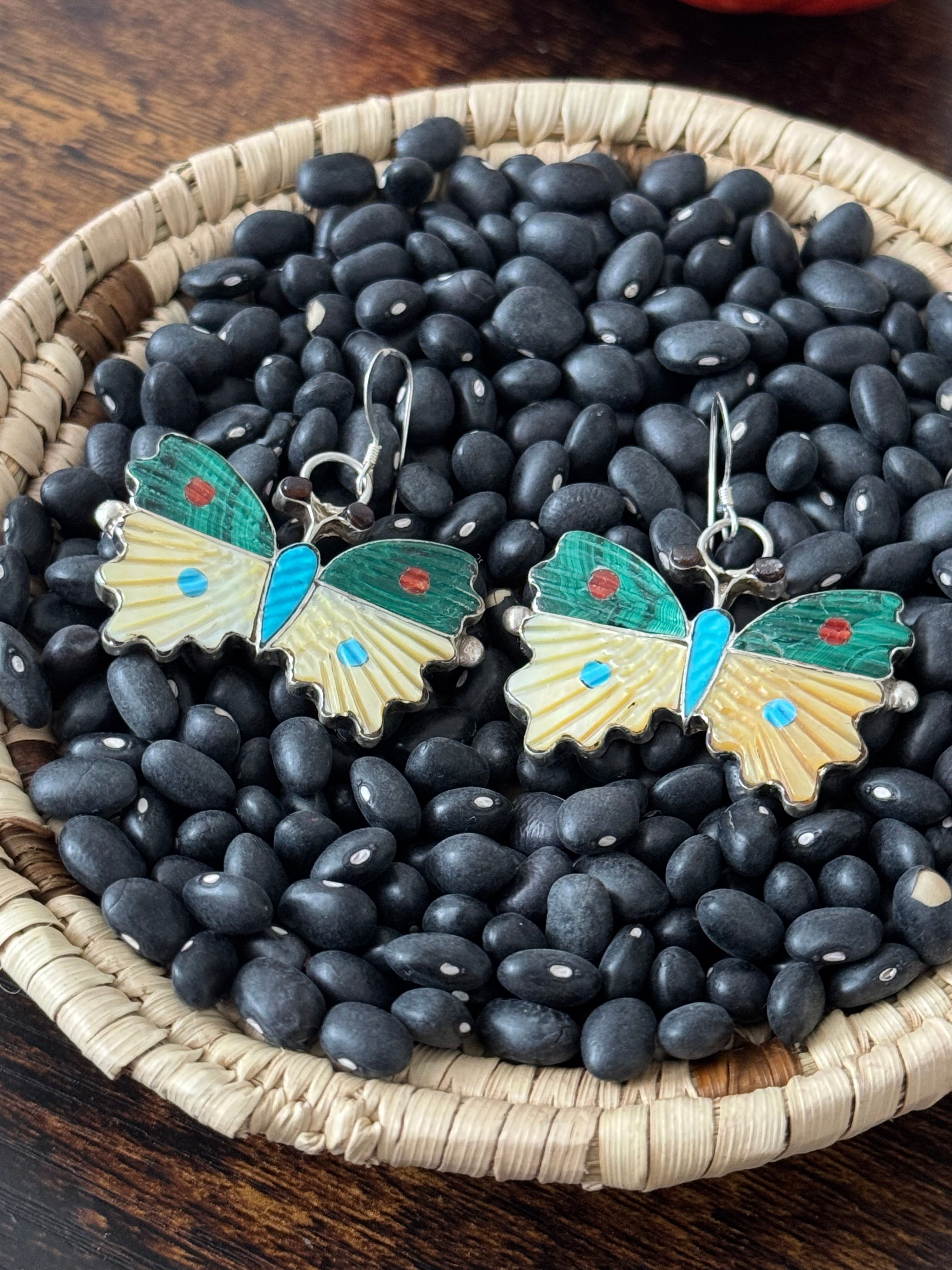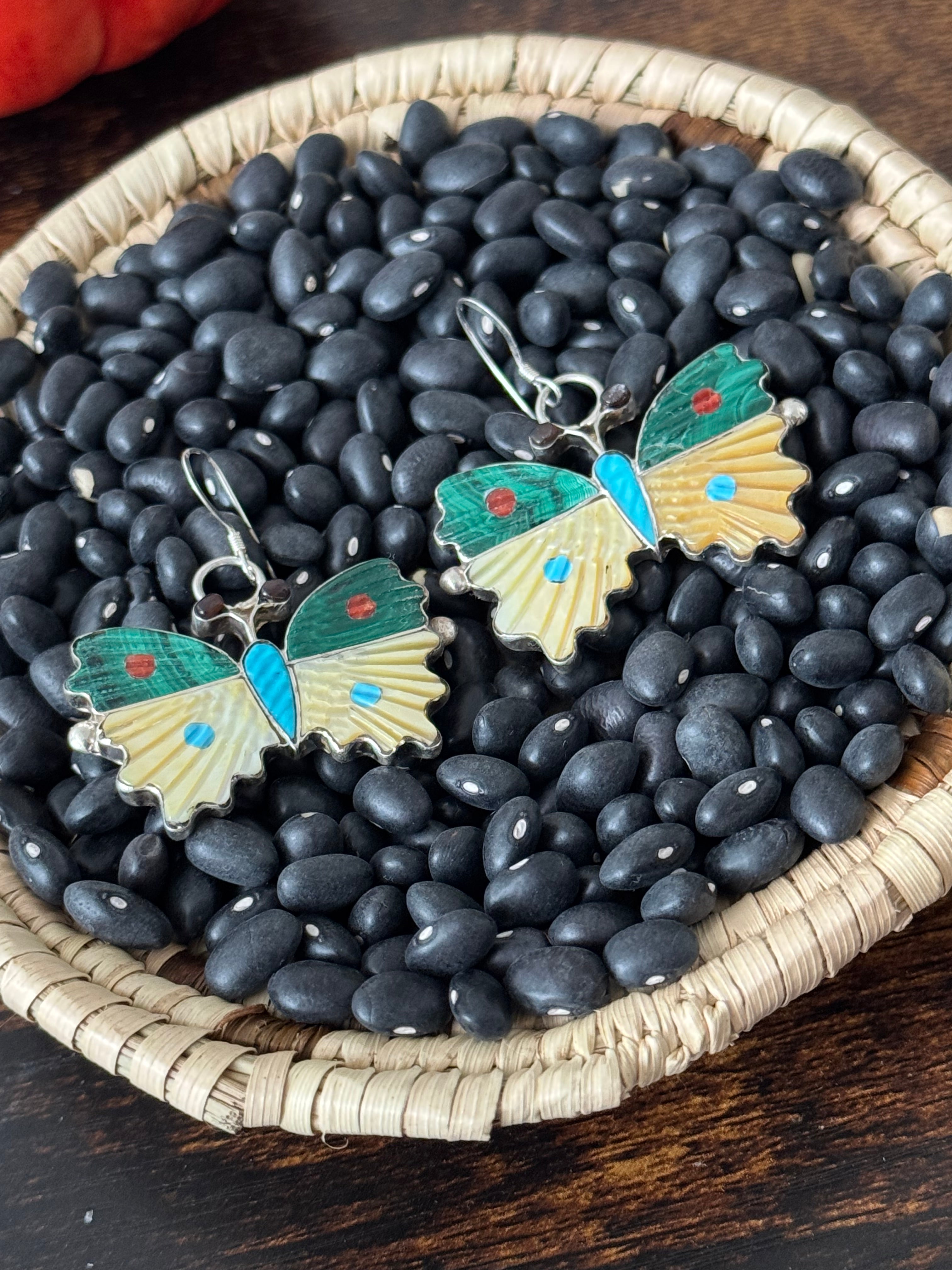 Tamara Pinto Multi Stone & Sterling Silver Inlay Dangle Butterfly Earrings
