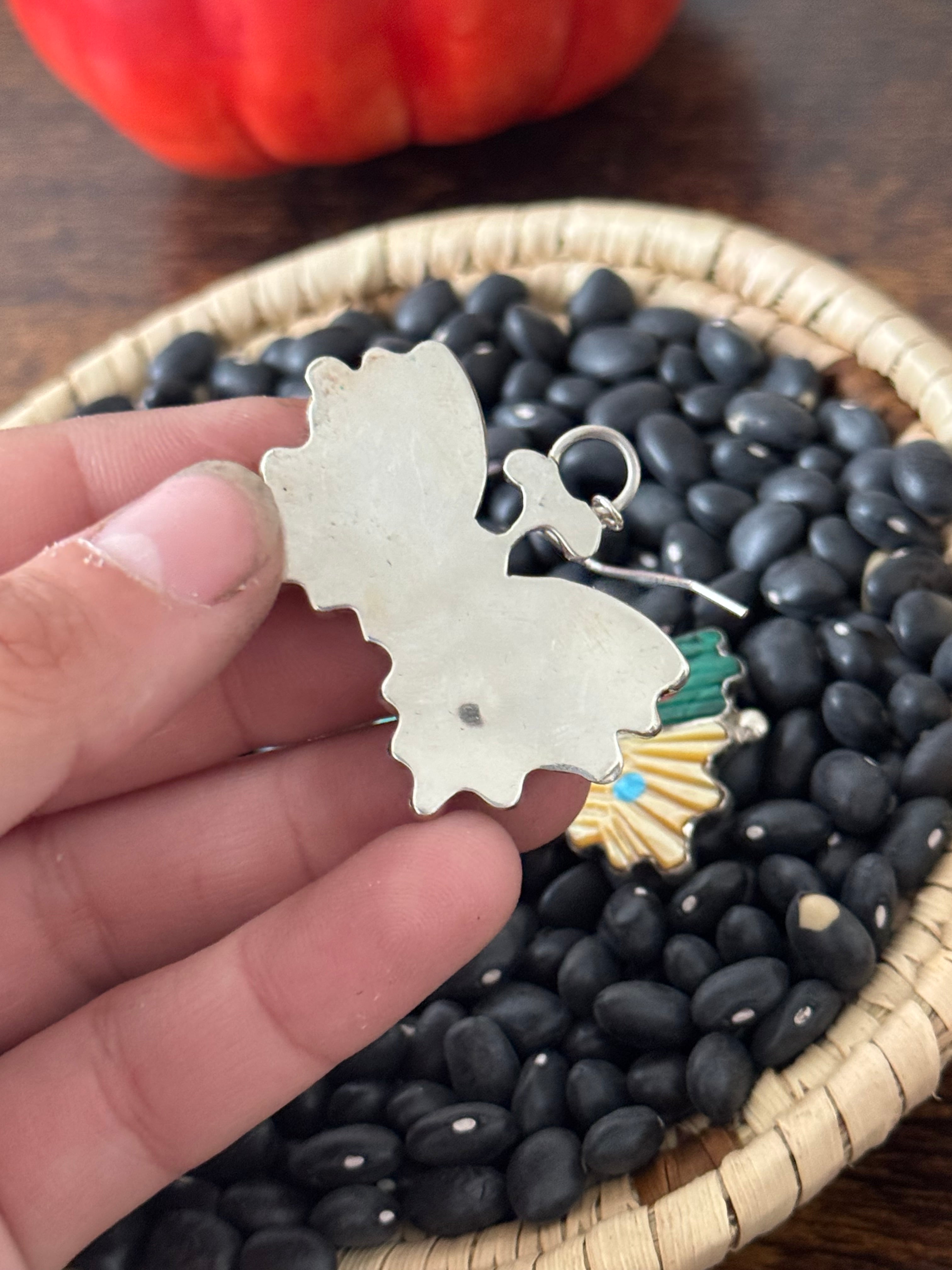 Tamara Pinto Multi Stone & Sterling Silver Inlay Dangle Butterfly Earrings. It measures just over 1 3/4 inches long and 1 3/8 inches wide.