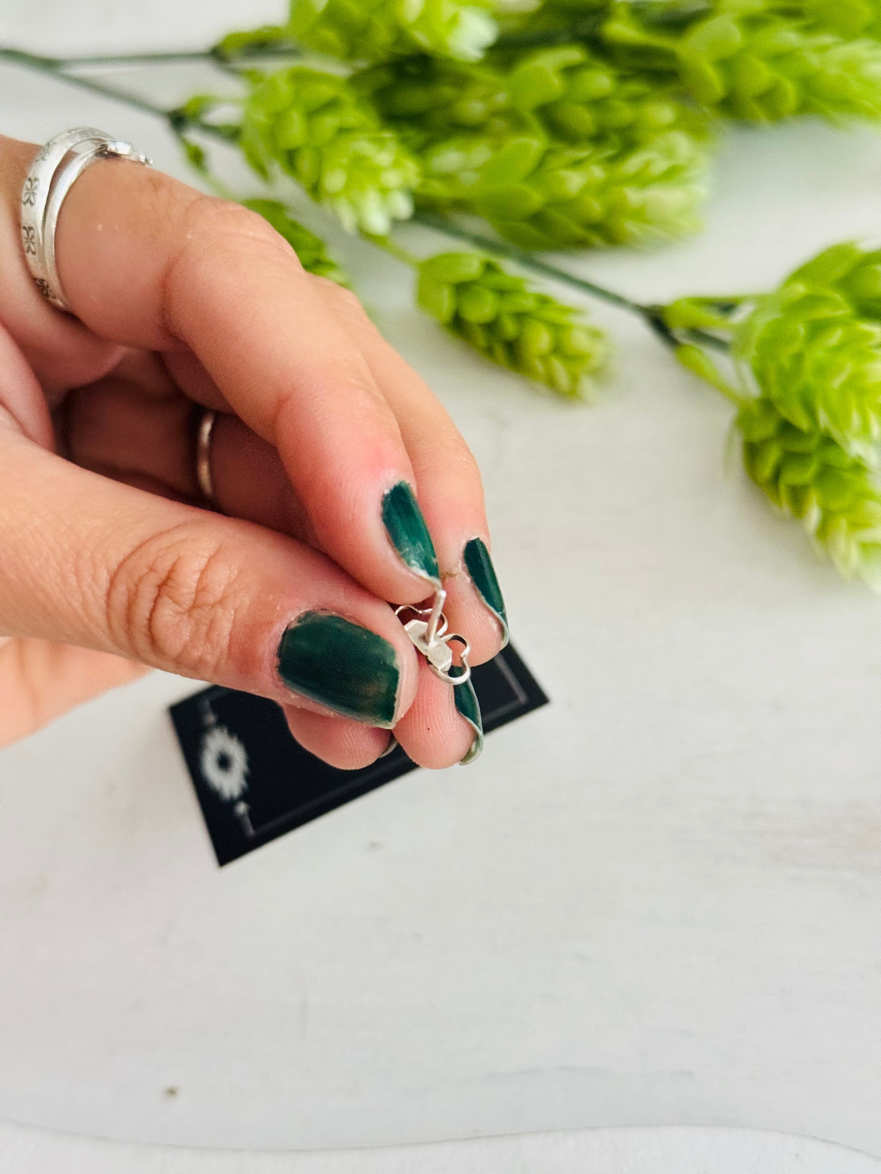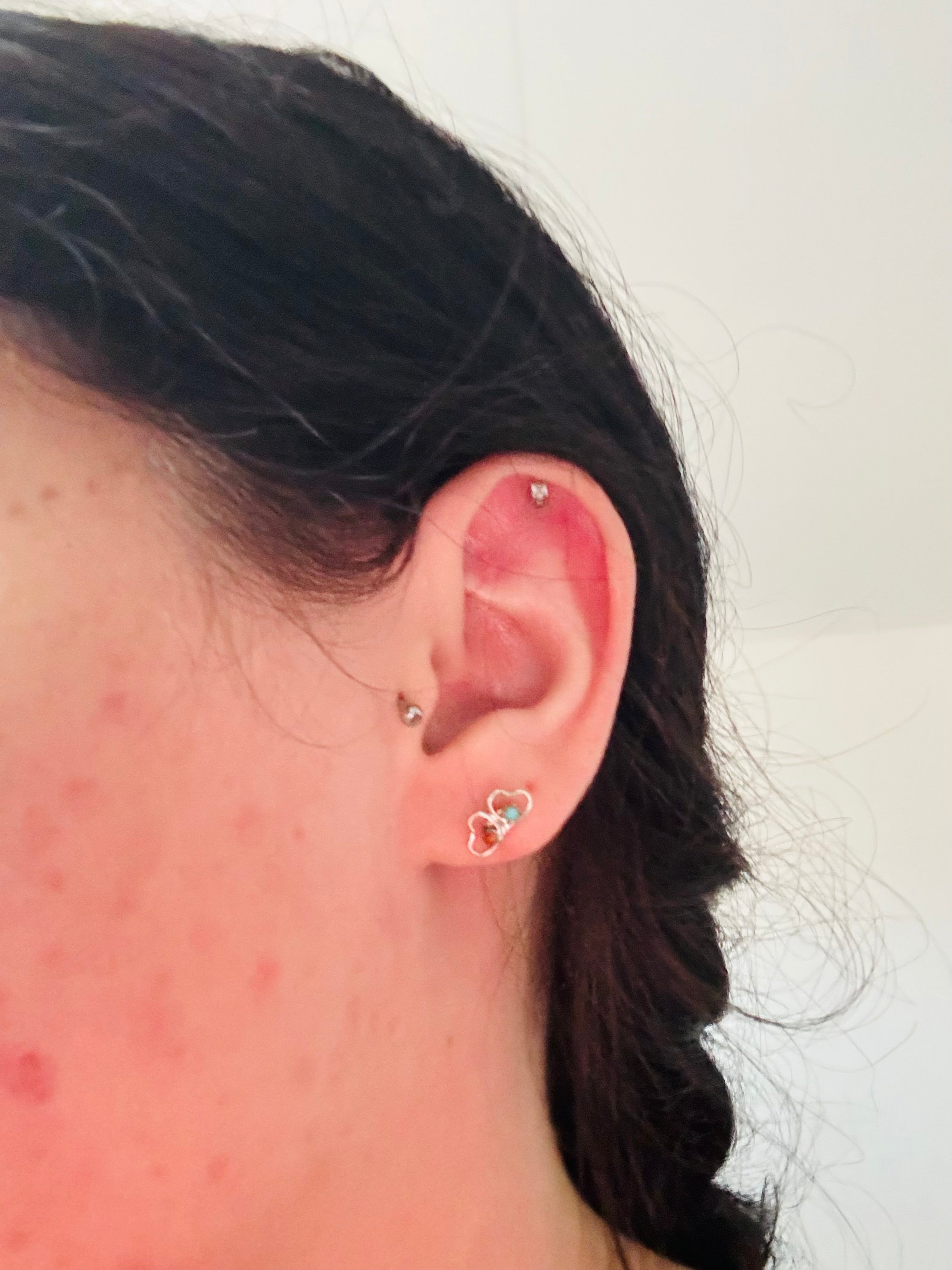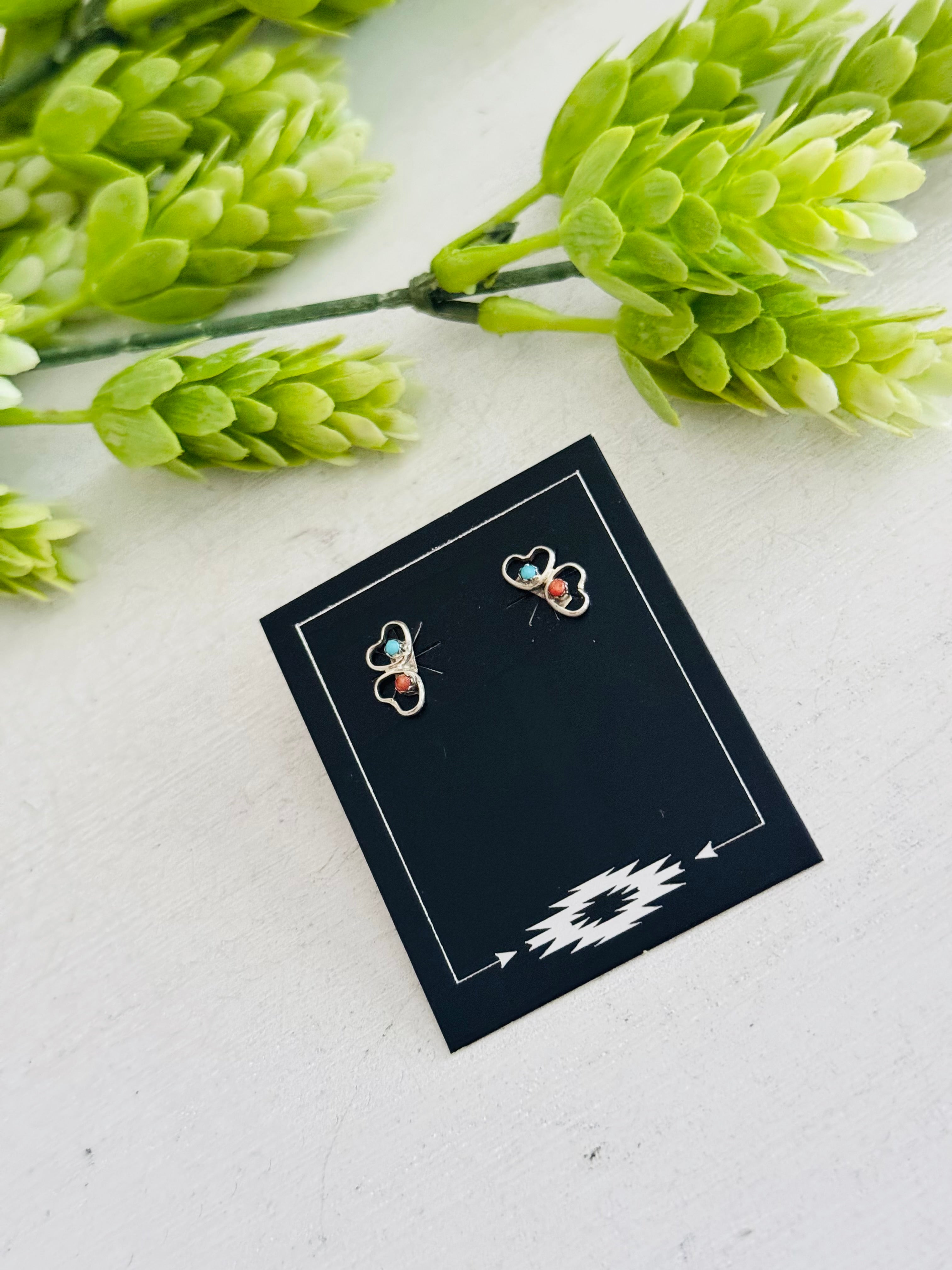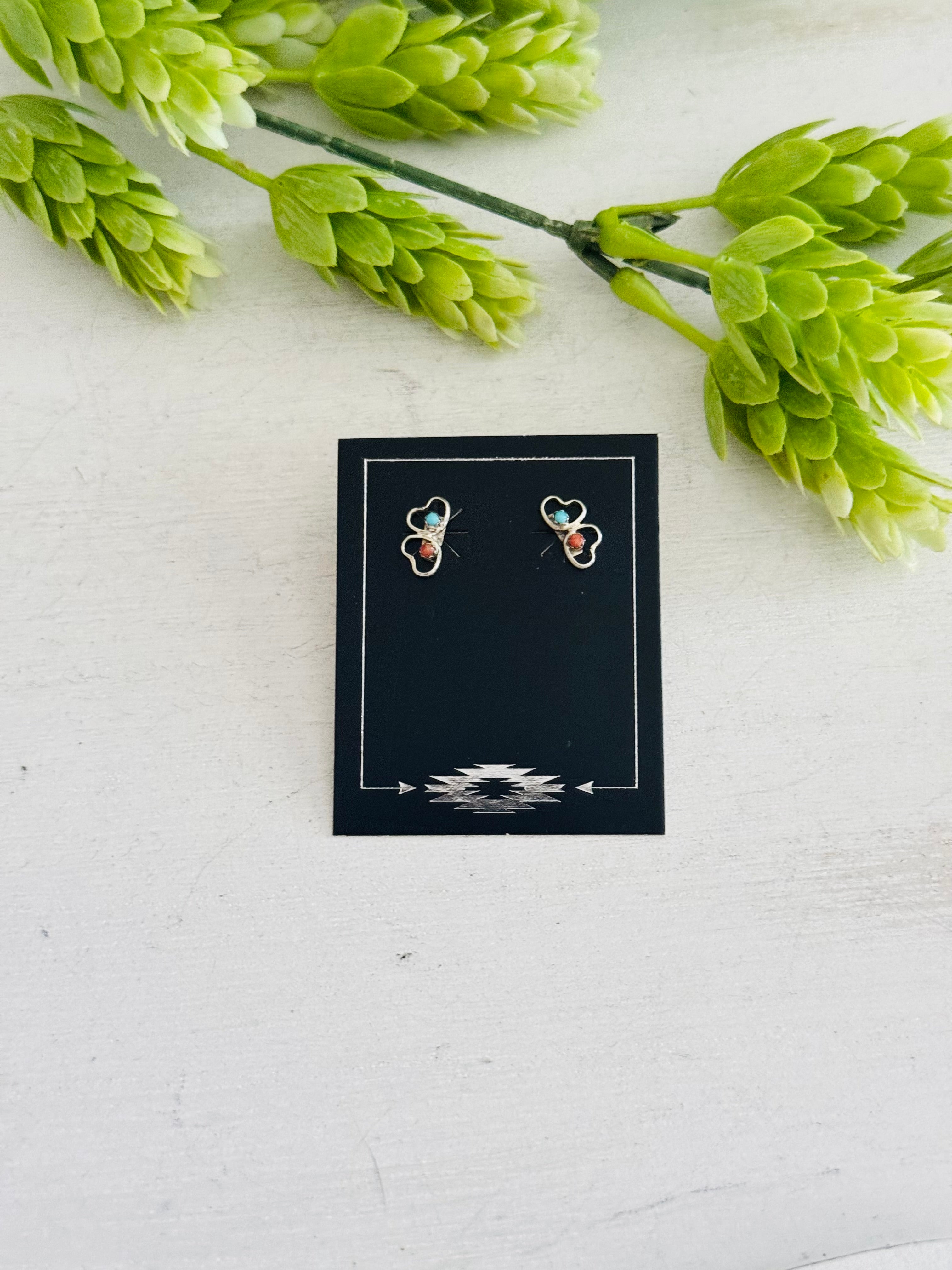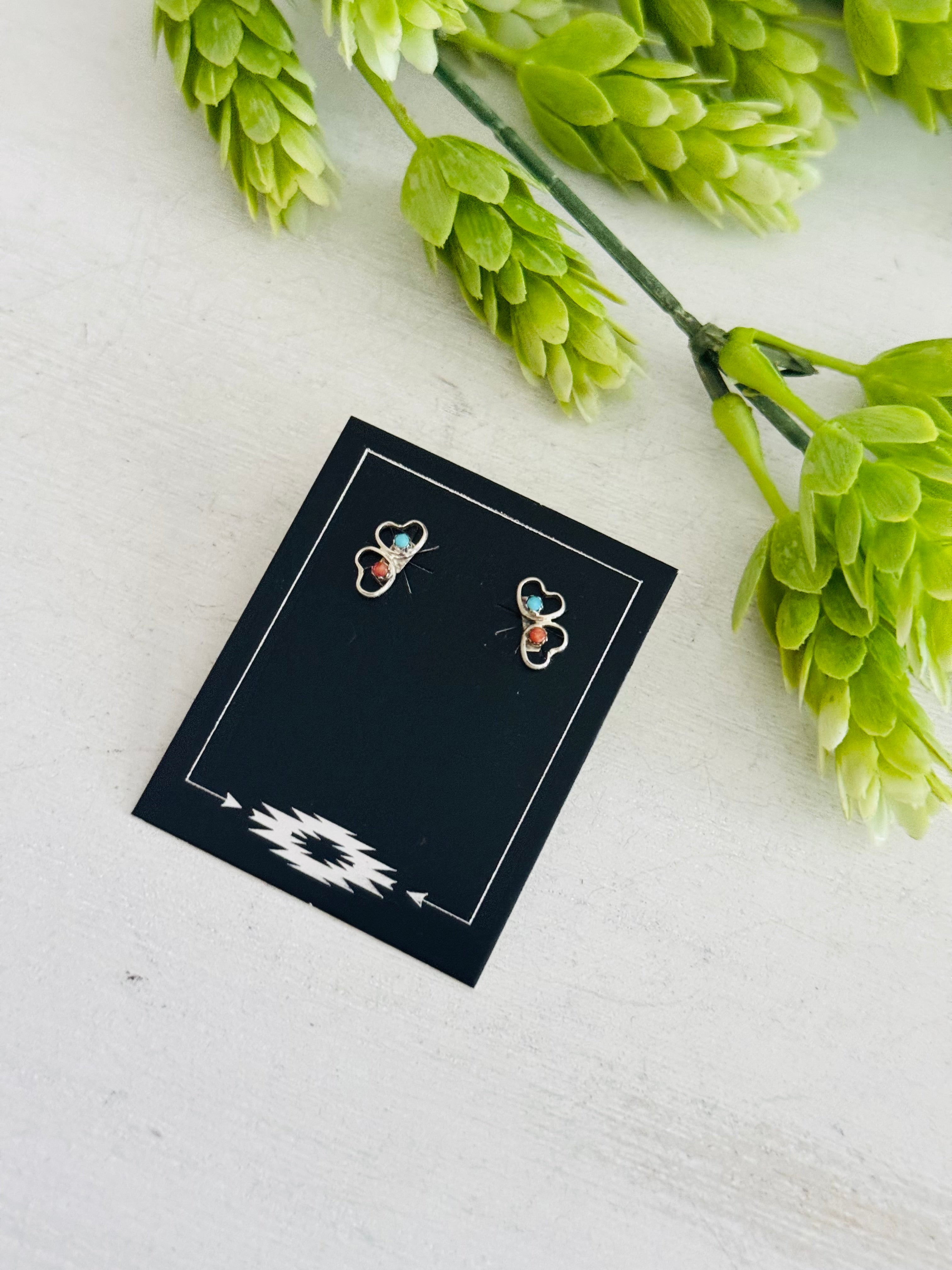 Zuni Made Multi Stone & Sterling Silver Heart Post Earrings. It measures just over 3/8 of an inch long.