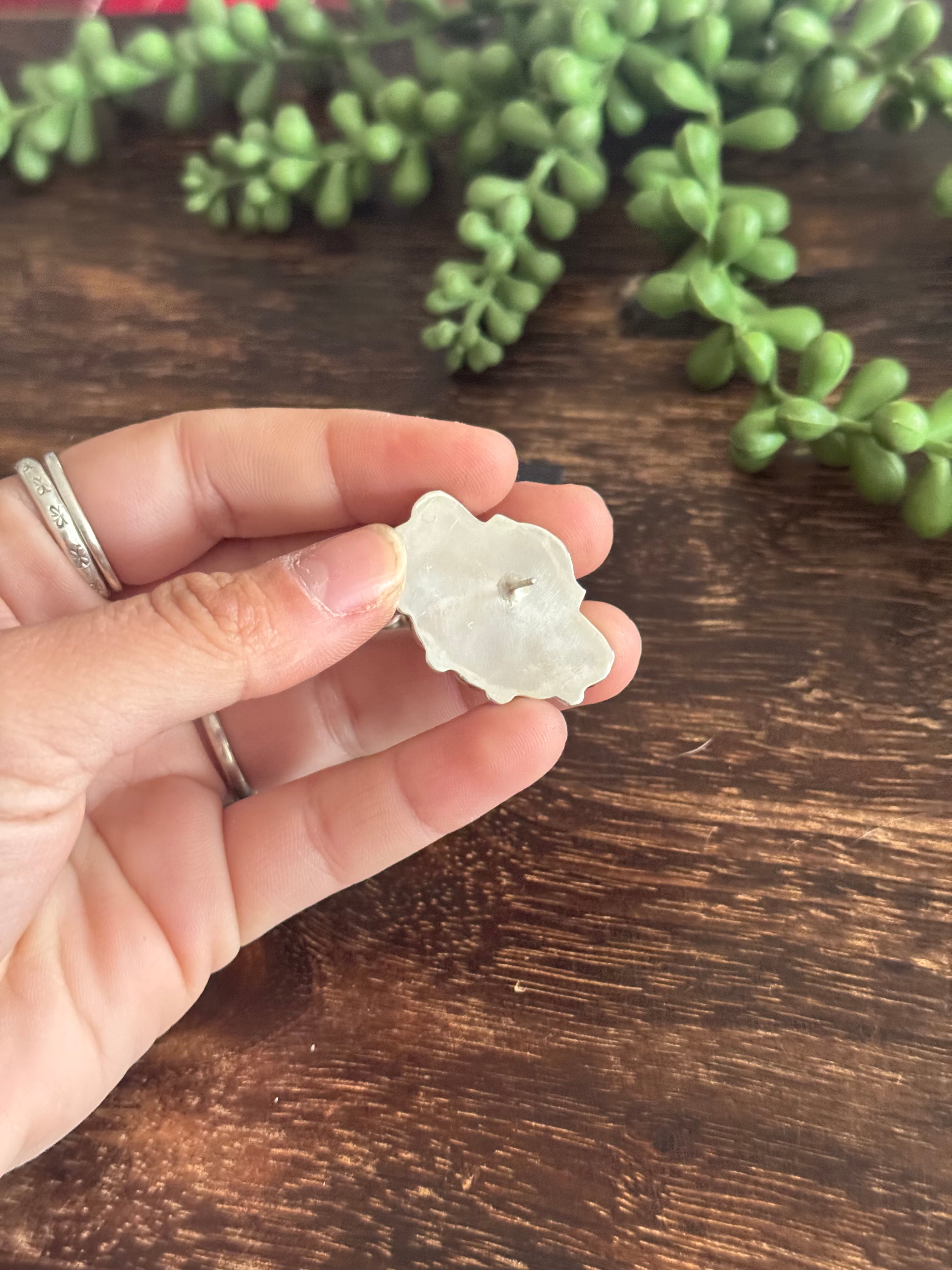 Zuni Made Multi Stone & Sterling Silver Inlay Post Earrings. It measures just over 1 1/4 inches long and just under 1 inch wide.