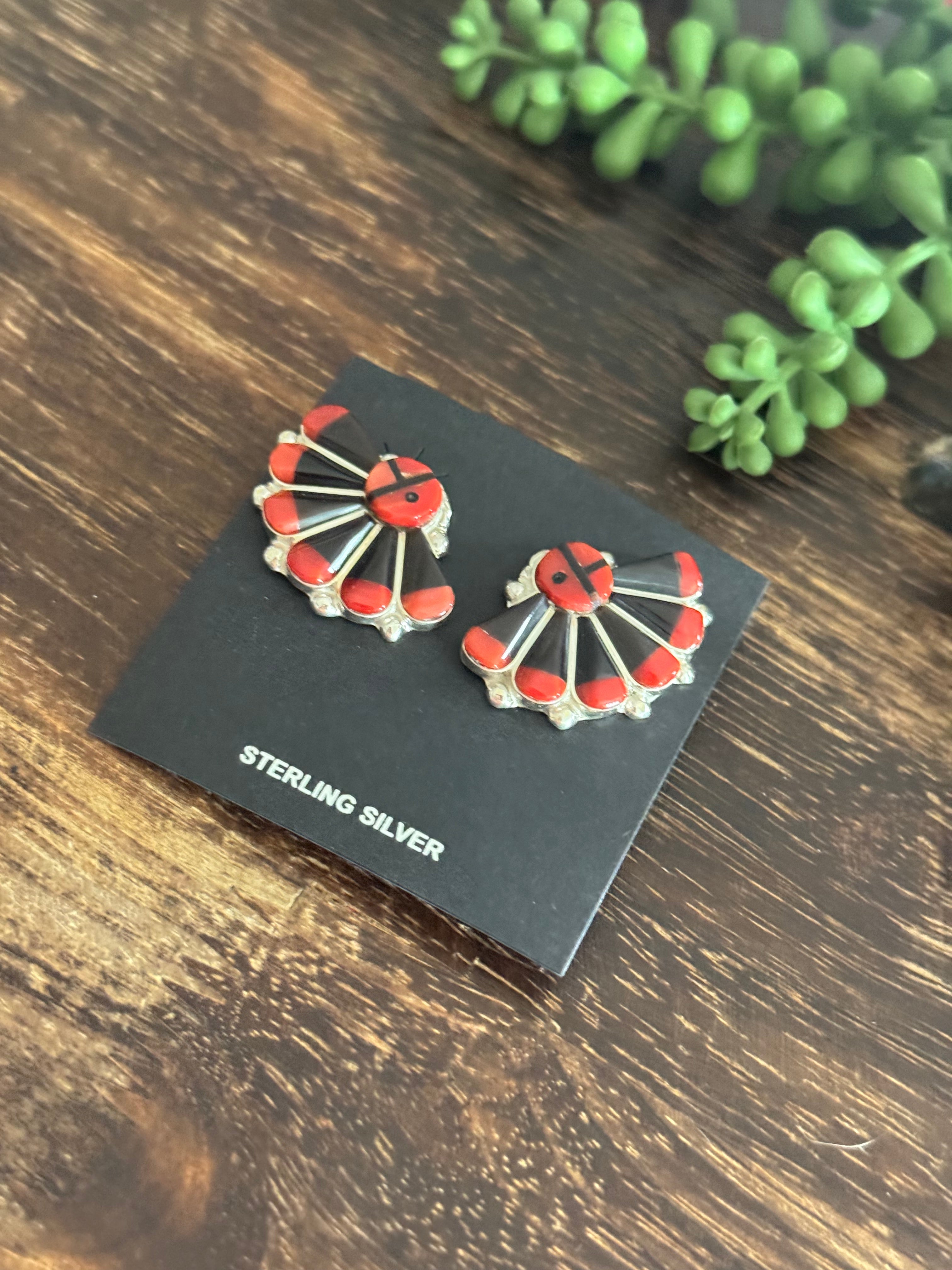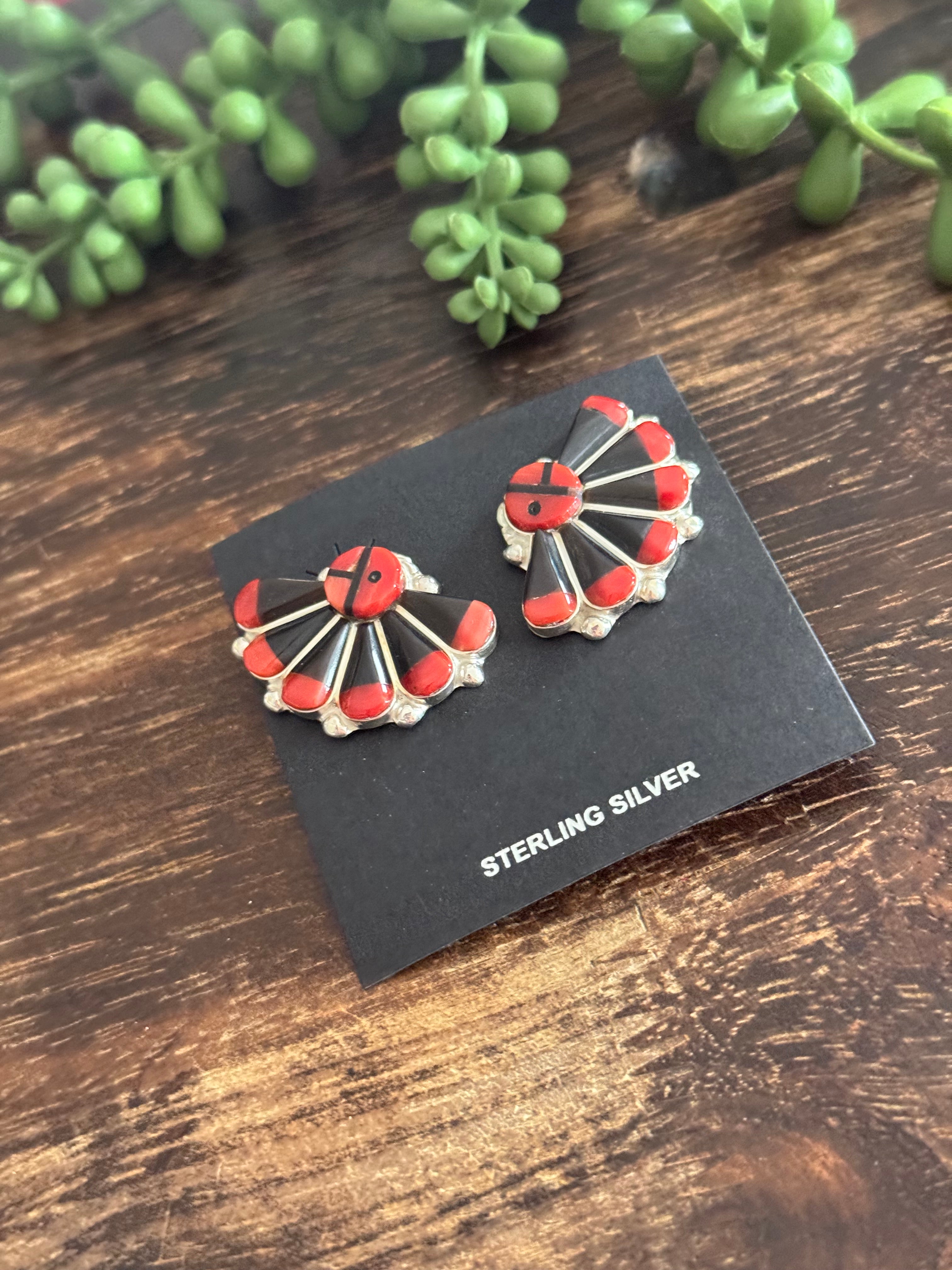 Zuni Made Multi Stone & Sterling Silver Inlay Post Earrings