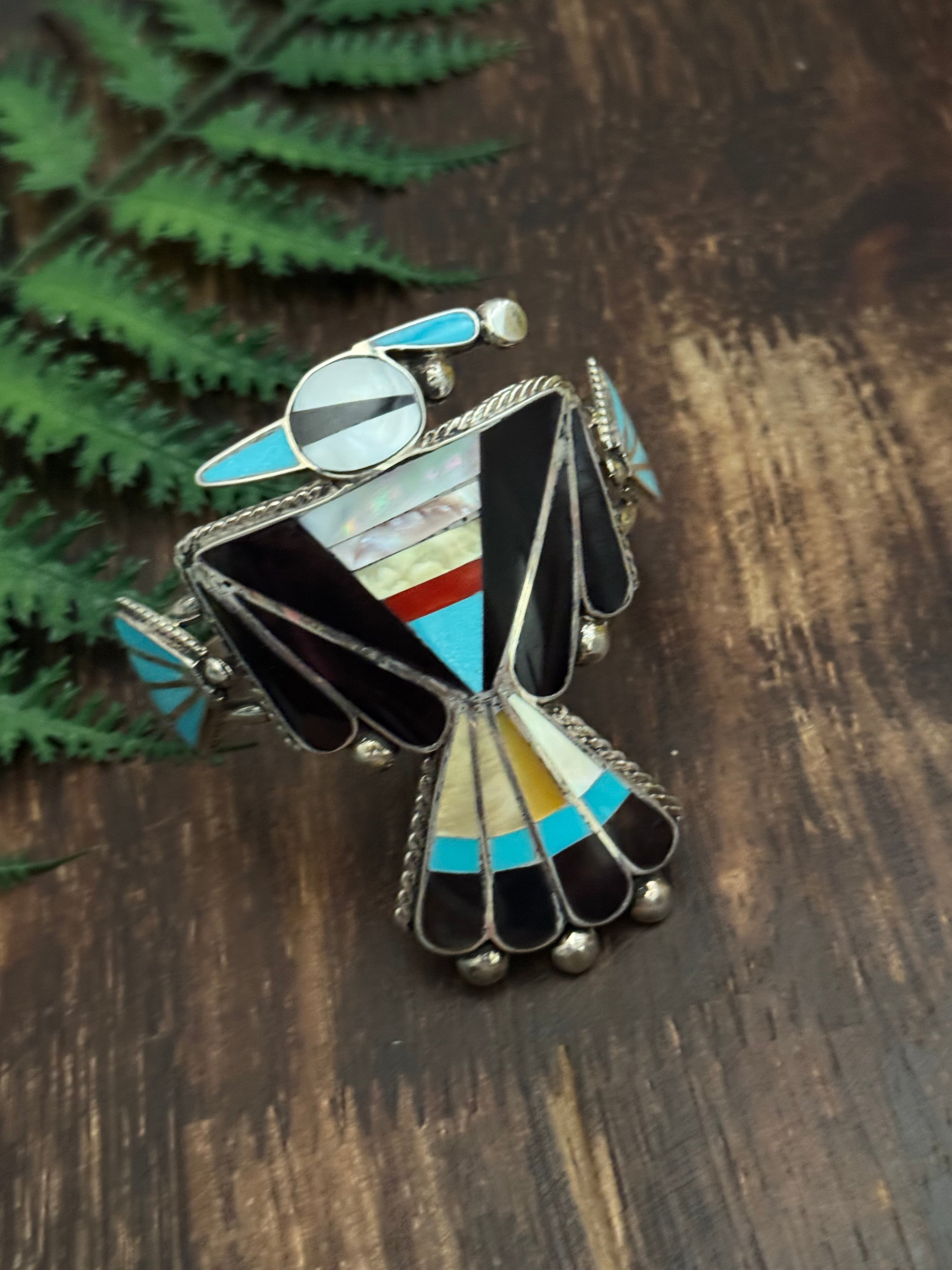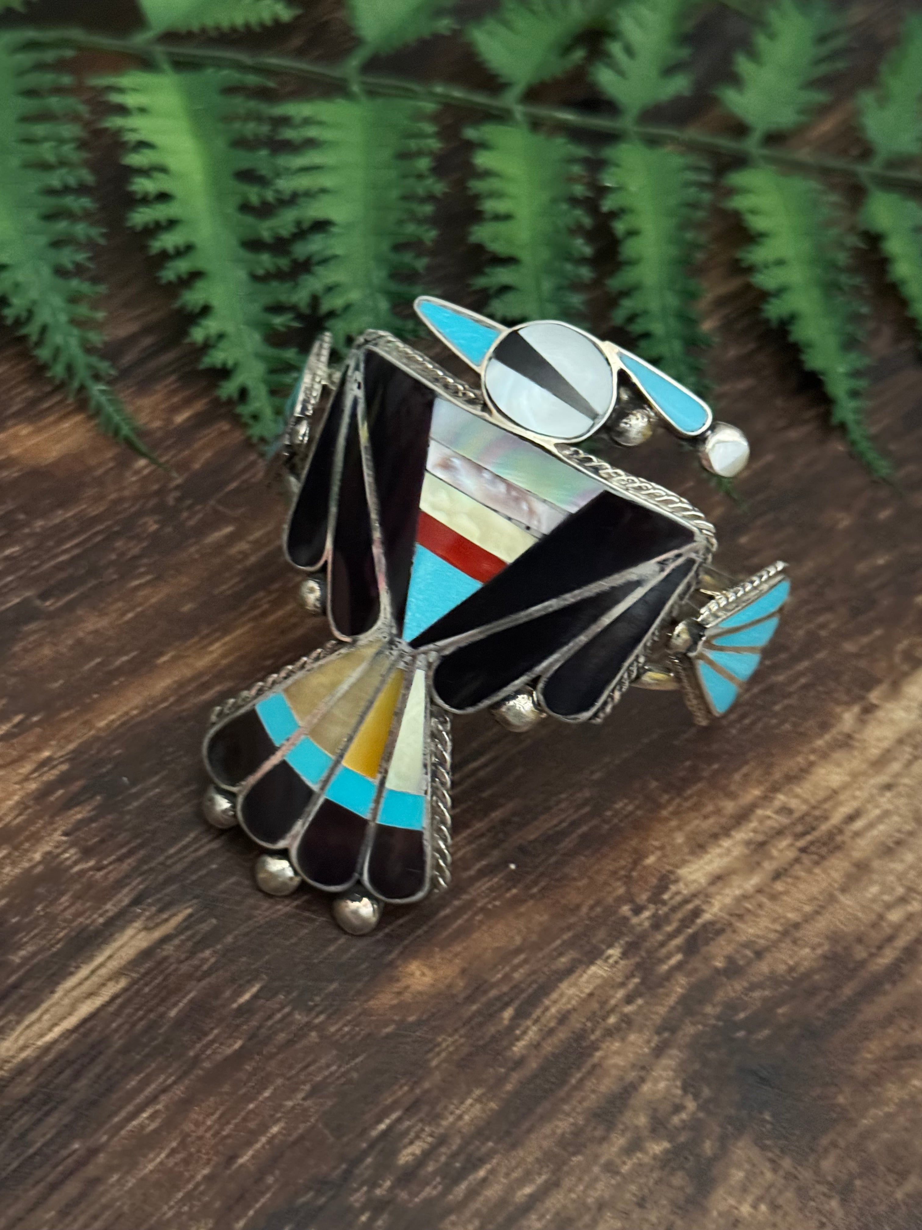 Zuni Made Multi Stone & Sterling Silver Inlay Thunderbird Cuff Bracelet