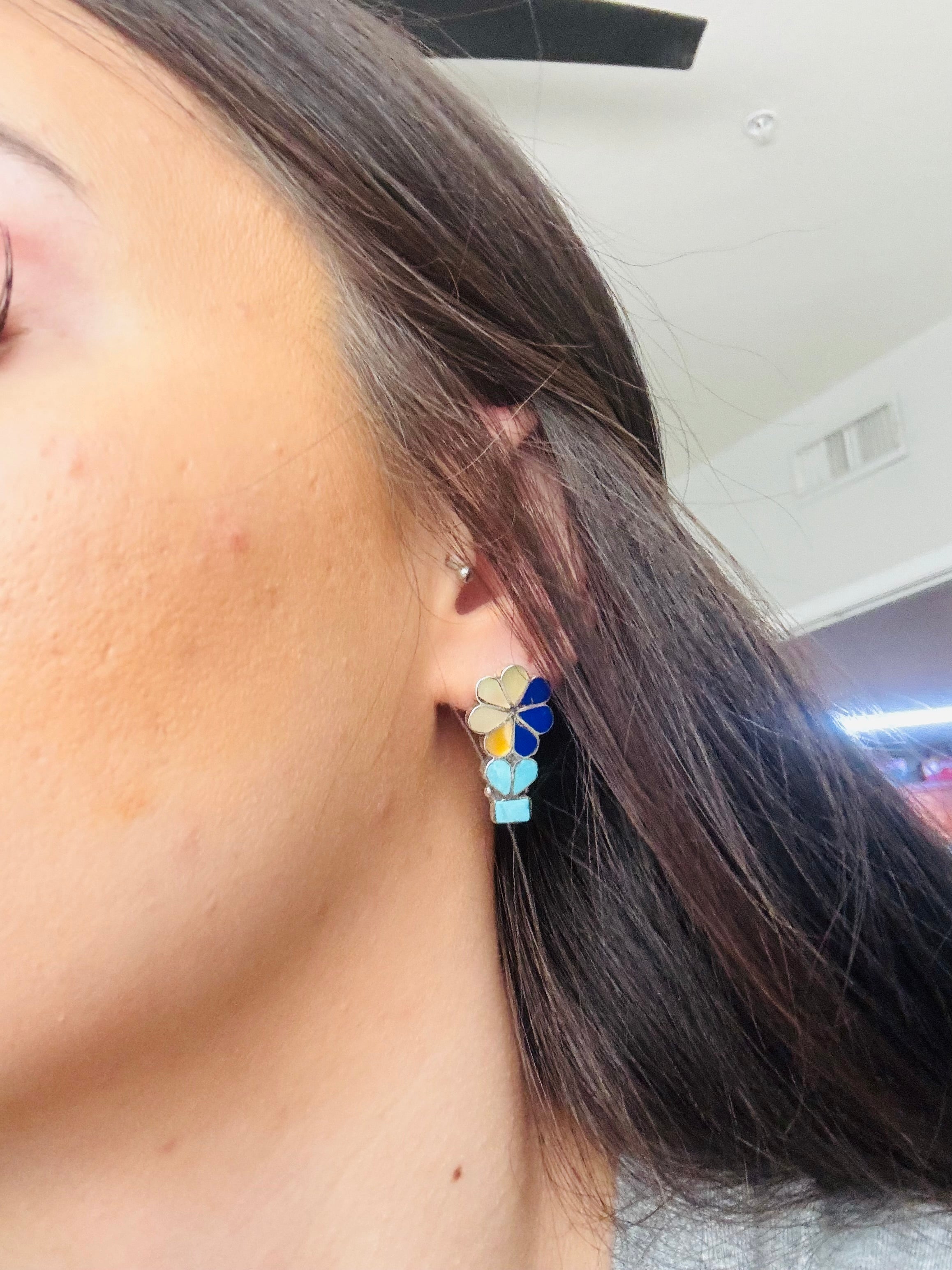 Have a spice in your everyday. Zuni Made Multi Stone & Sterling Silver Post Dangle Earrings. It measures 1 inch long and just over 1/2 of an inch wide.
