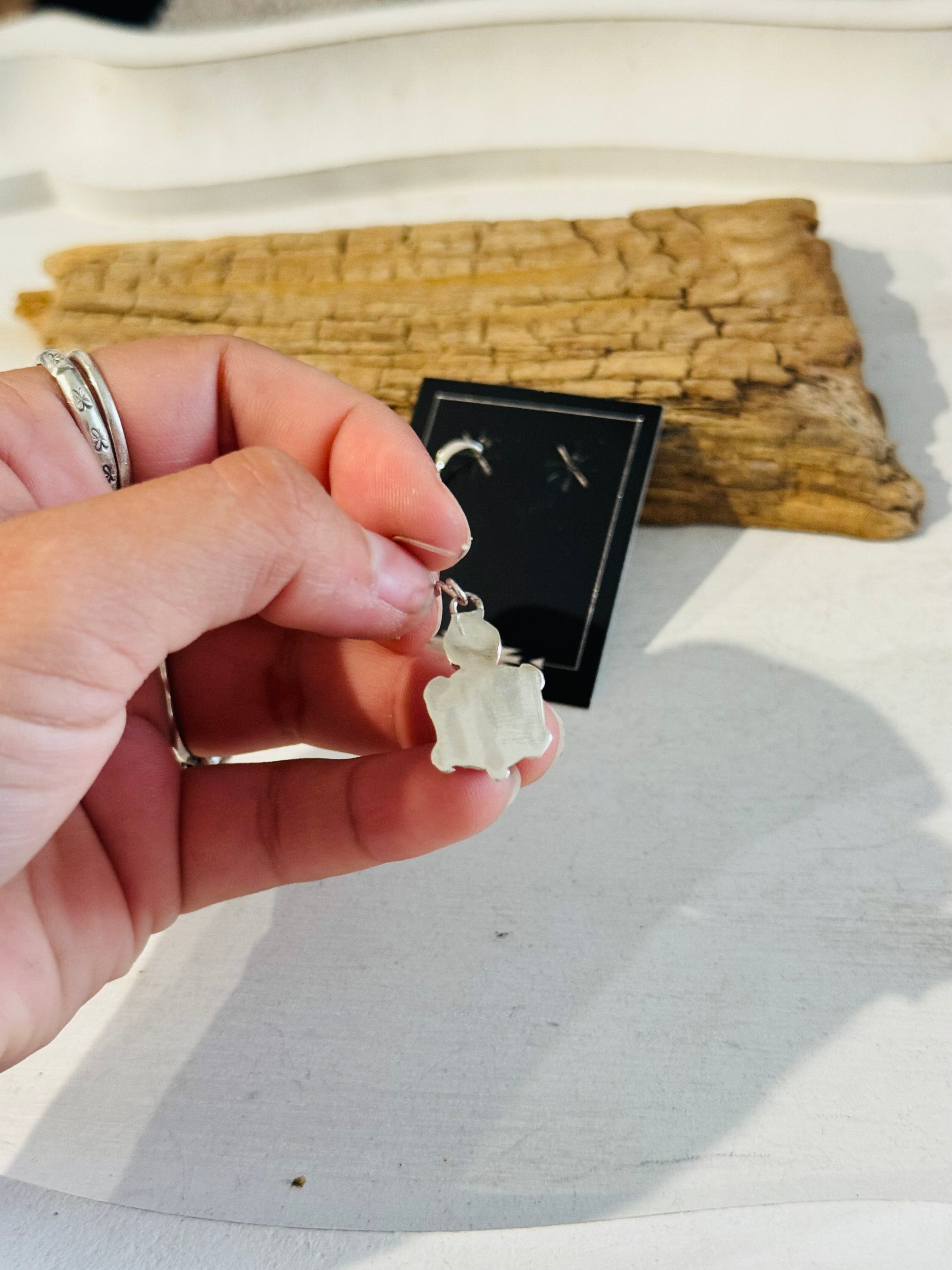 Have a spice in your everyday. Zuni Made Multi Stone & Sterling Silver Dangle Turtle Earrings. It measures 1 3/8 inches long and just over 1/2 of an inch wide. Signed and stamped. Stones will differ due to natural stones.