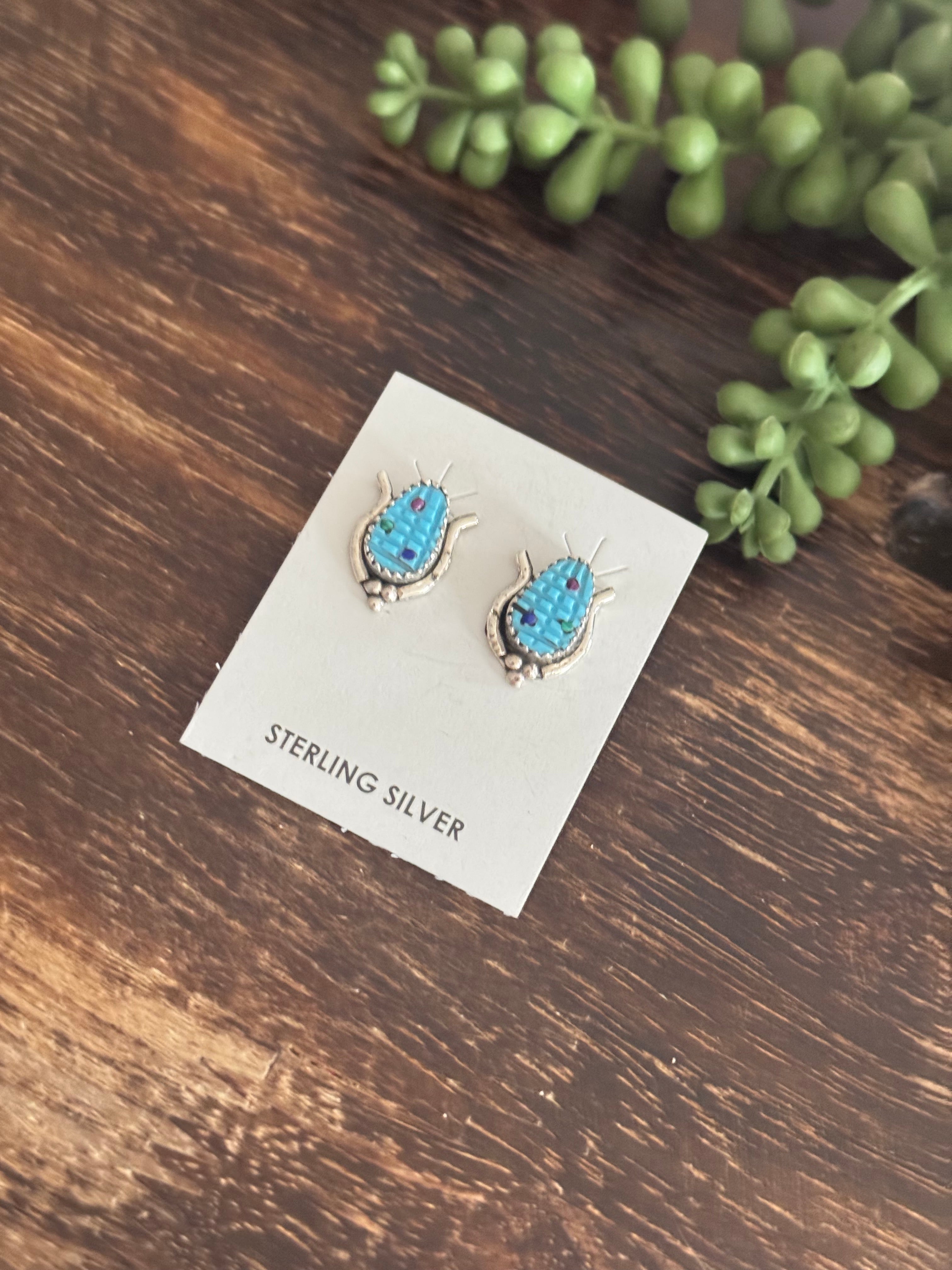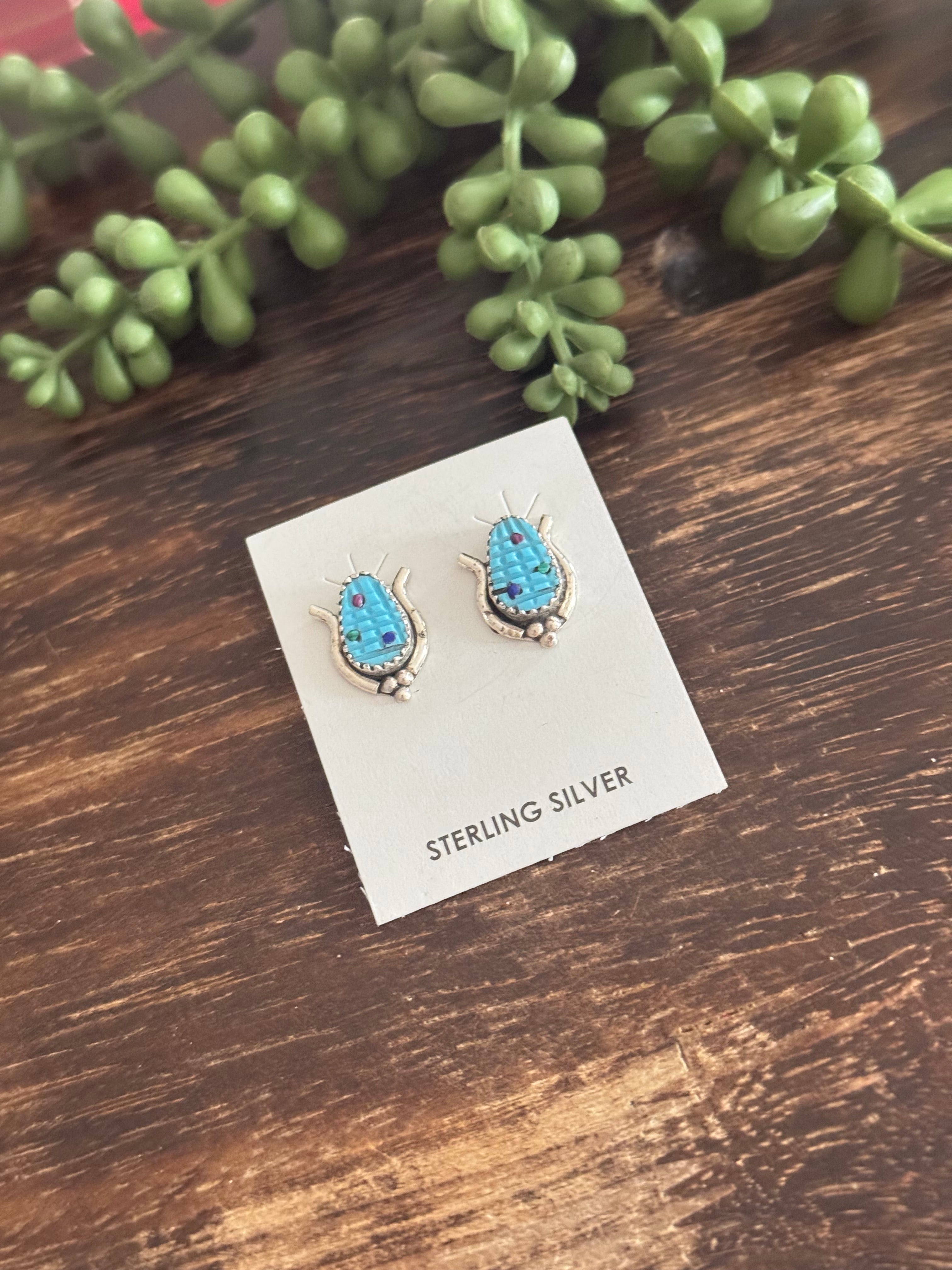 Tracy Bowekaty Multi Stone & Sterling Silver & Sterling Silver Post Corn Earrings. It measures 5/8 of an inch long and 1/2 of an inch wide. Signed by the artist.