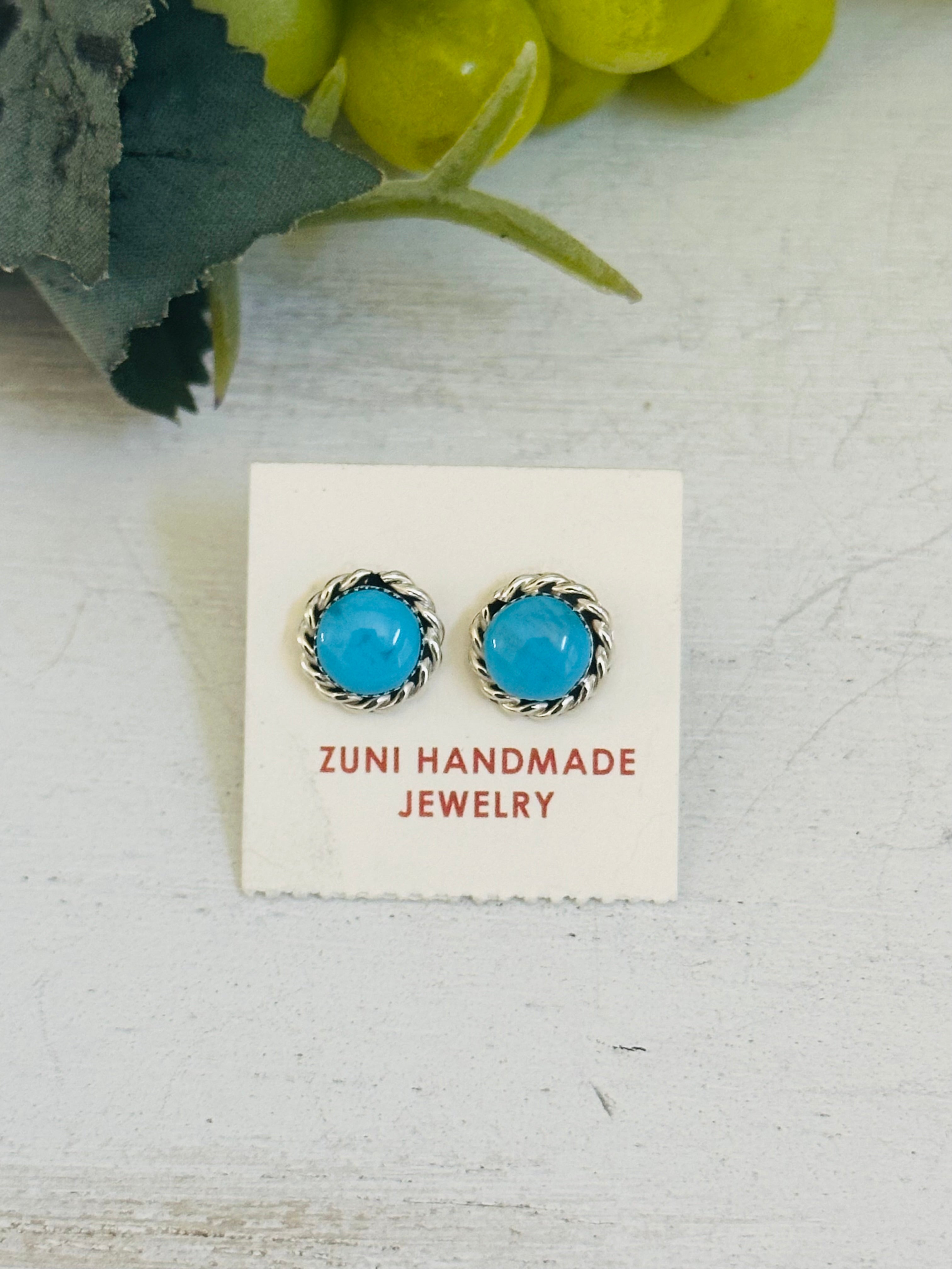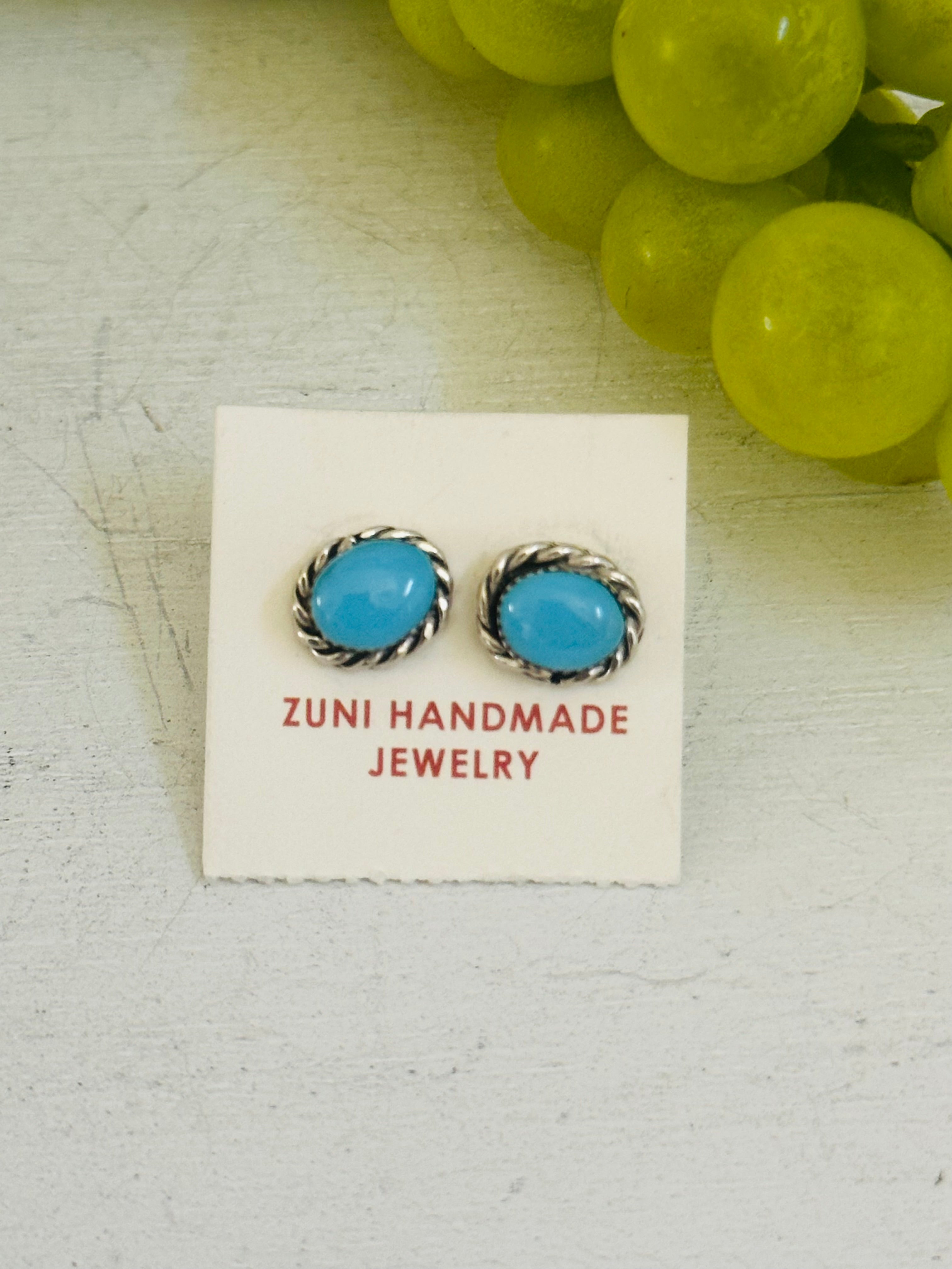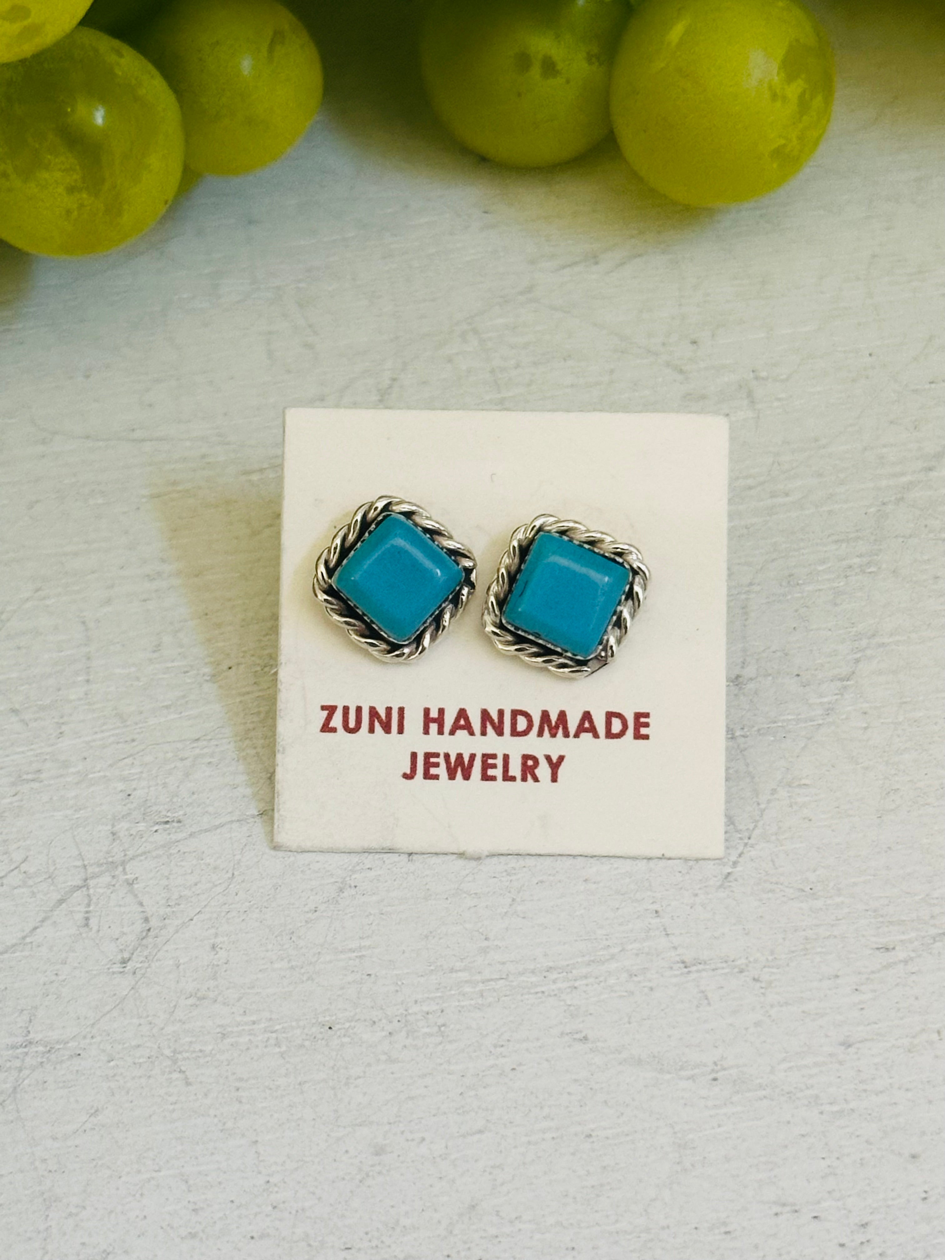 Zuni Made Turquoise & Sterling Silver Post Earrings