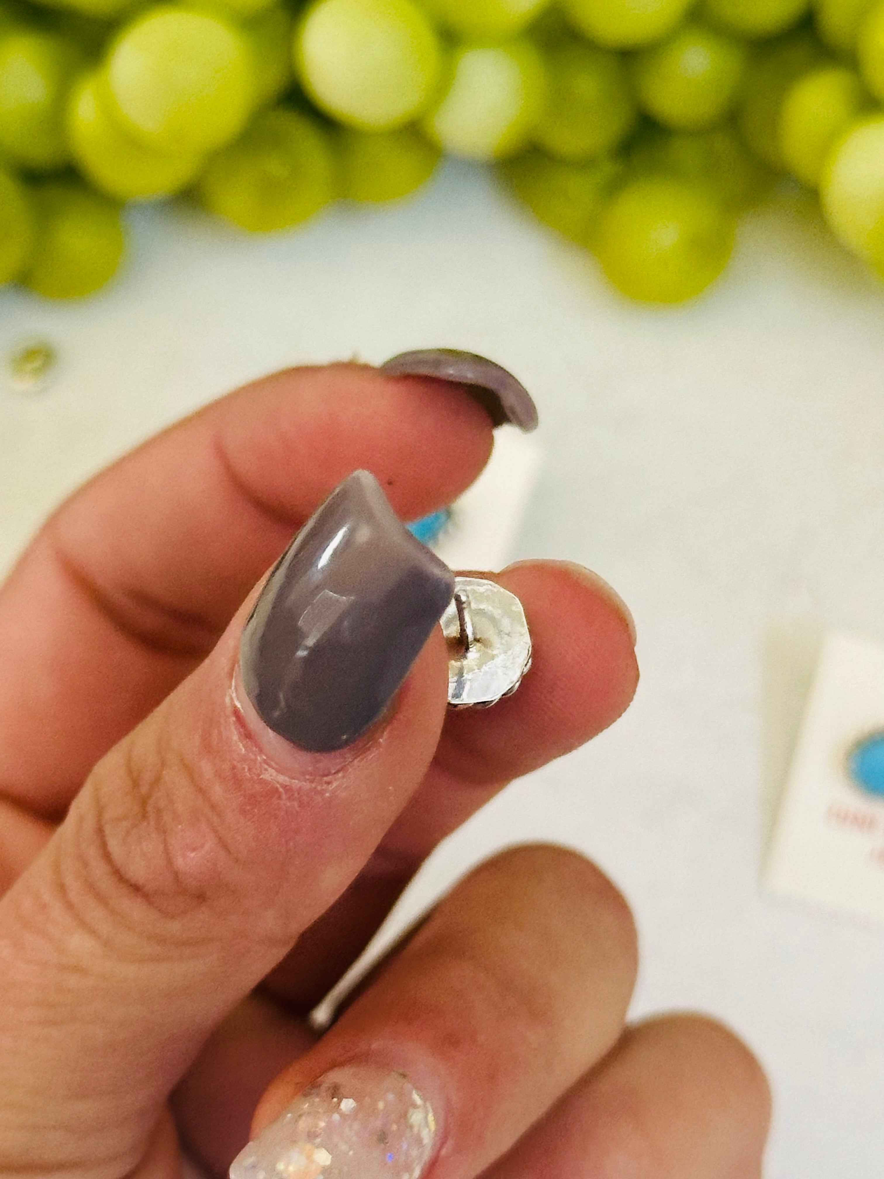Zuni Made Turquoise & Sterling Silver Post Earrings.  It measures 3/8 of an inch long and 3/8 of an inch wide. Signed by artist and stamped sterling silver.