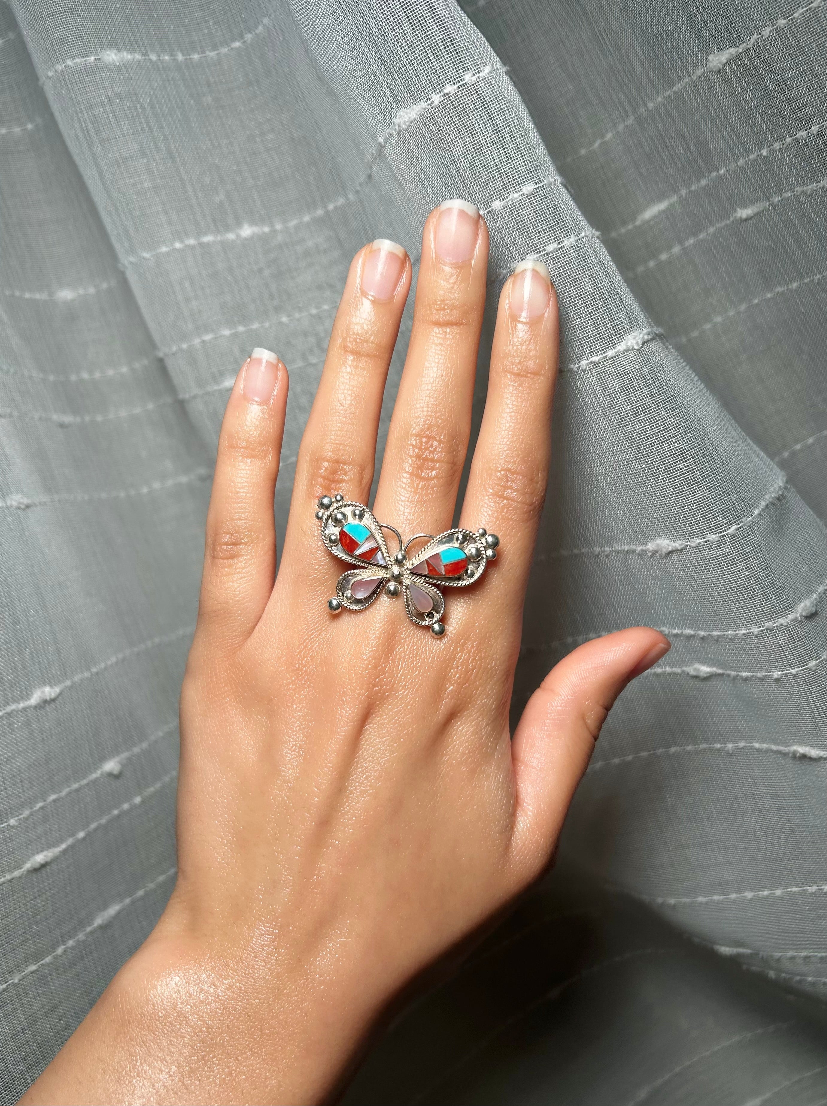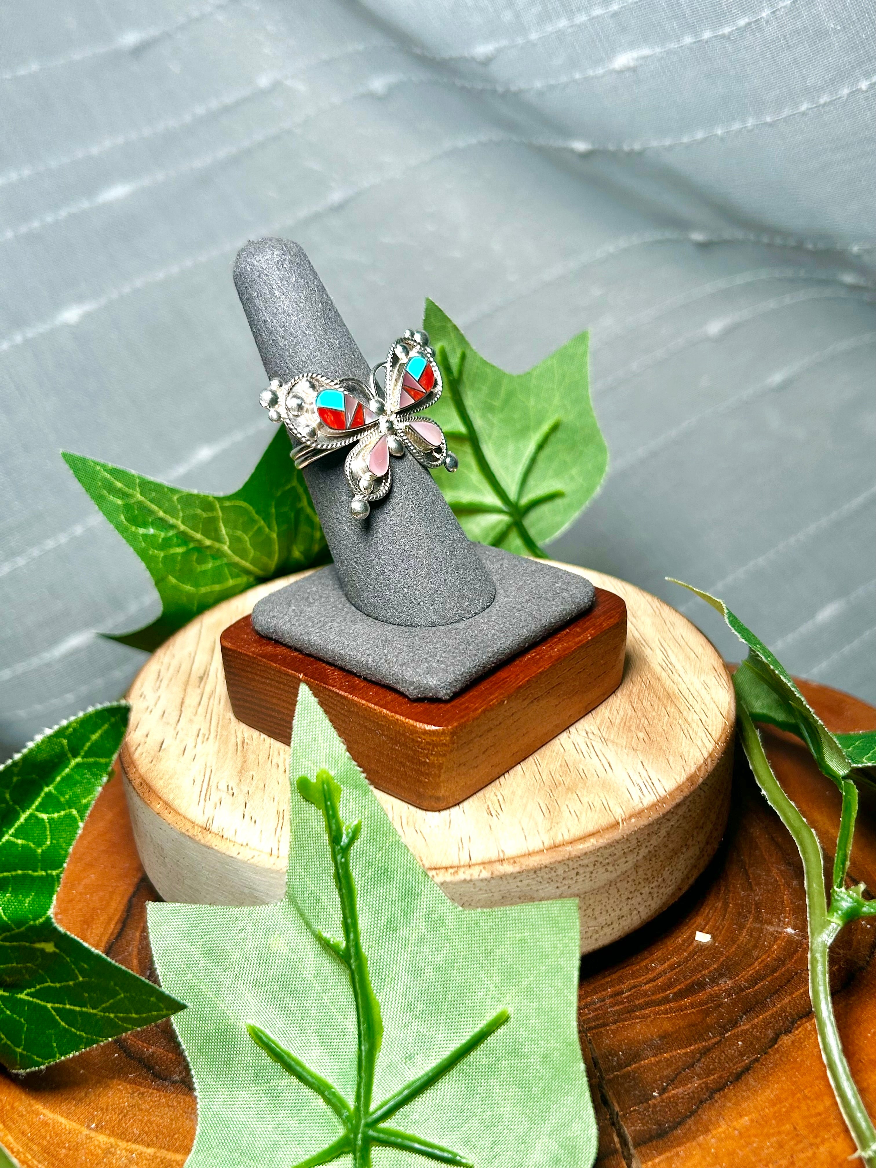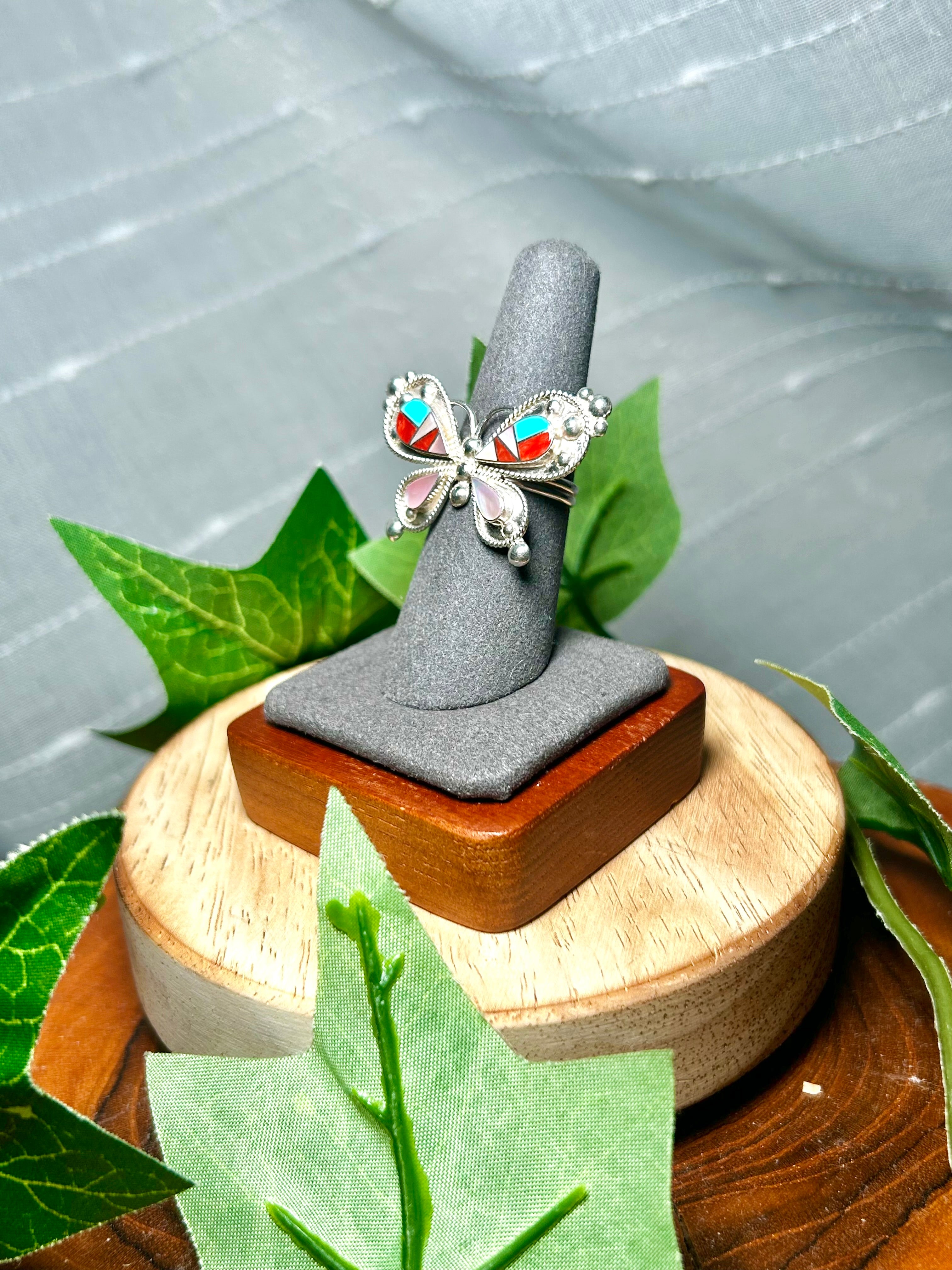 Zuni Made Multi Stone & Sterling Silver Ring Size 7